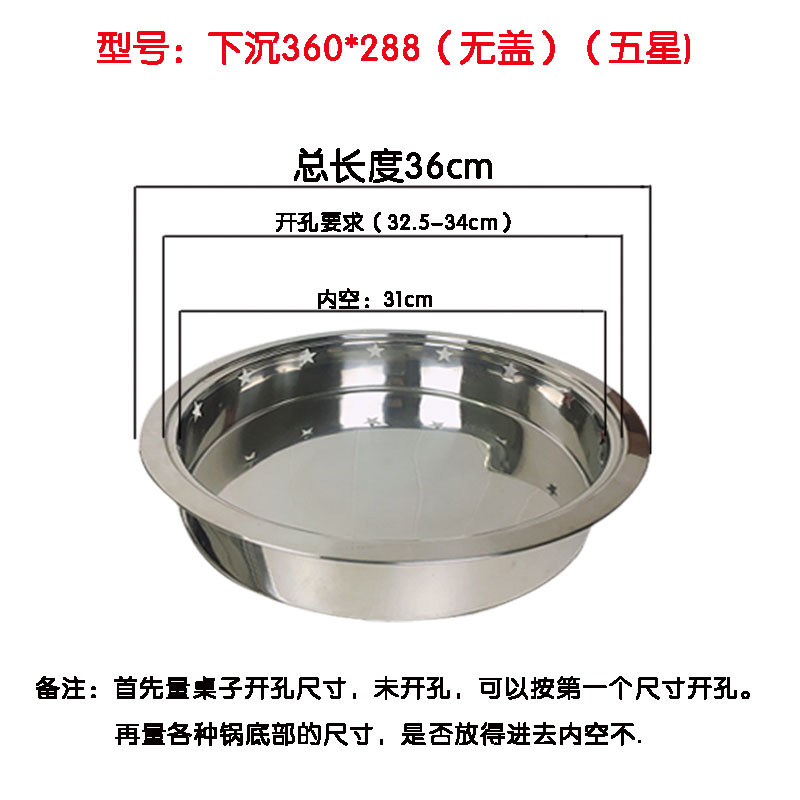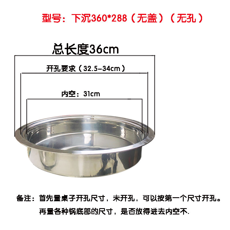 • 360*288 가라앉음(구멍 없음)(커버 없음)