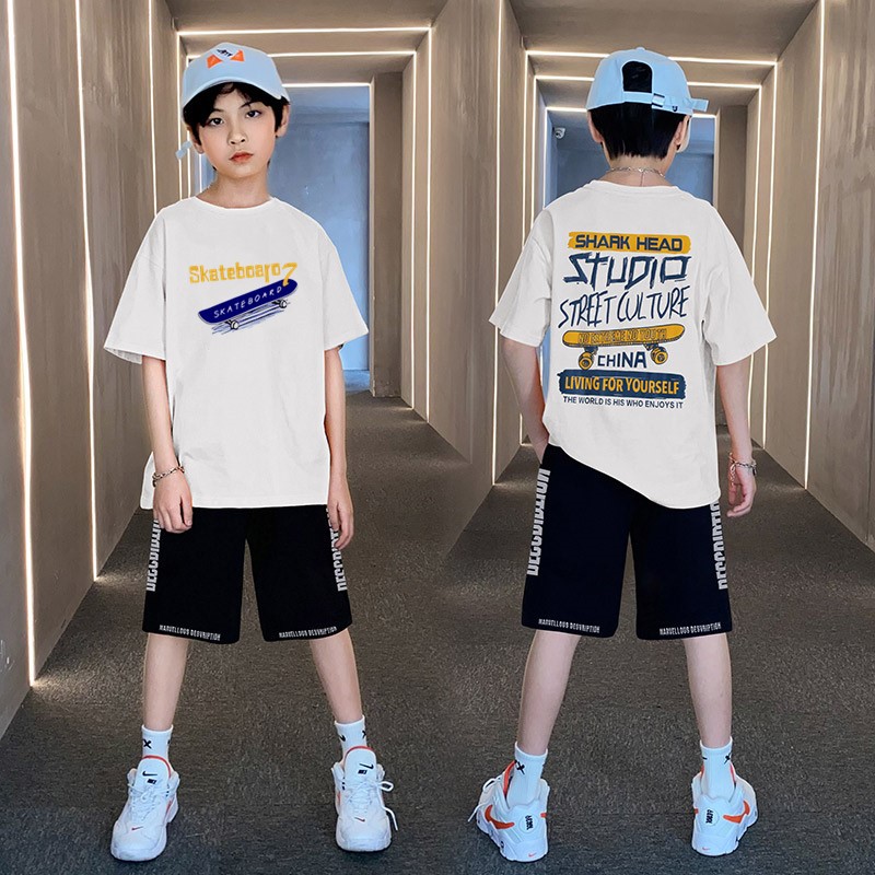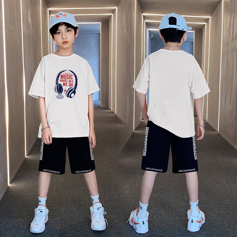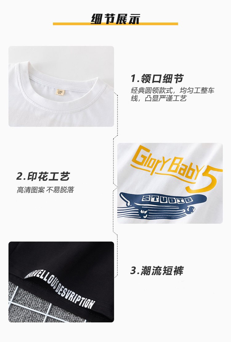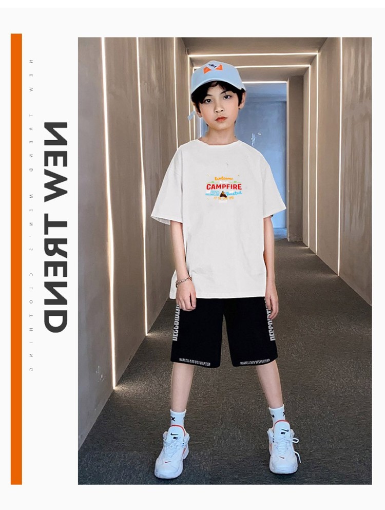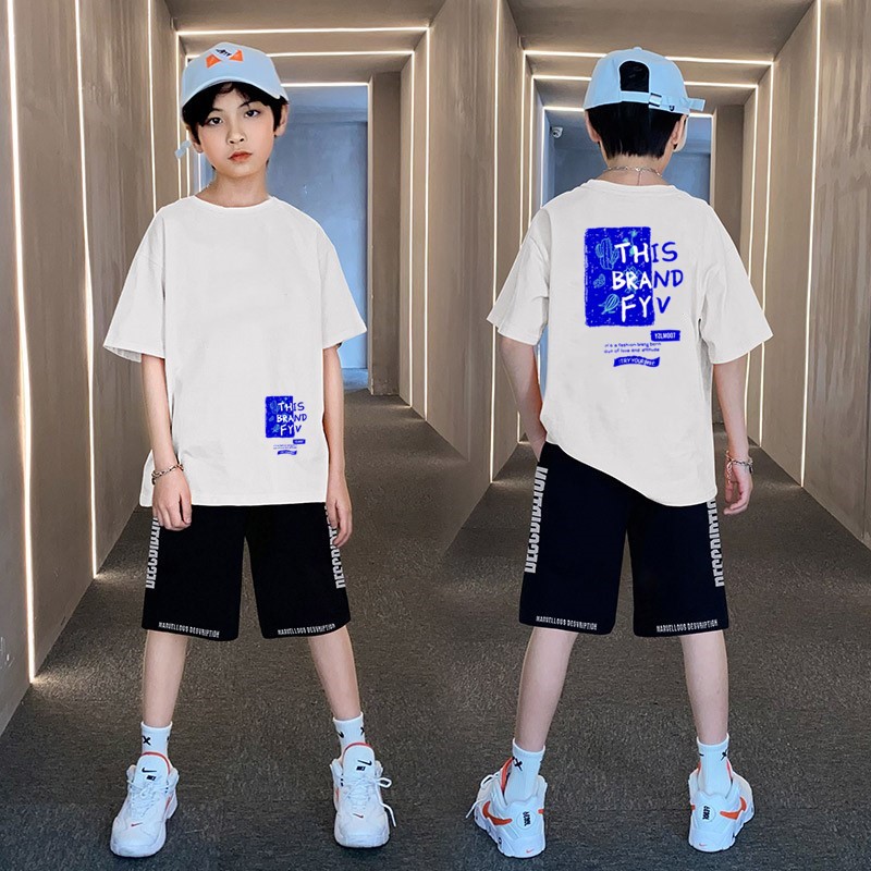 男童夏季帅气印花短袖套装中小童宽松印花T恤字母五分中裤两件套