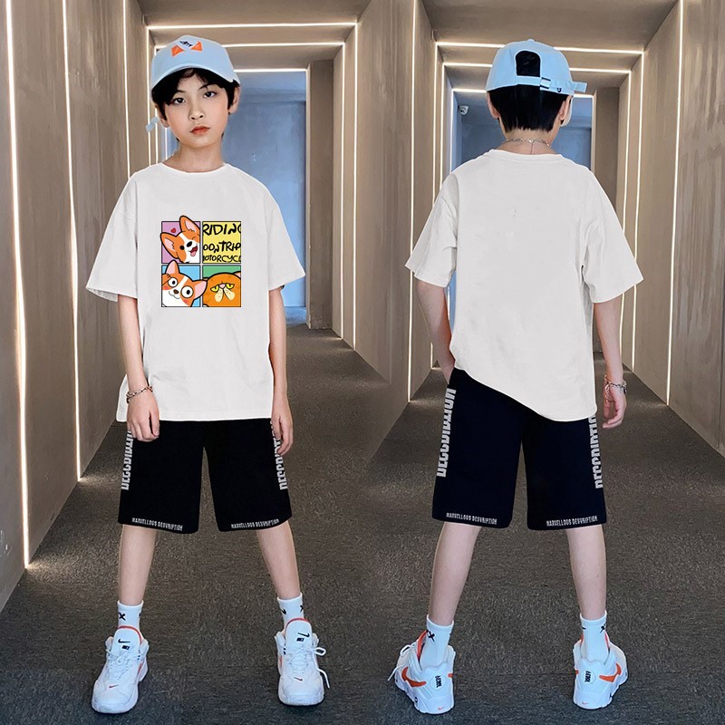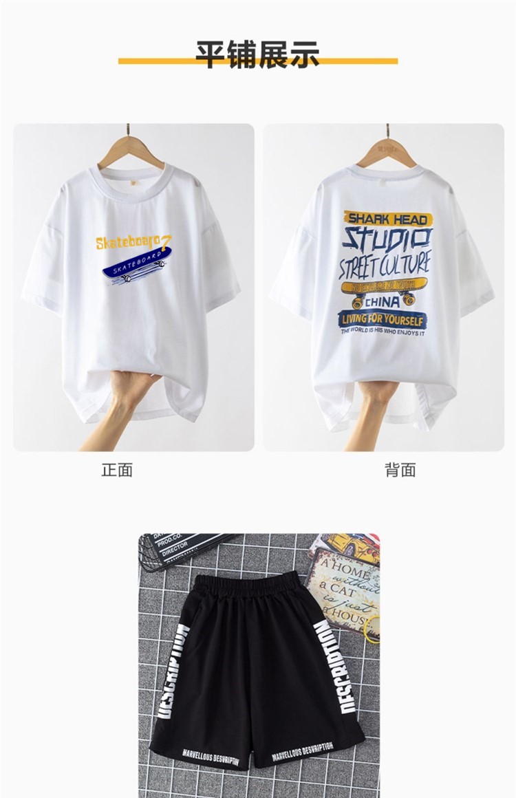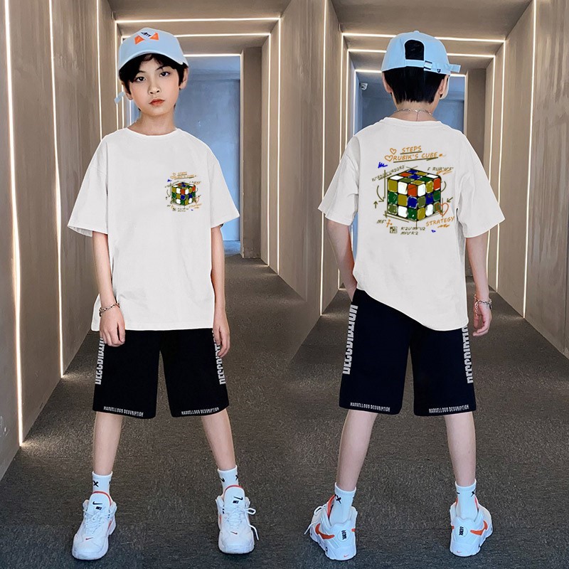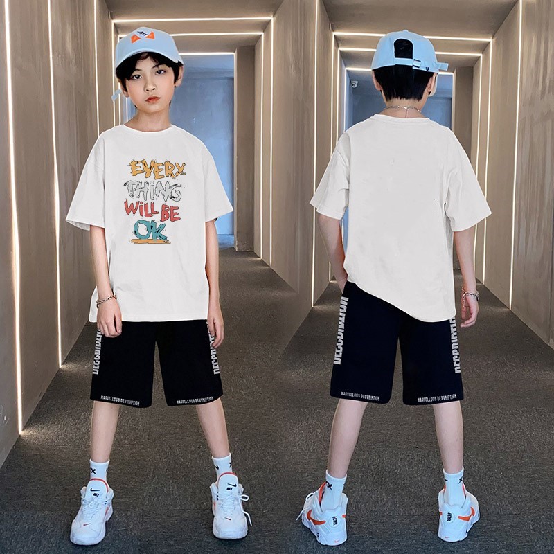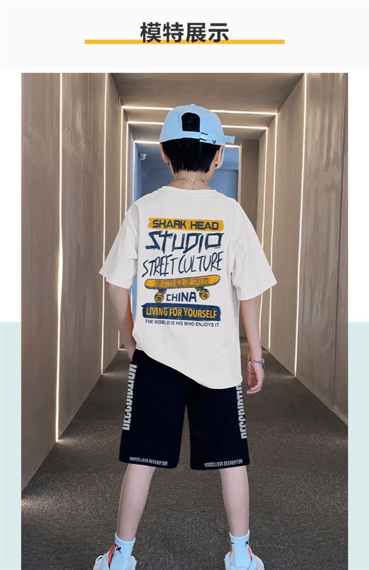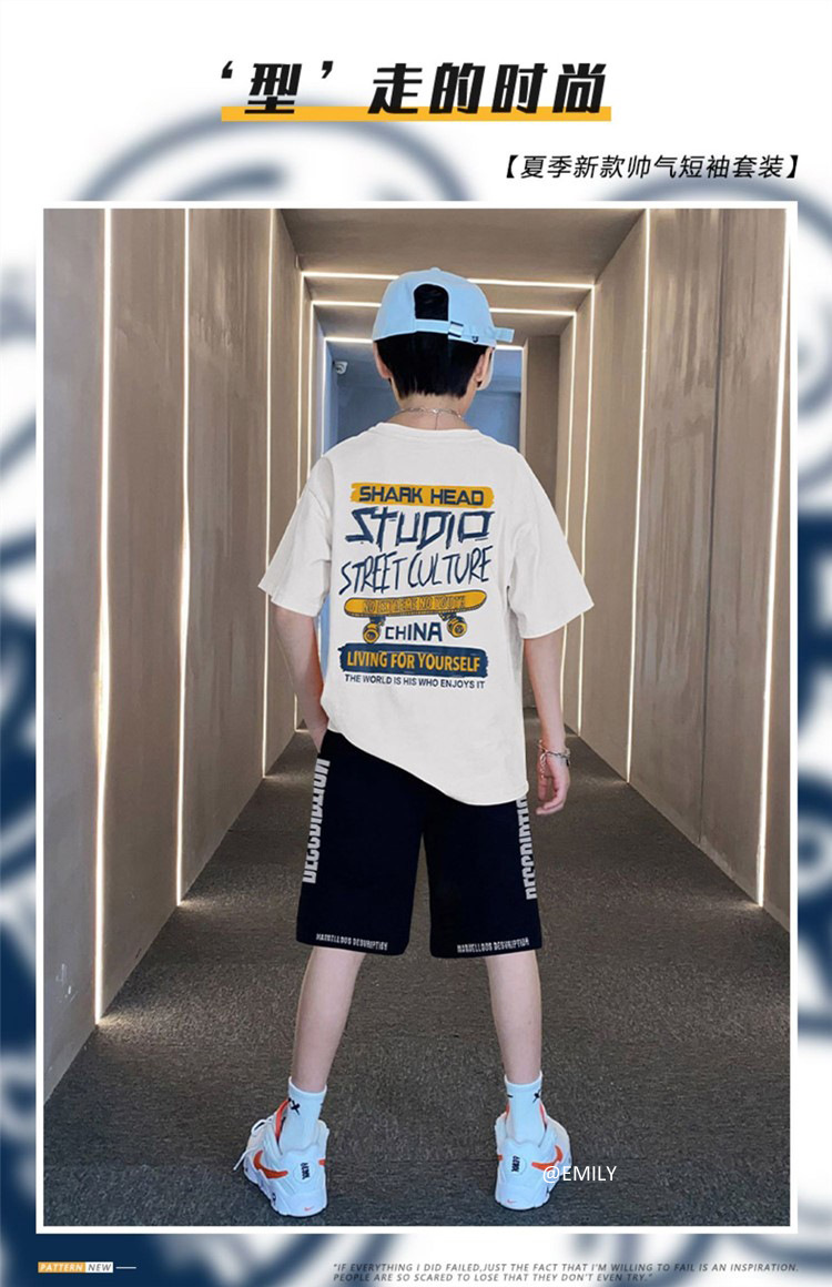 男童夏季帅气印花短袖套装中小童宽松印花T恤字母五分中裤两件套스토어 가기