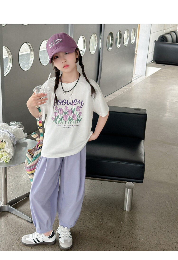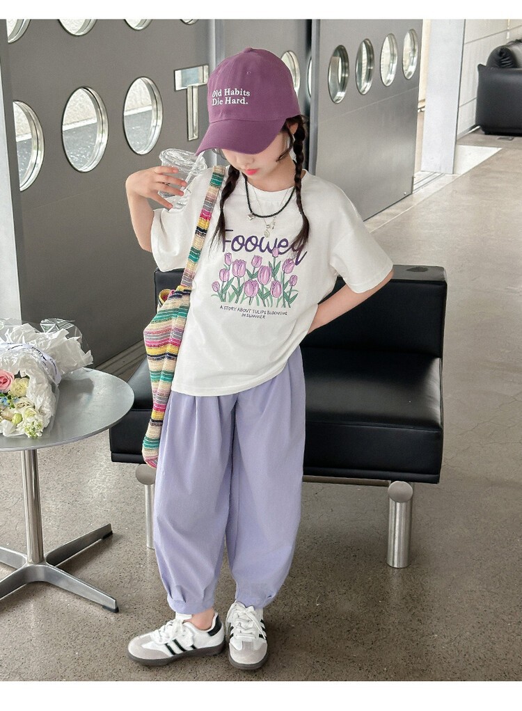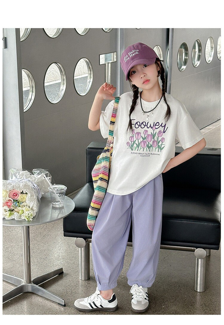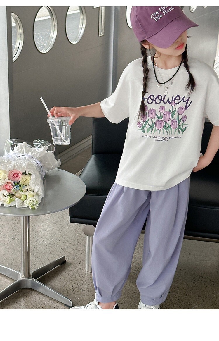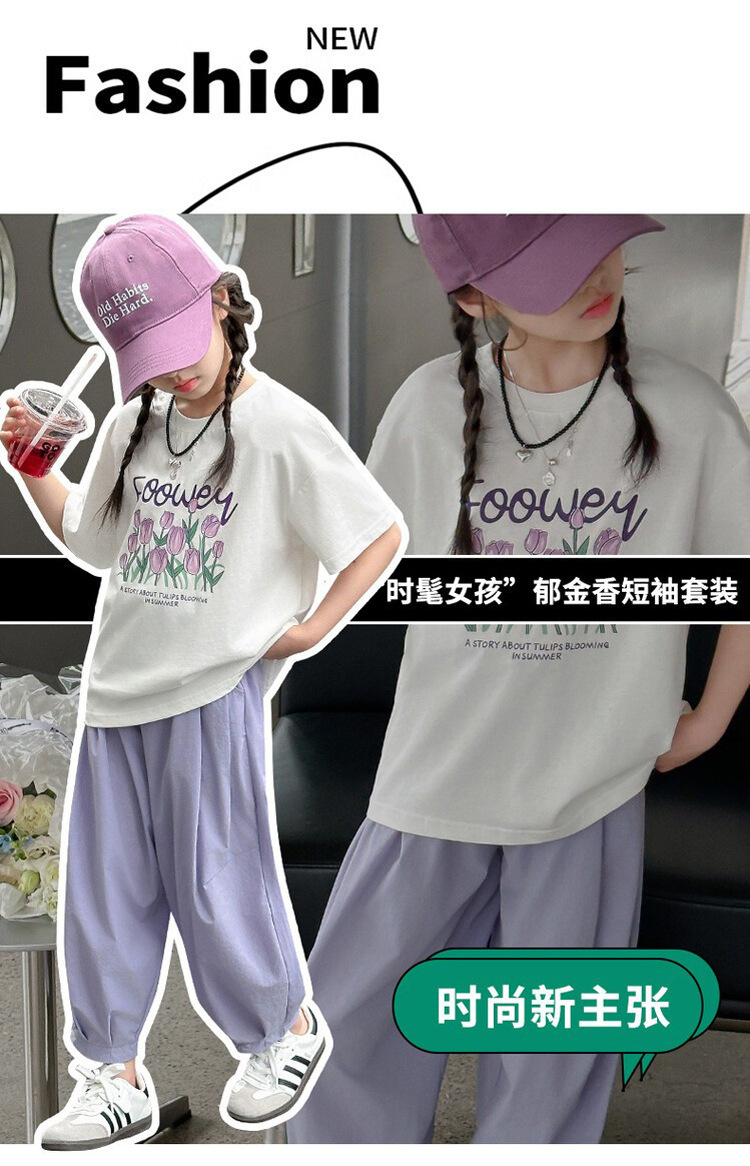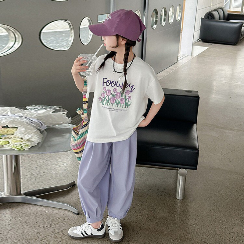 24 여름 어린이 패션 트렌디 한 느슨한 캐주얼 세트 소녀의 달콤한 꽃 반팔 바지 투피스 세트스토어 가기