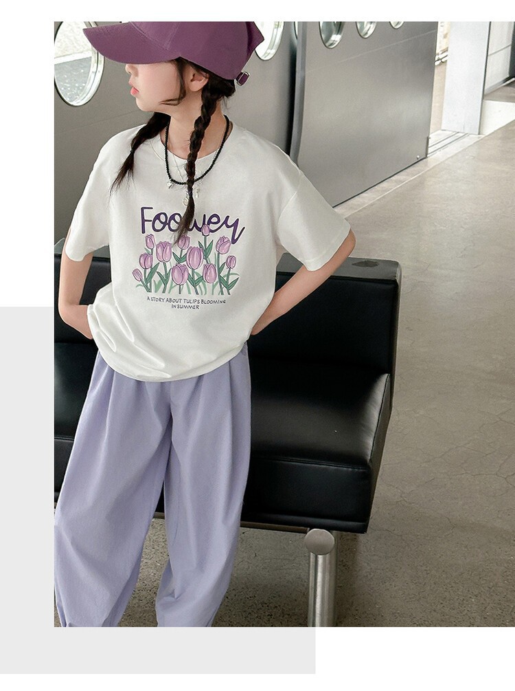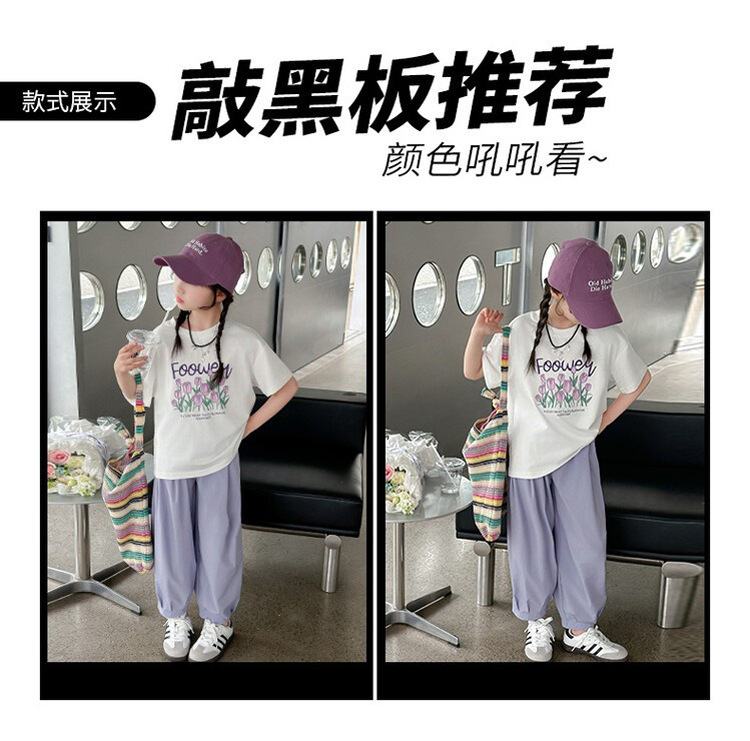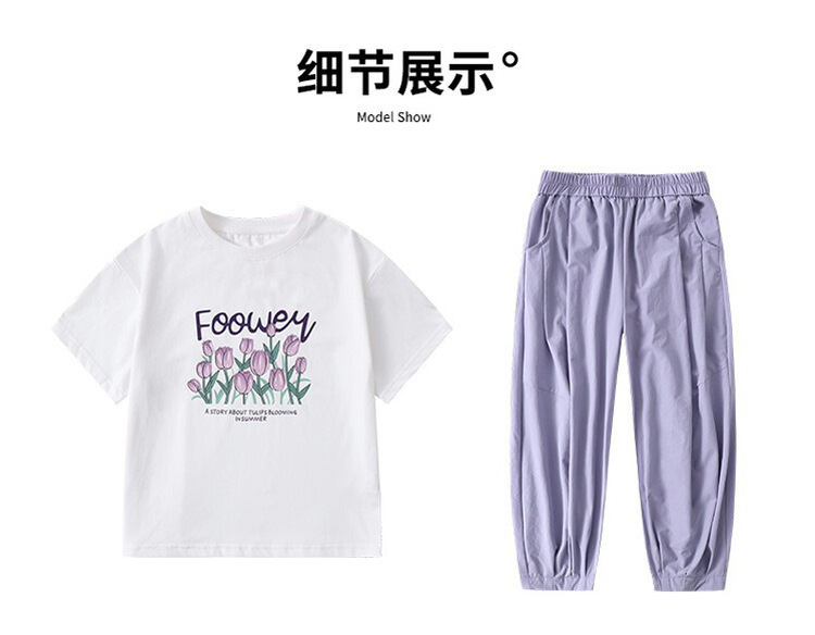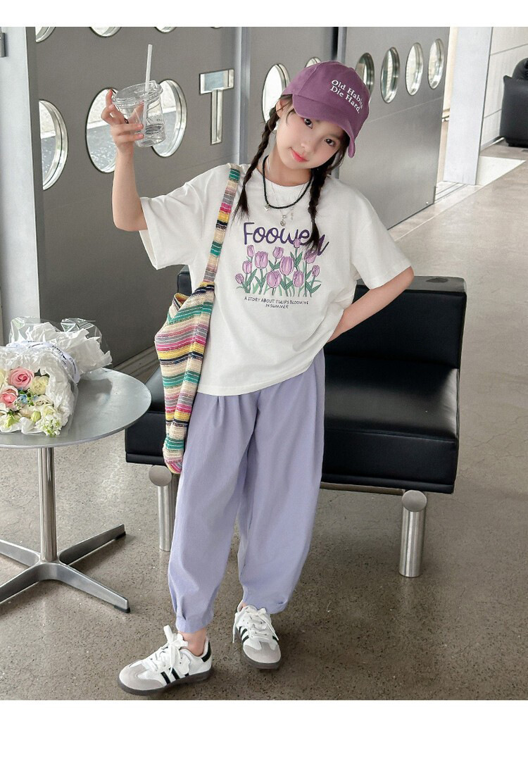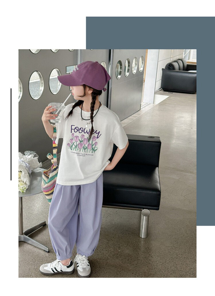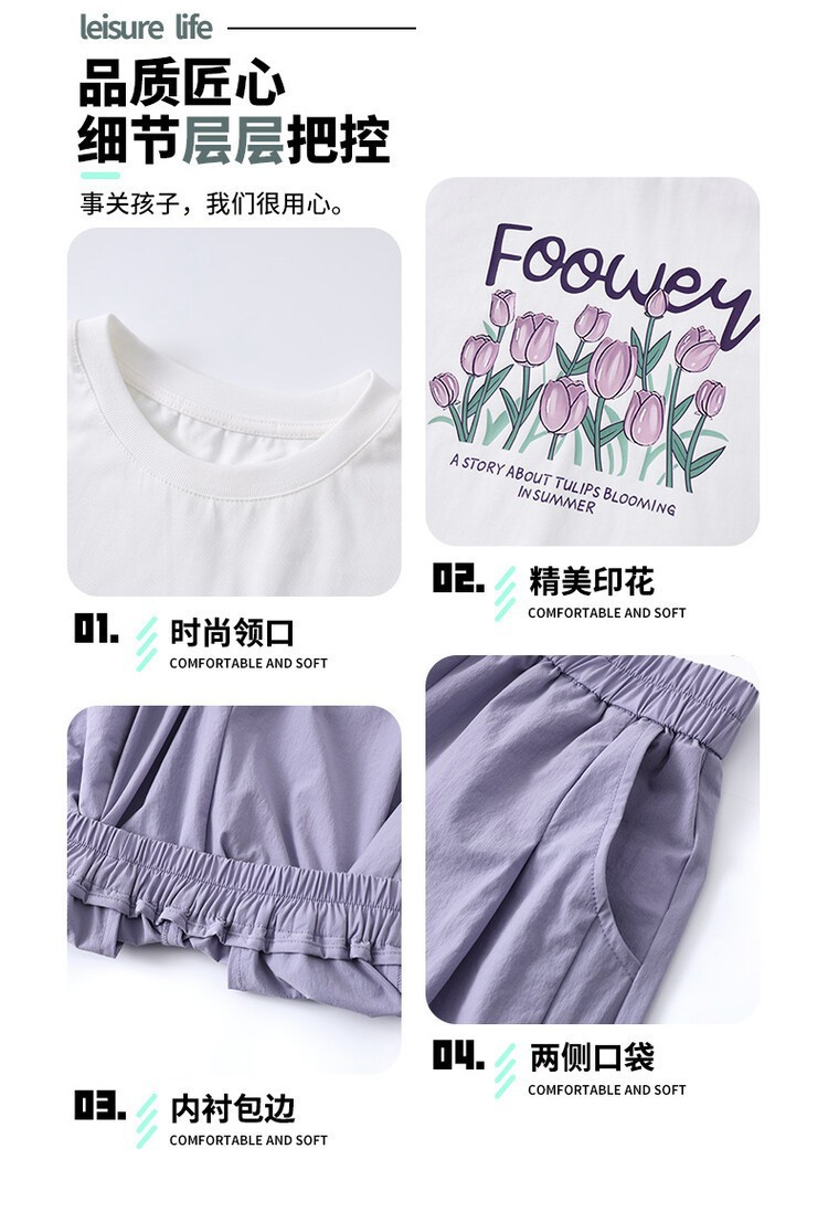 24 여름 어린이 패션 트렌디 한 느슨한 캐주얼 세트 소녀의 달콤한 꽃 반팔 바지 투피스 세트스토어 가기