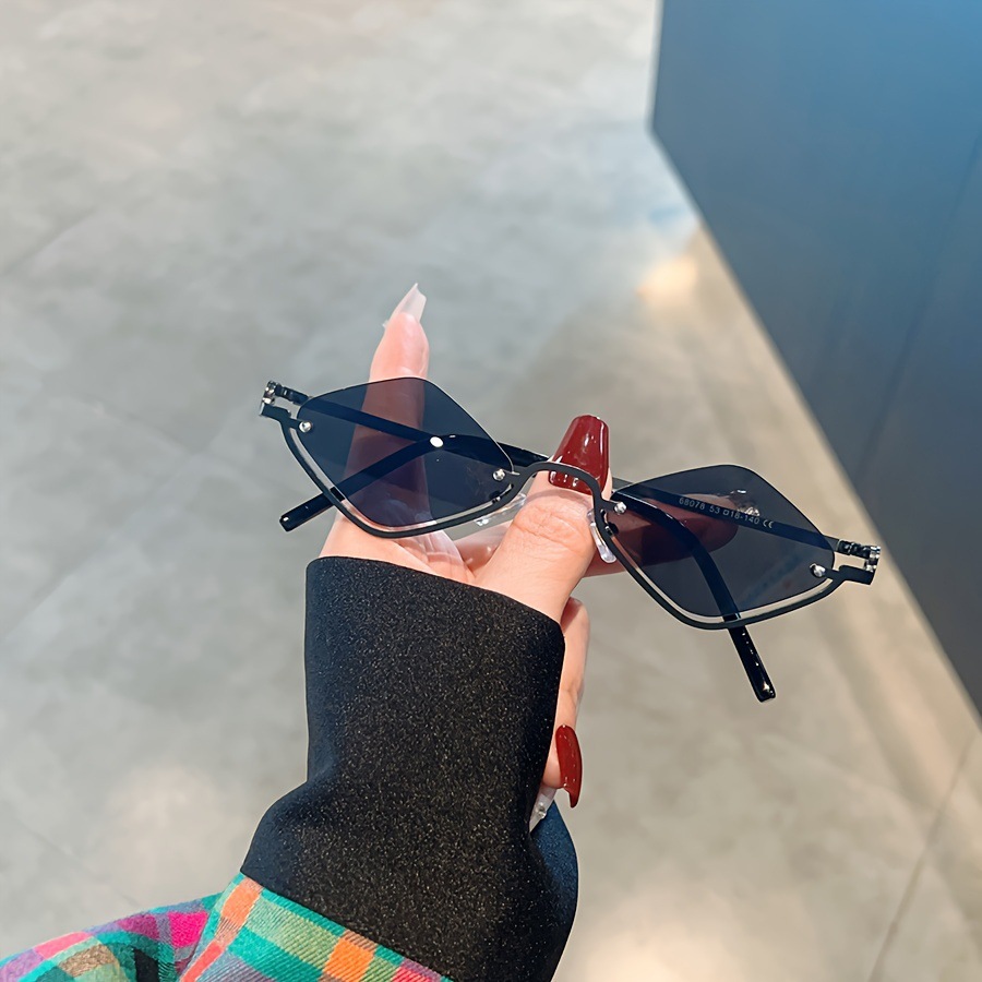 하프 프레임 다이아몬드 선글라스 작은 프레임 2024 새로운 선글라스 금속 여성 간단한 패션 유럽과 미국 선글라스 남성과 여성