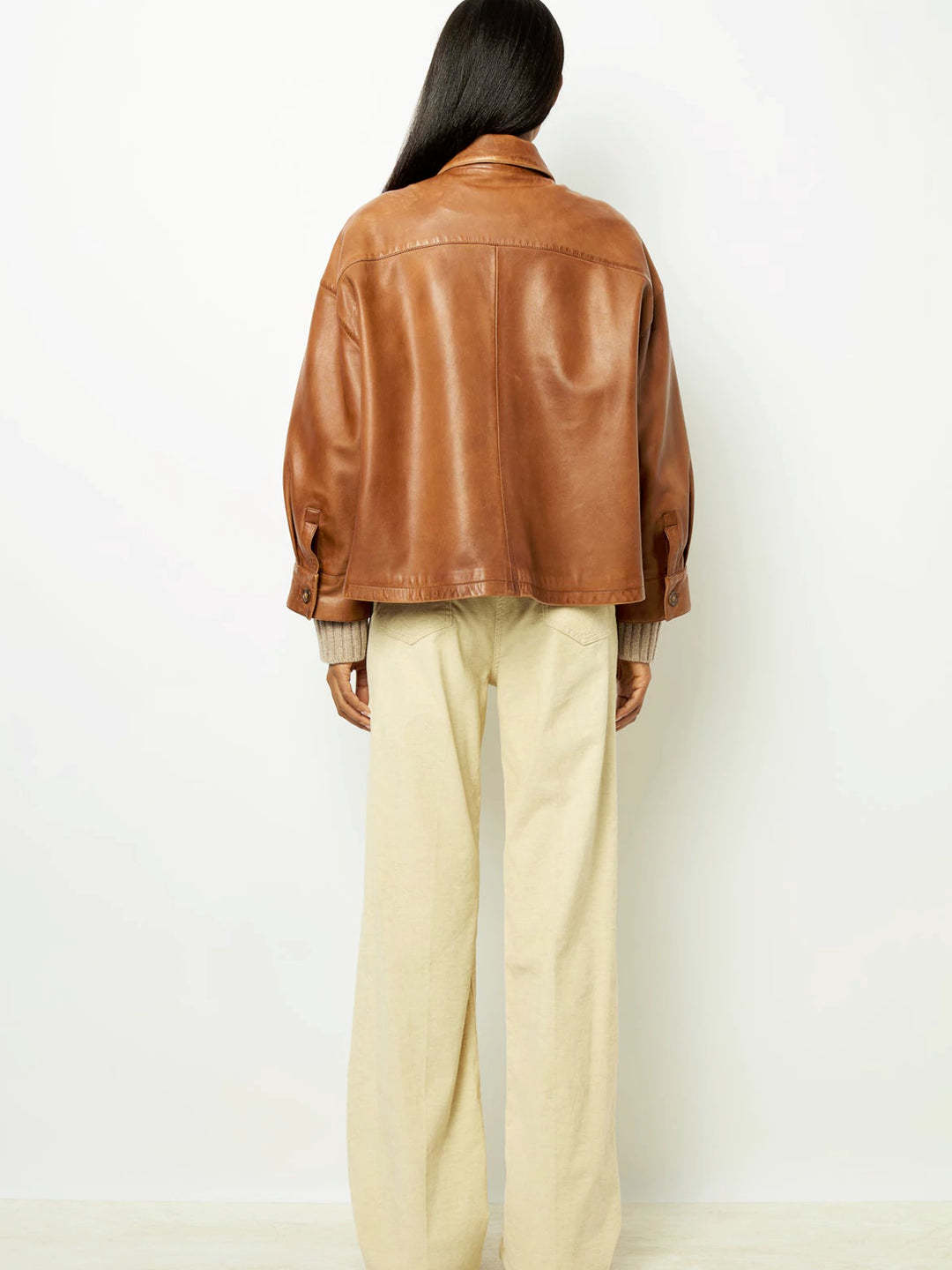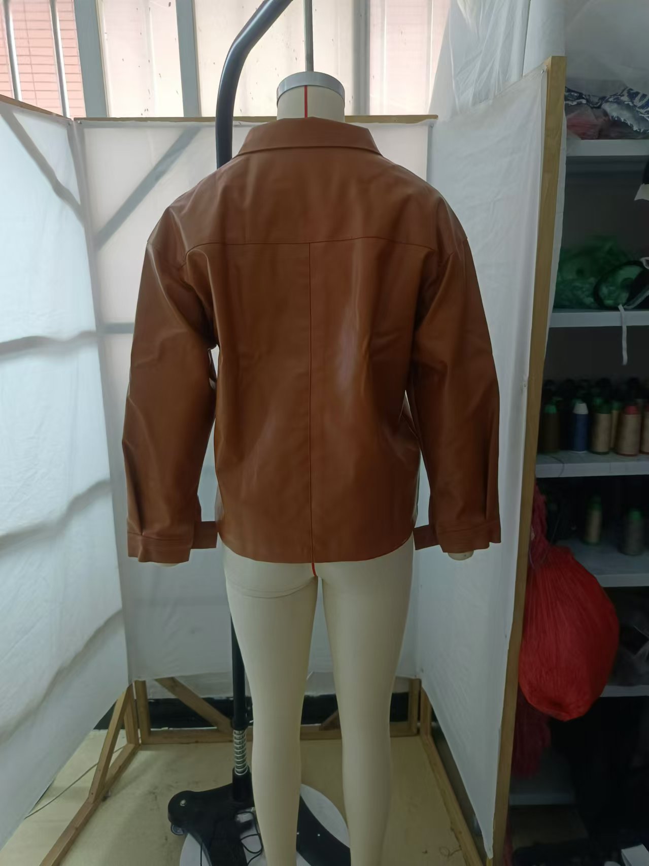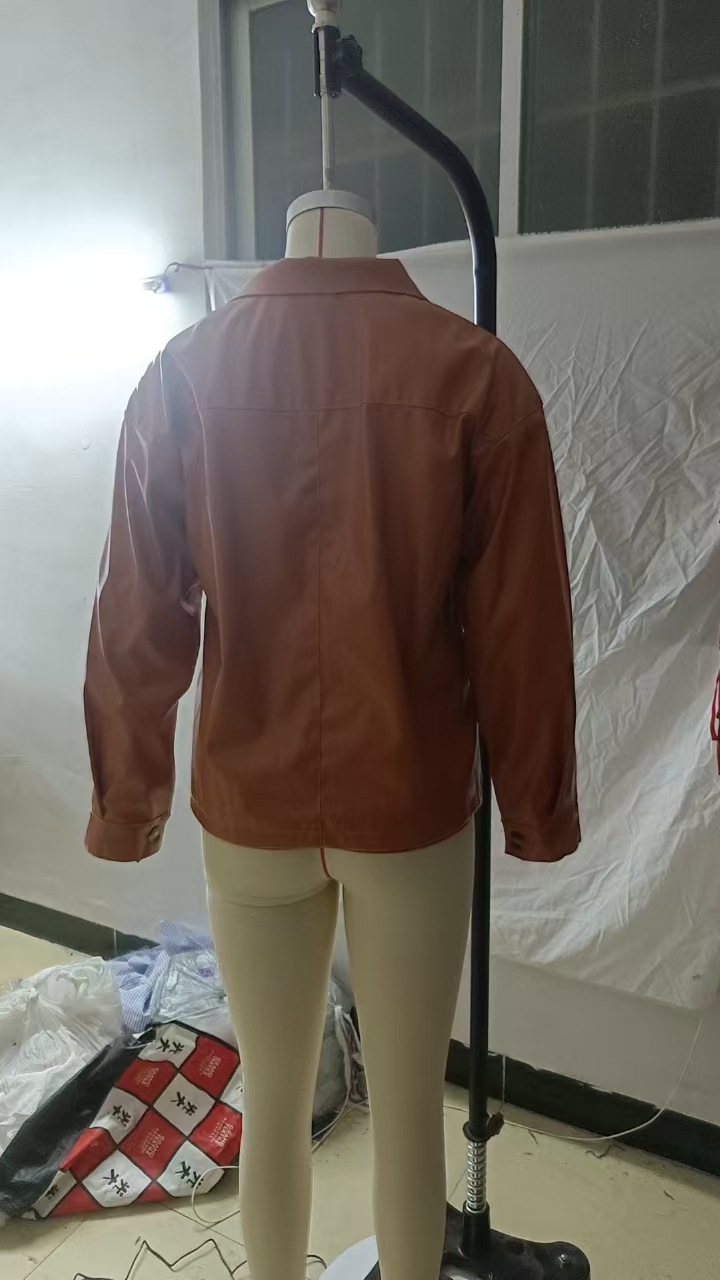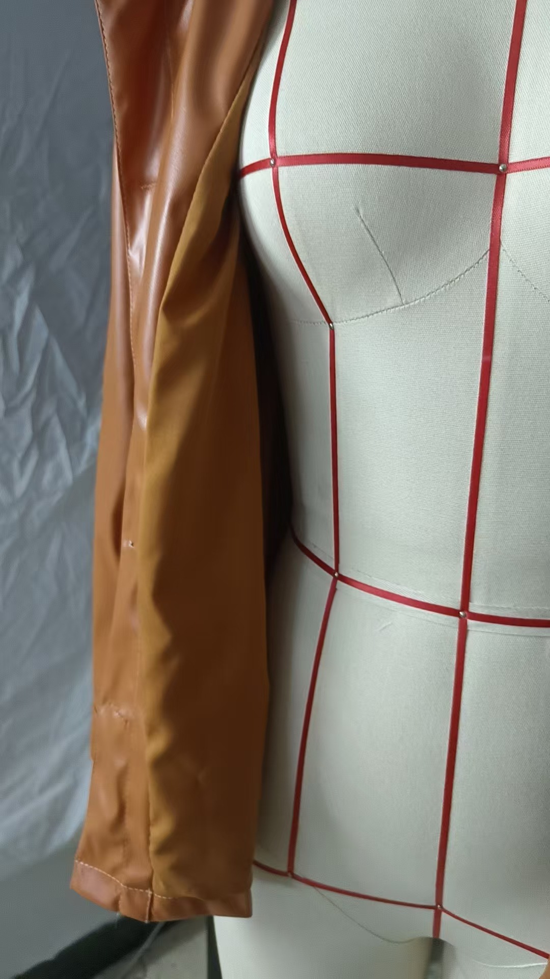 유행 에센스 ~ 기질 다크 브라운 프로필 PU 가죽 여성 가을 옷깃 오토바이 재킷 코트