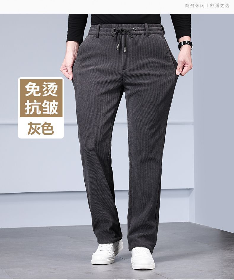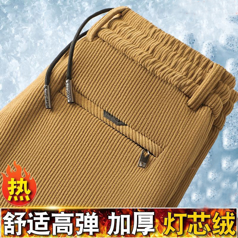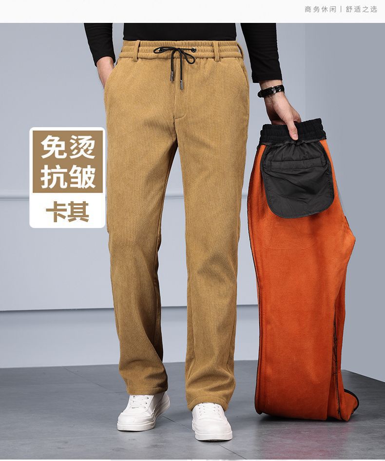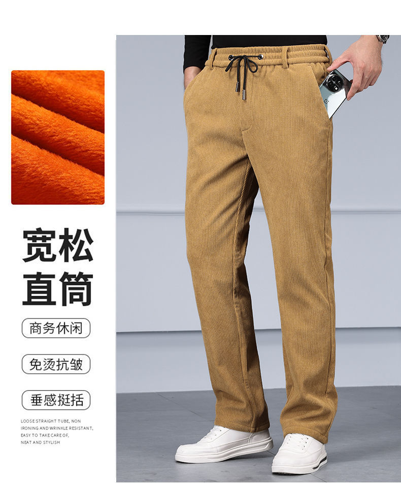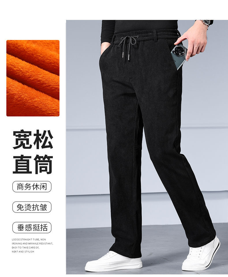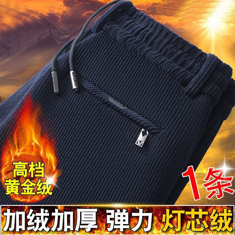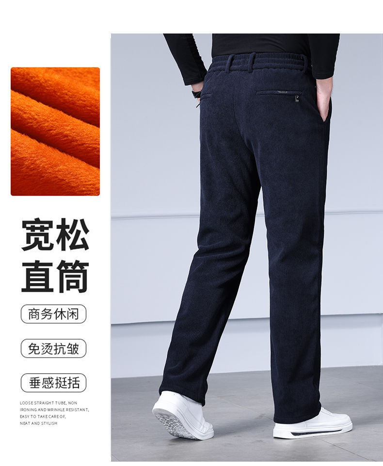 무거운 코듀로이 탄성 바지 가을과 겨울 기모 두꺼운 중년 노인 캐주얼 바지 스트레이트 하이 웨이스트 아빠 바지를 스트레칭