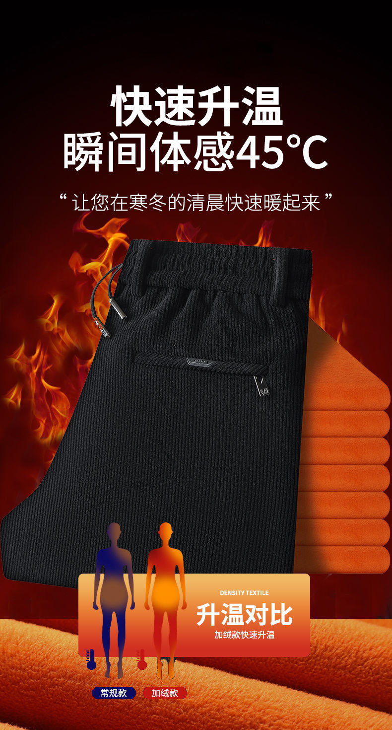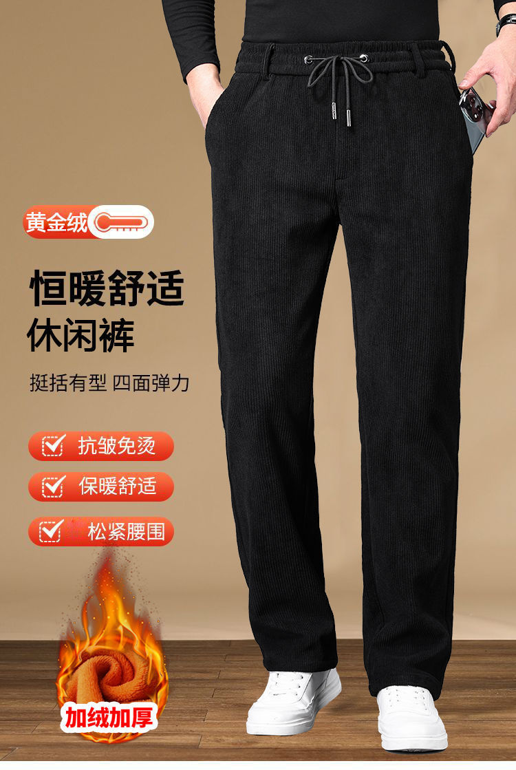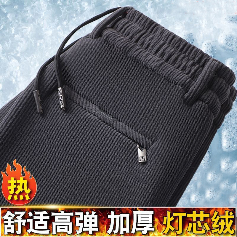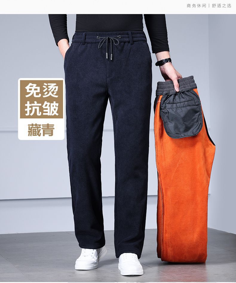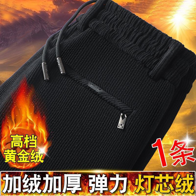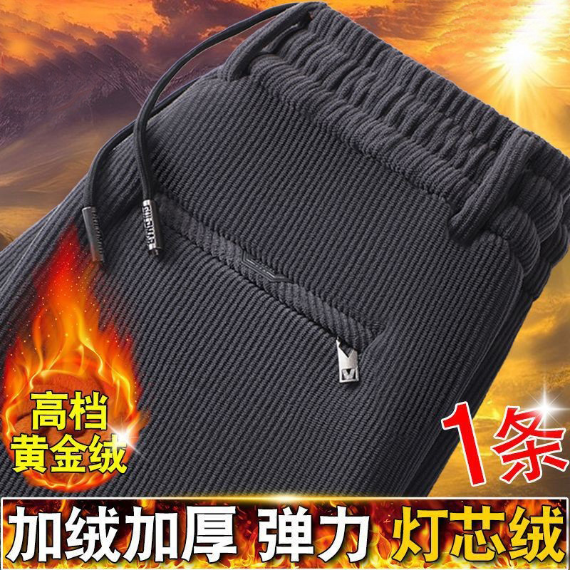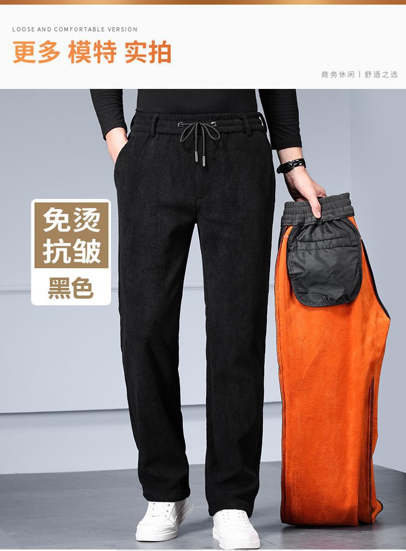무거운 코듀로이 탄성 바지 가을과 겨울 기모 두꺼운 중년 노인 캐주얼 바지 스트레이트 하이 웨이스트 아빠 바지를 스트레칭