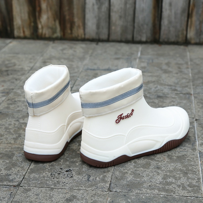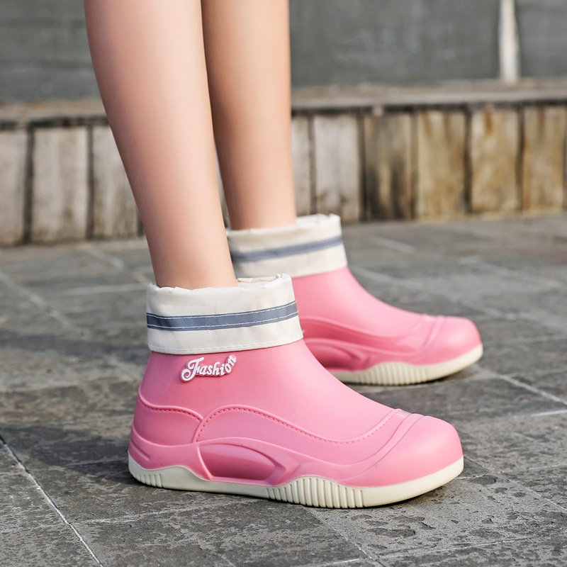 패션 오버 슈즈 장화 여성용 미드 튜브 미끄럼 방지 여성용 레인 부츠 주방 방수 성인 워터 슈즈 내마모성 가벼운 고무 신발
