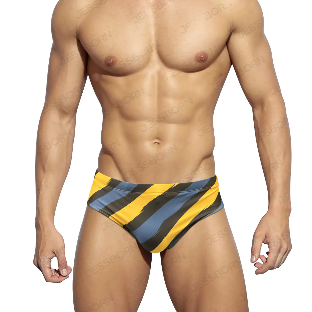 JESSBORN 남성 패션 스트라이프 수영 브리프 섹시한 낮은 허리 스포츠 피트니스 비치 스파 수영장 수영복스토어 가기