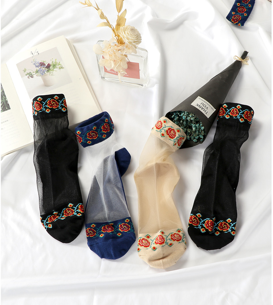 크리스털 코튼 바닥 아이스 실크 스타킹 여성 미드 슬립 여성용 양말 중간 길이 스타킹 빈티지 꽃 어머니 양말 봄과 여름스토어 가기