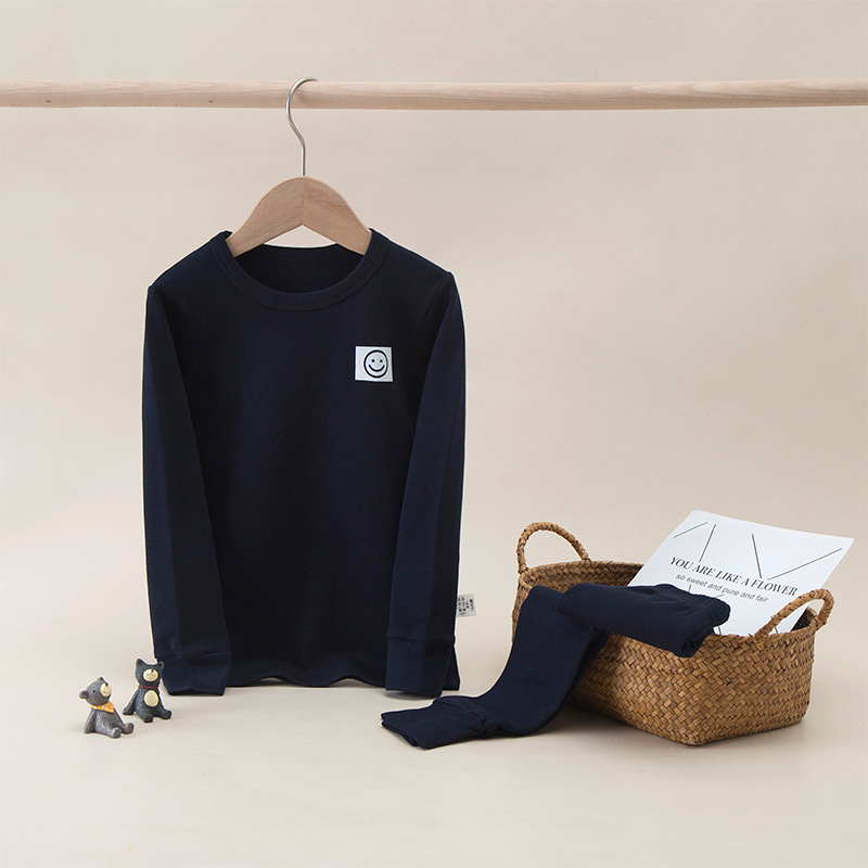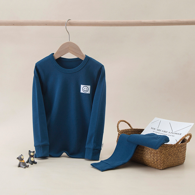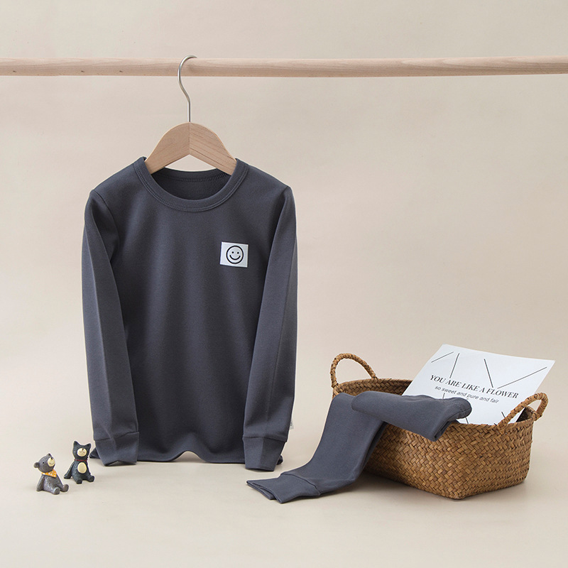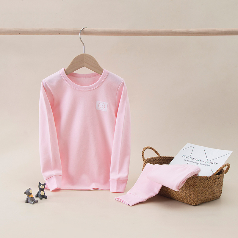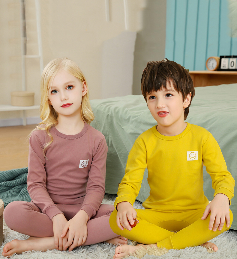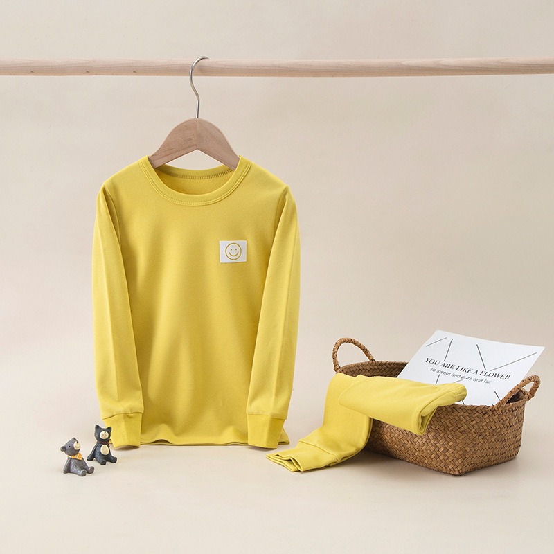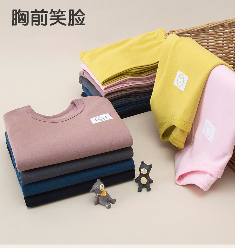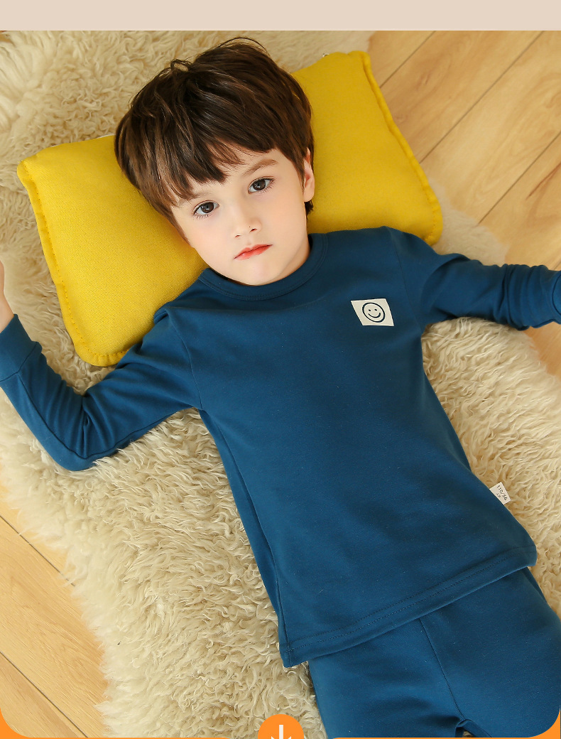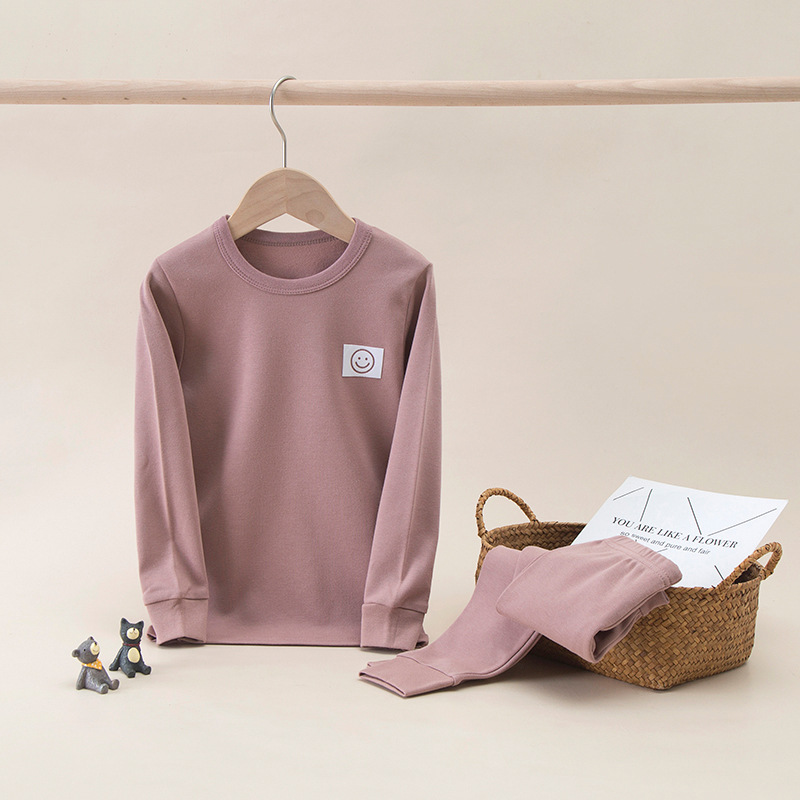 가을과 겨울 어린이 단색 샌딩 두꺼운 열 속옷 세트 코튼 라운드 넥 잠옷 소년 소녀 홈 옷