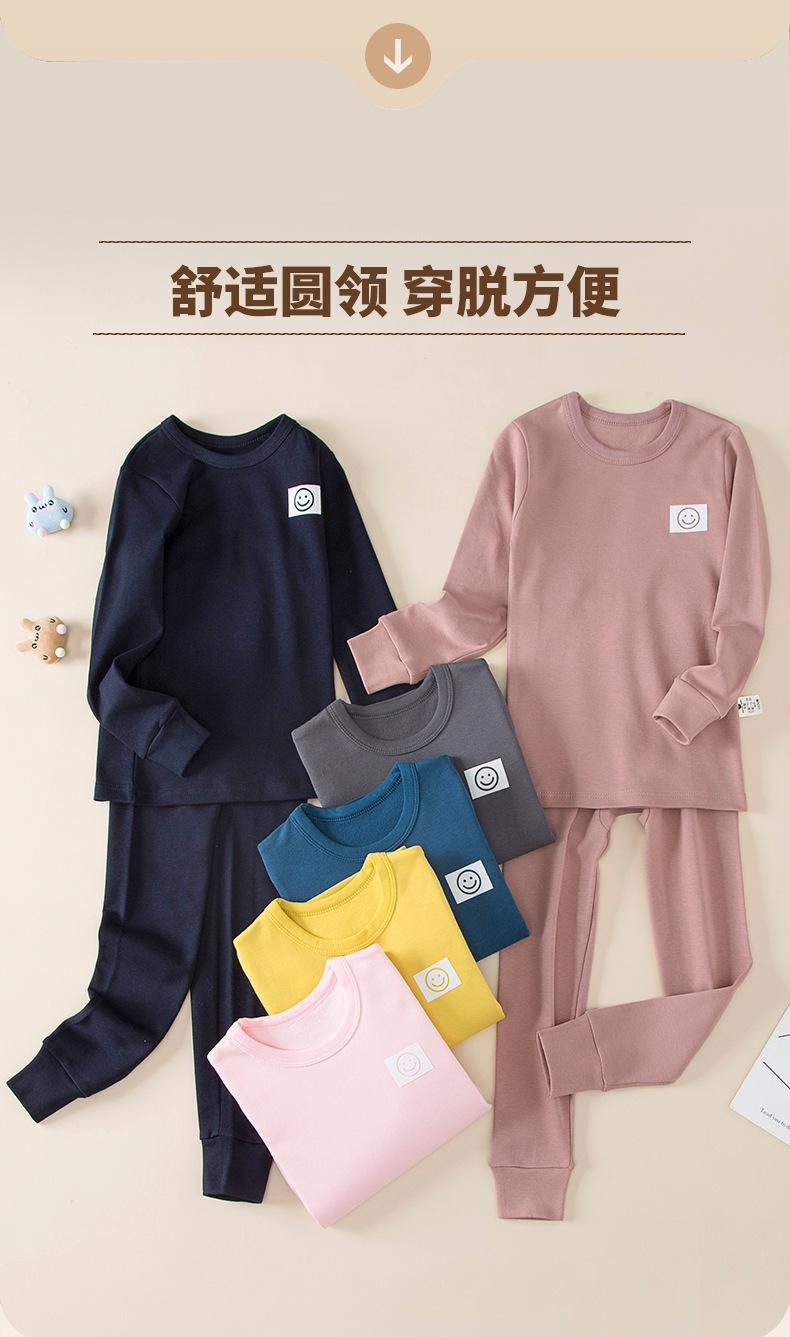 가을과 겨울 어린이 단색 샌딩 두꺼운 열 속옷 세트 코튼 라운드 넥 잠옷 소년 소녀 홈 옷스토어 가기