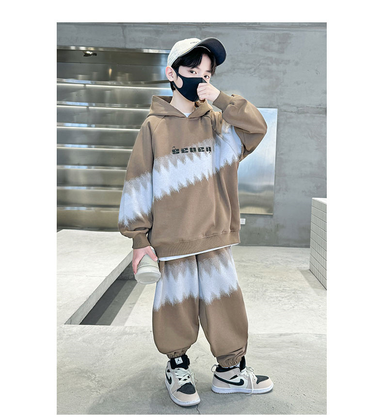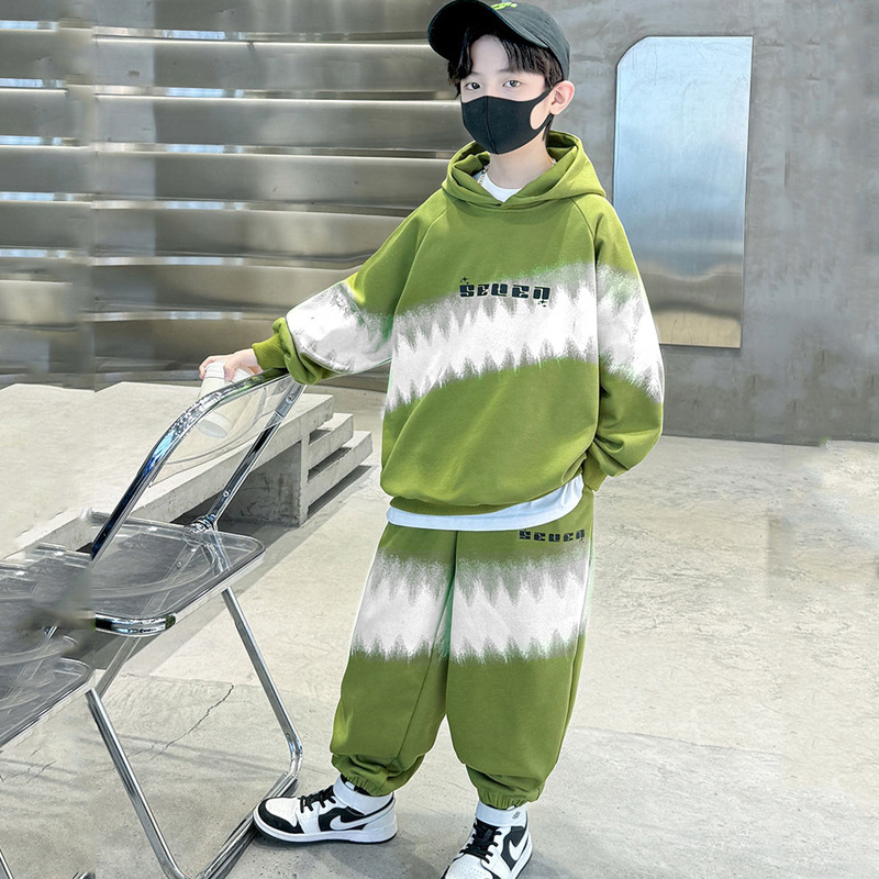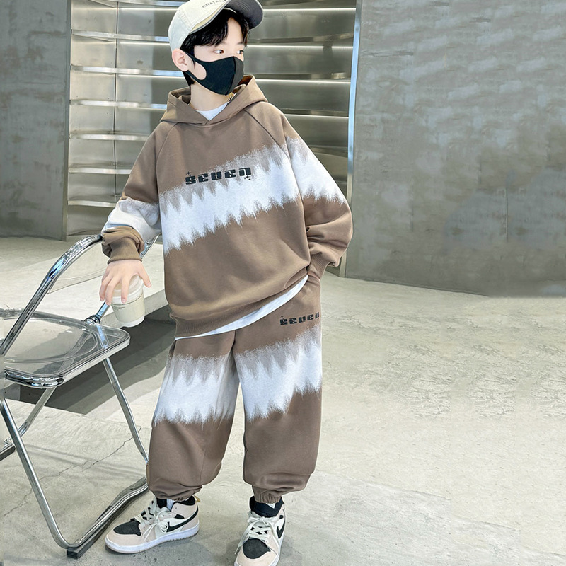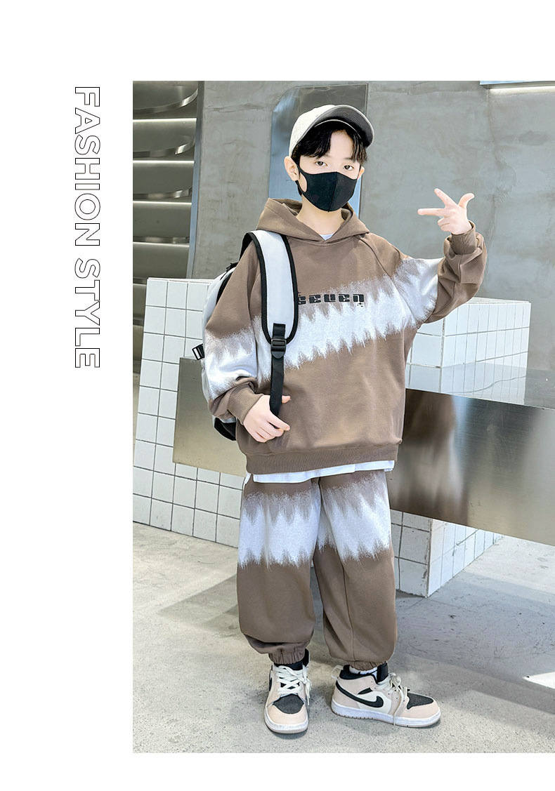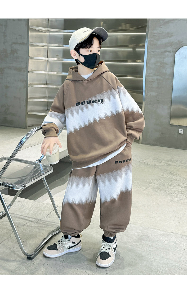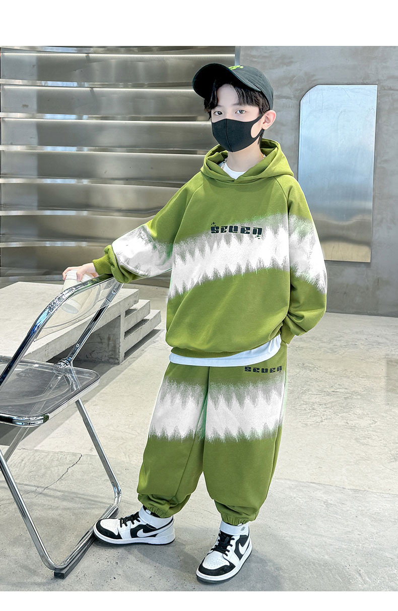 가을 겨울 아동 패션 트렌디 캐주얼 슈트, 큰 아동용 루즈한 레터 후드 스웨트셔츠와 레깅스 스웨트팬츠 투피스 세트스토어 가기