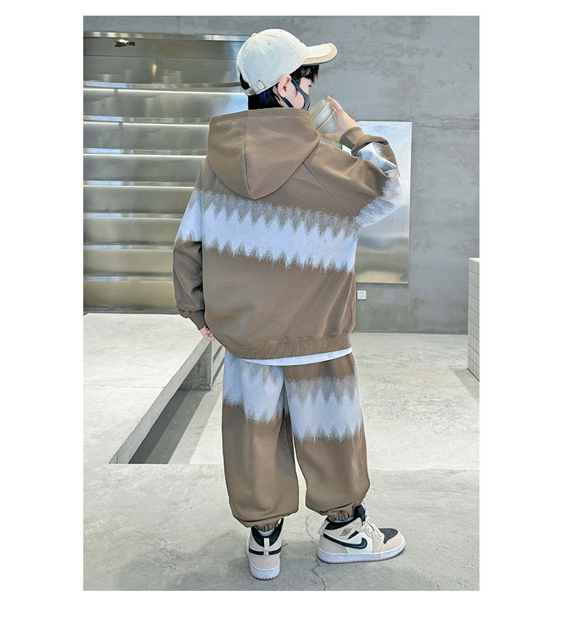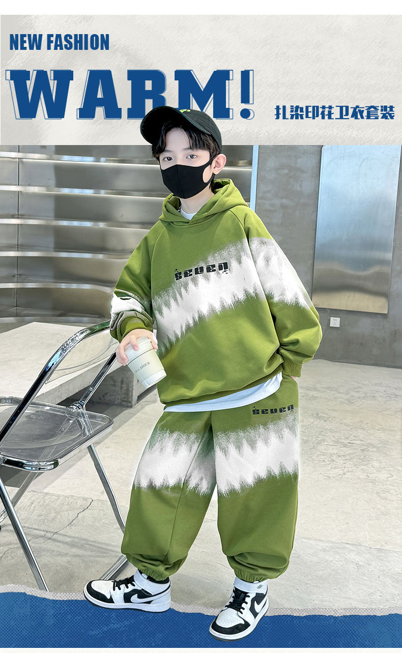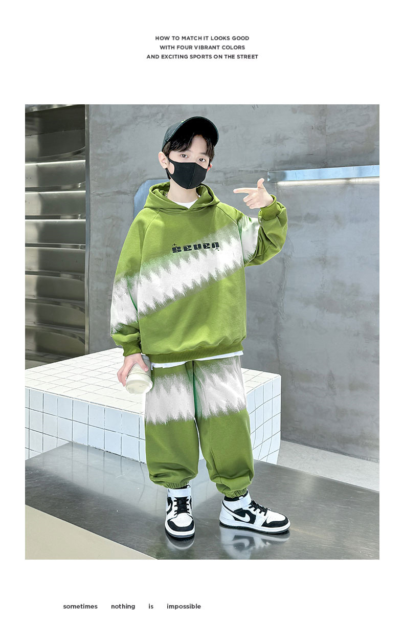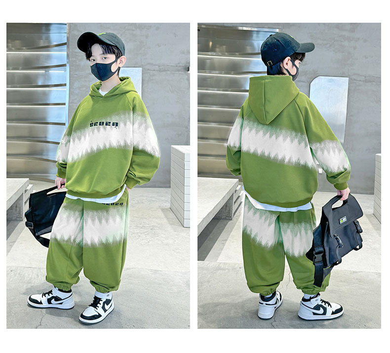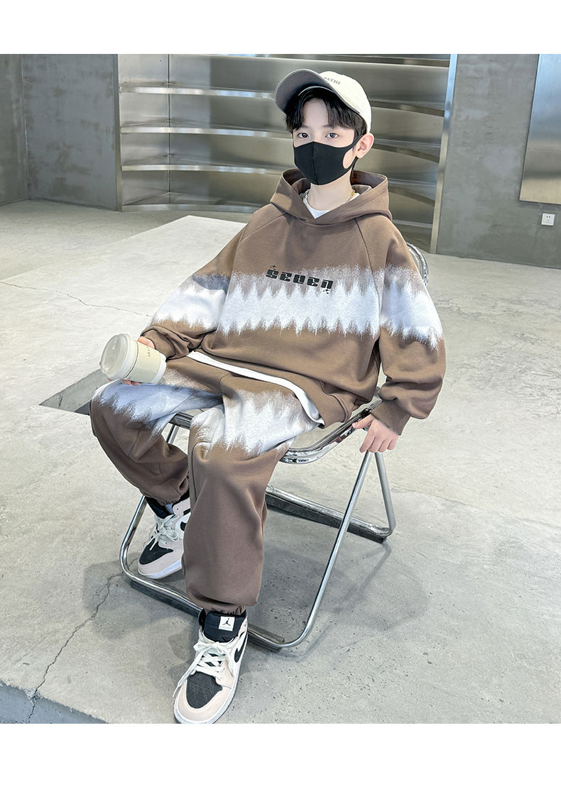 가을 겨울 아동 패션 트렌디 캐주얼 슈트, 큰 아동용 루즈한 레터 후드 스웨트셔츠와 레깅스 스웨트팬츠 투피스 세트스토어 가기