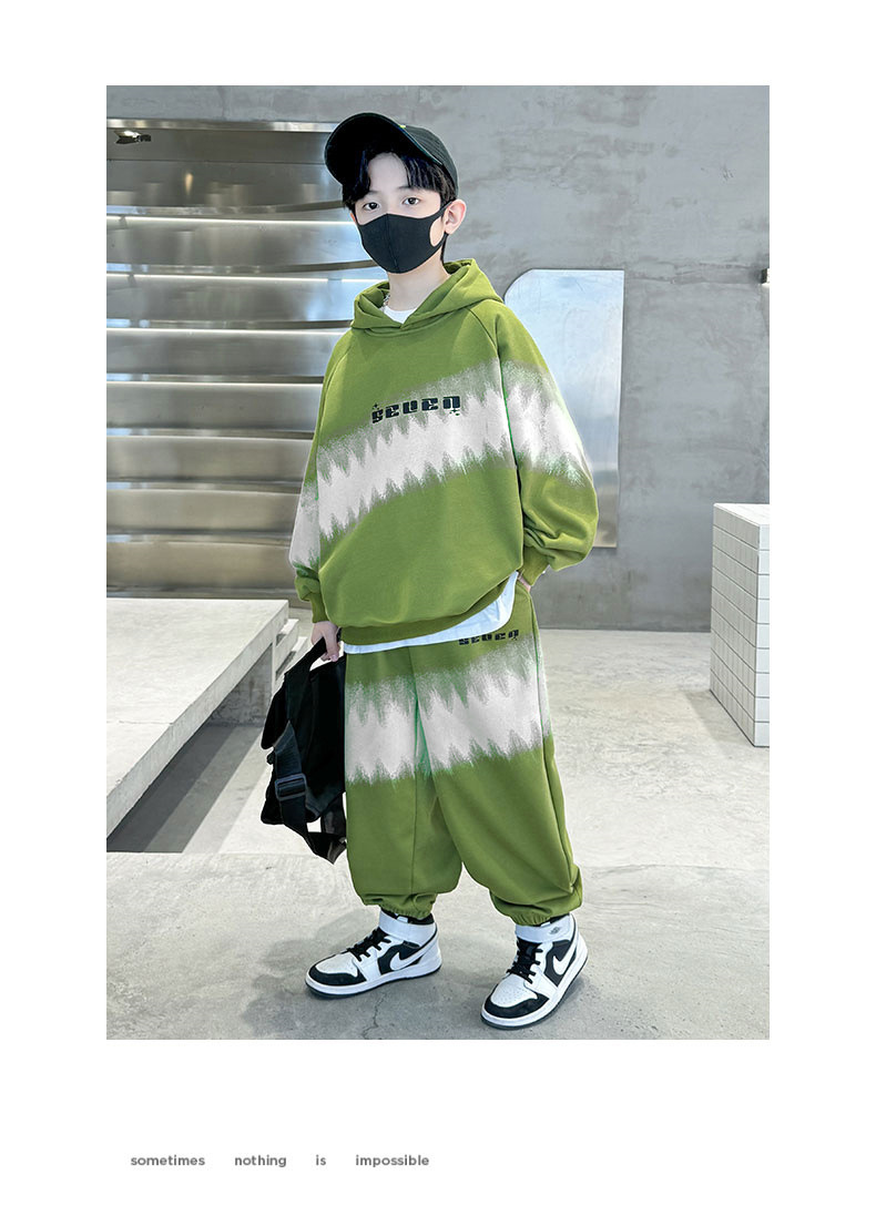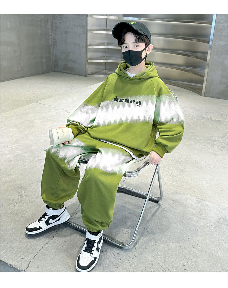 가을 겨울 아동 패션 트렌디 캐주얼 슈트, 큰 아동용 루즈한 레터 후드 스웨트셔츠와 레깅스 스웨트팬츠 투피스 세트