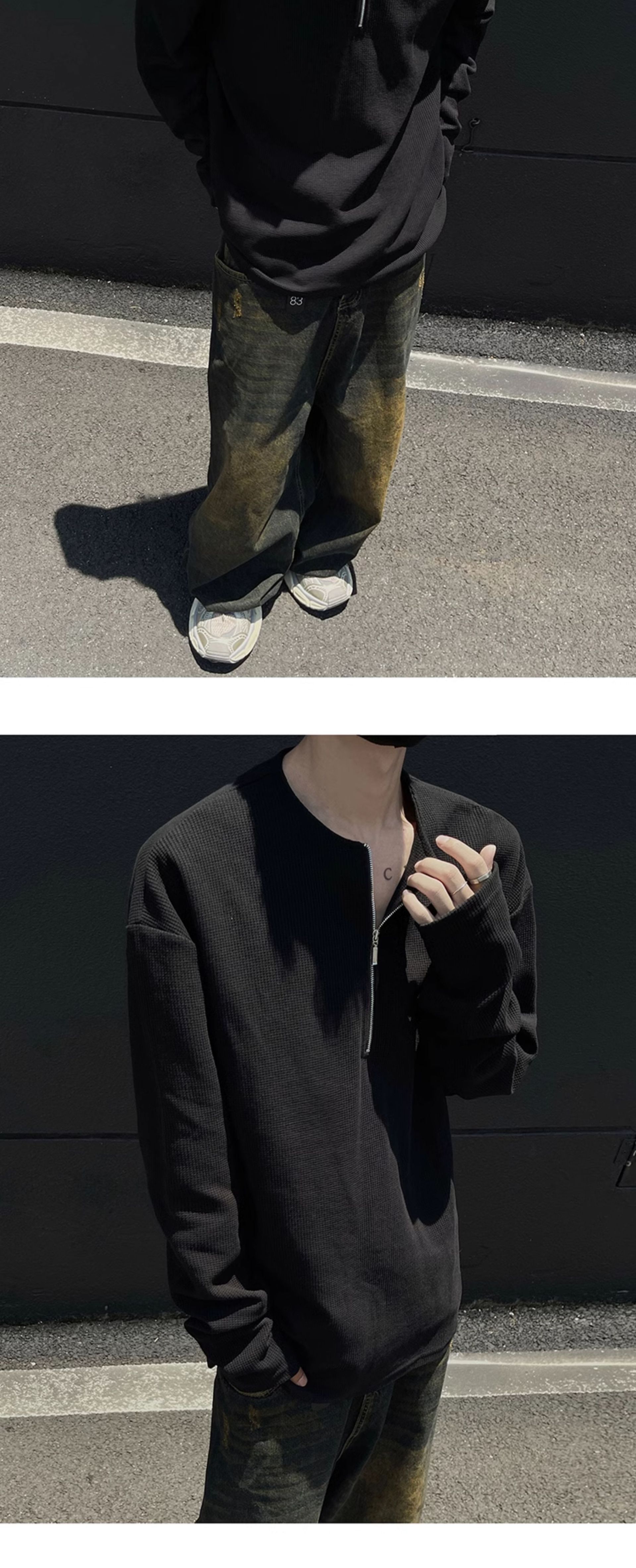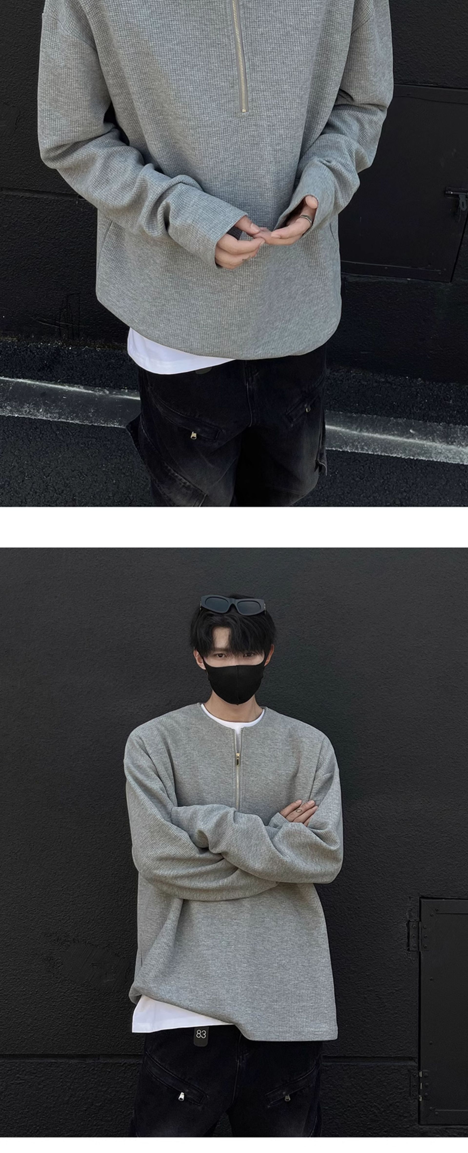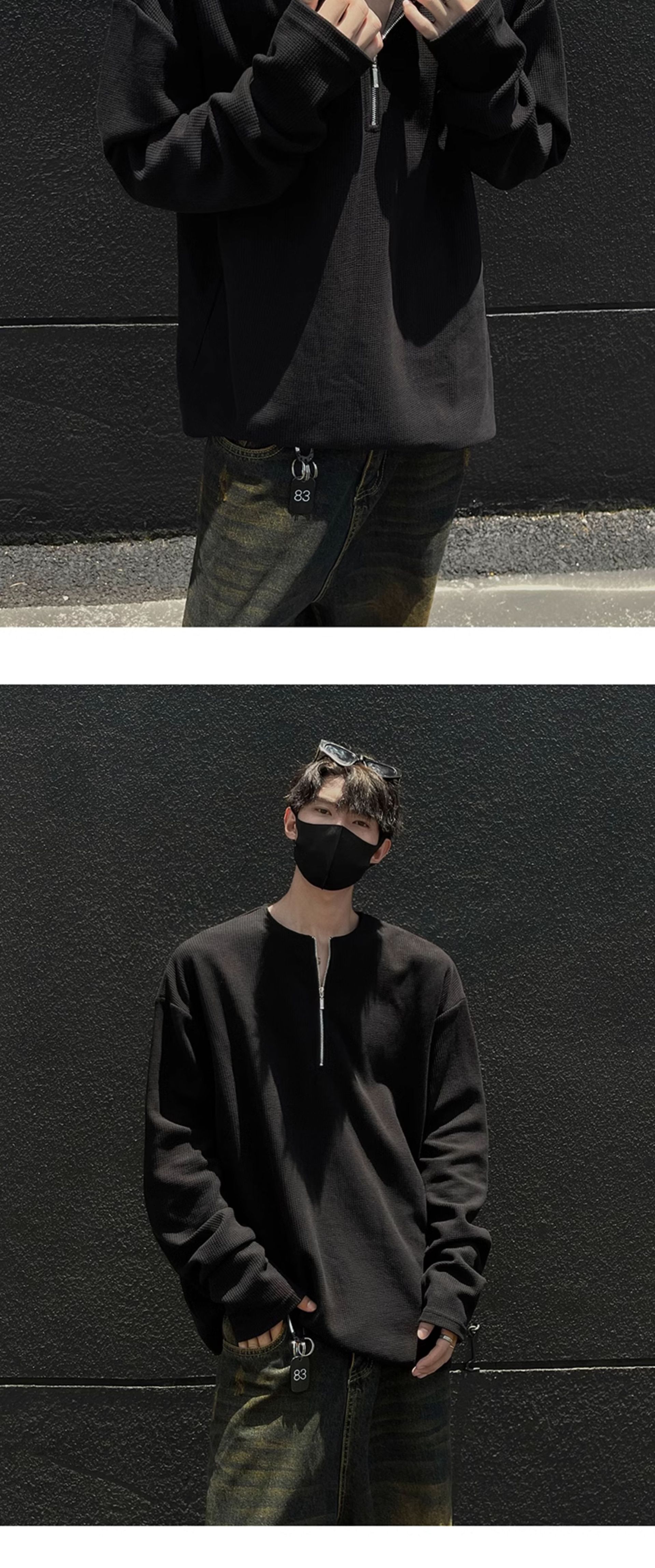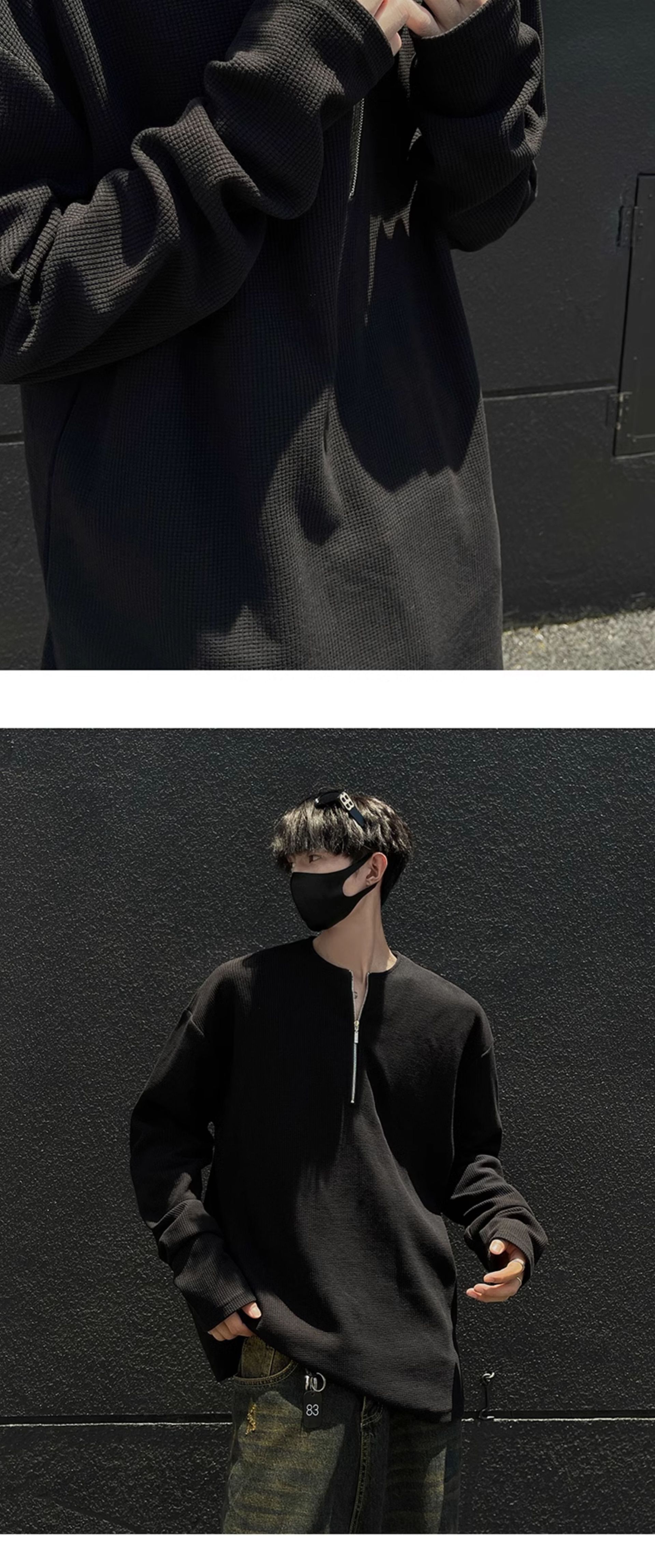와플 반 지퍼 긴팔 티셔츠 남자 가을 패션 브랜드 미국 스타일 하이 스트리트 라운드 넥 스웨터 느슨한 캐주얼베이스 셔츠스토어 가기