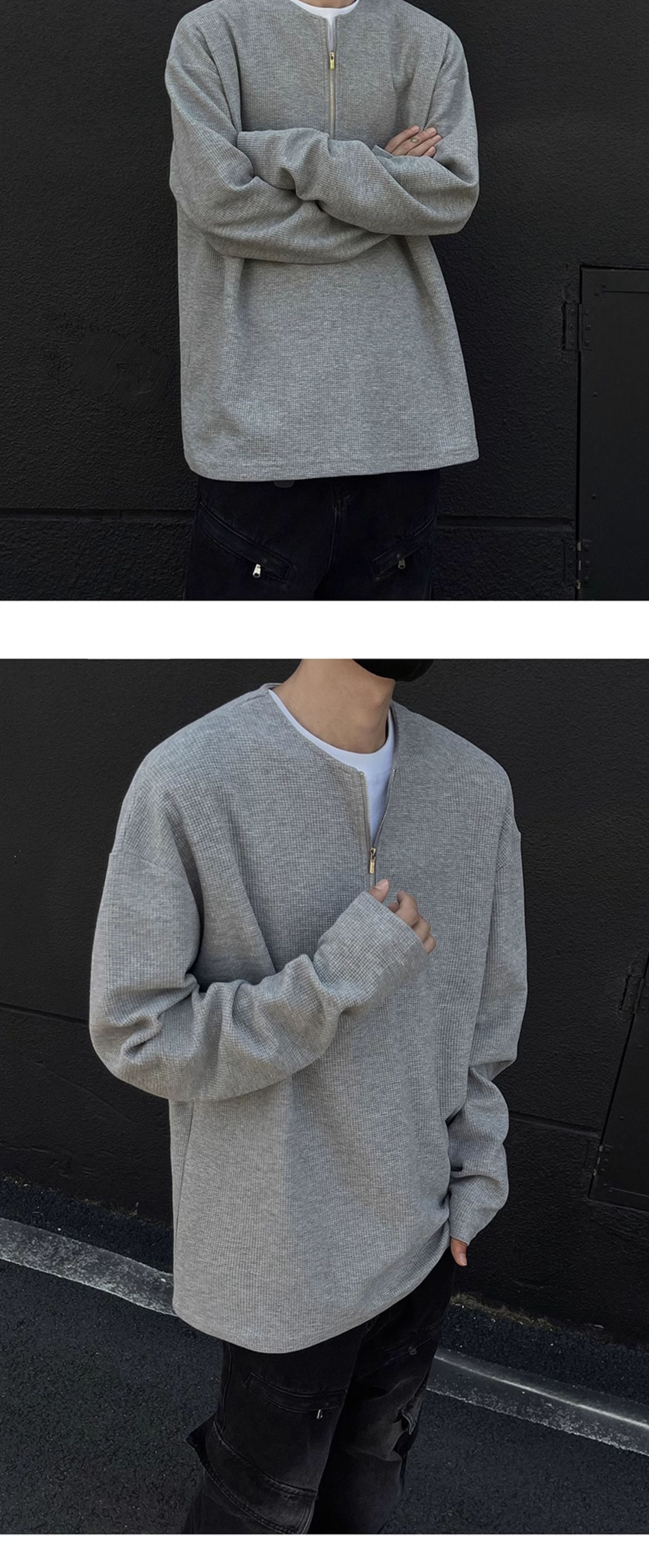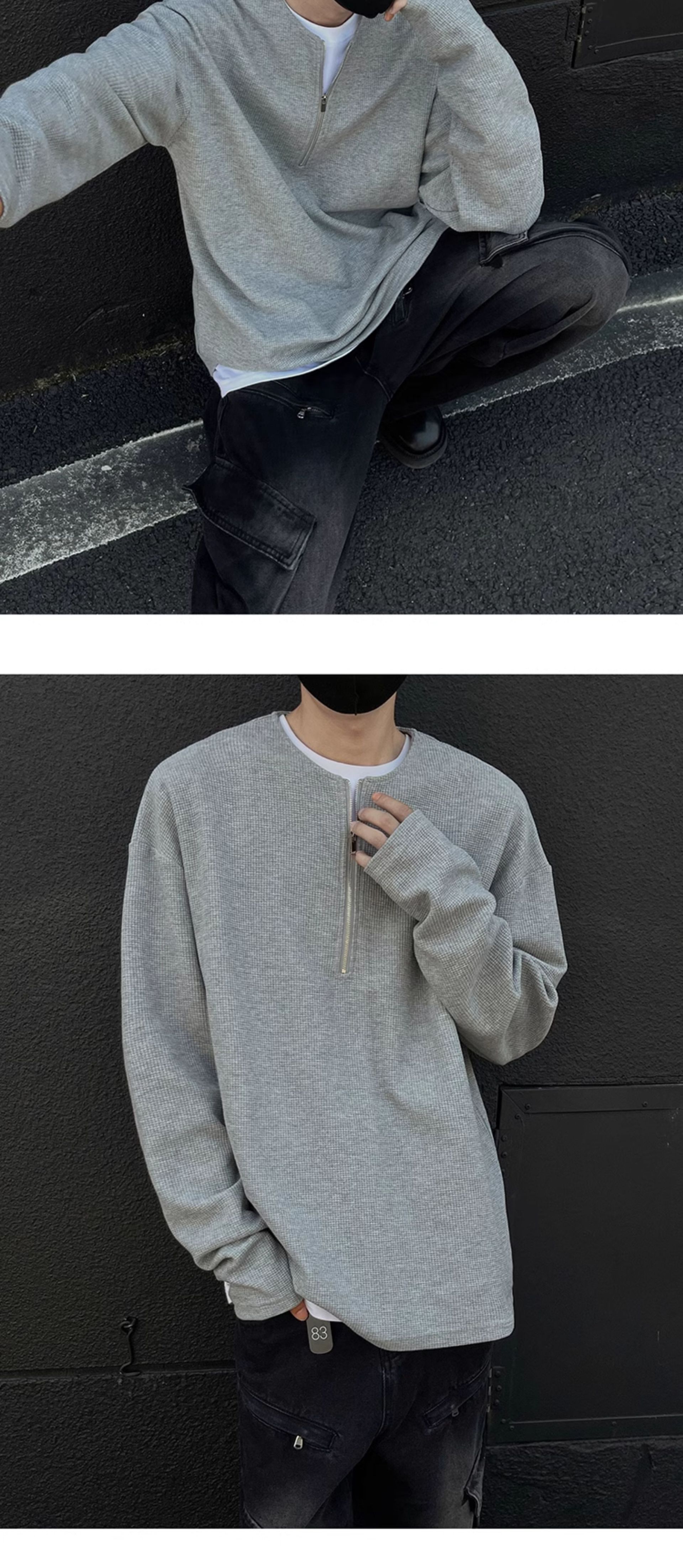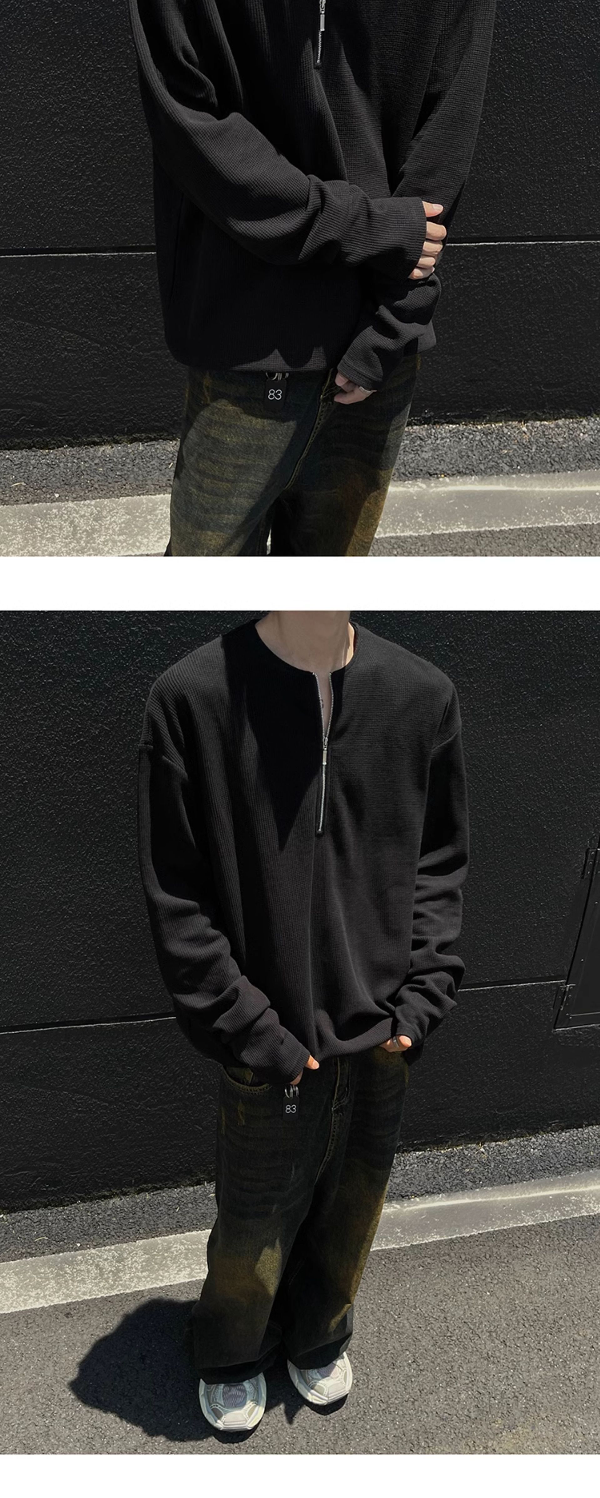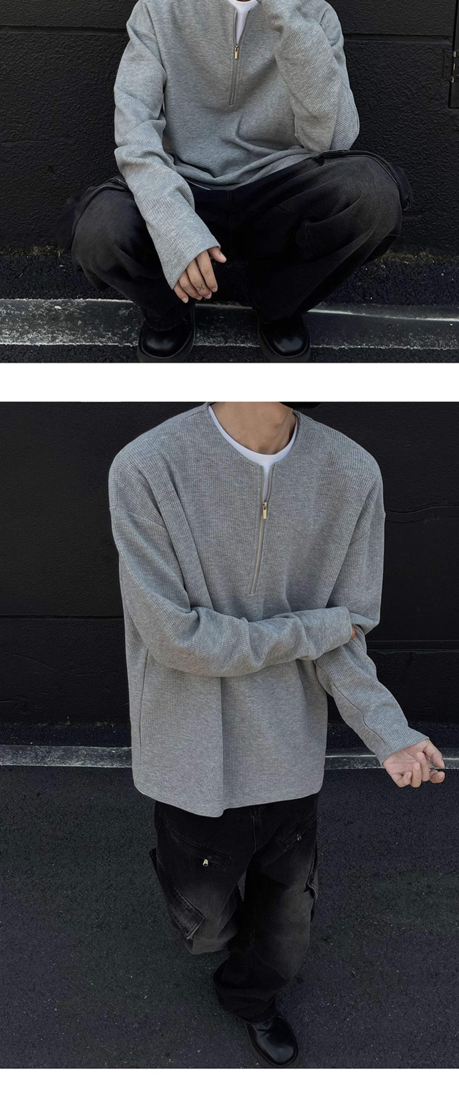 와플 반 지퍼 긴팔 티셔츠 남자 가을 패션 브랜드 미국 스타일 하이 스트리트 라운드 넥 스웨터 느슨한 캐주얼베이스 셔츠스토어 가기