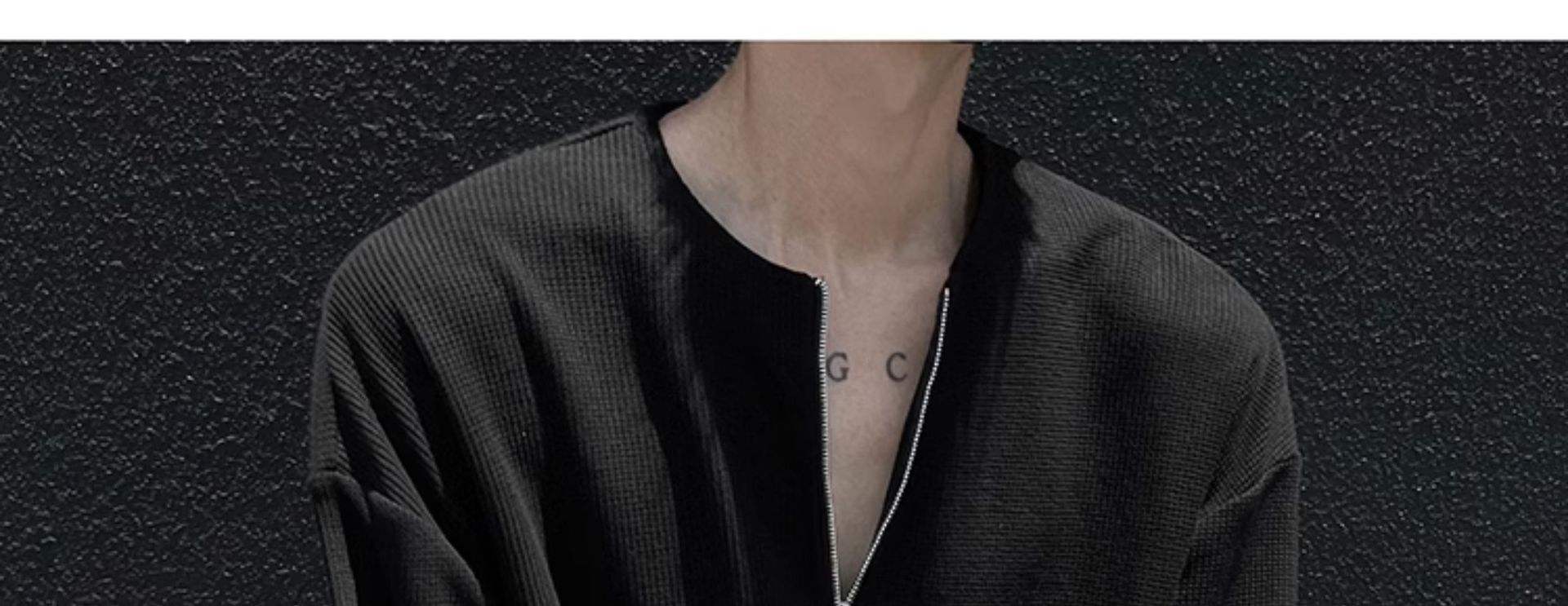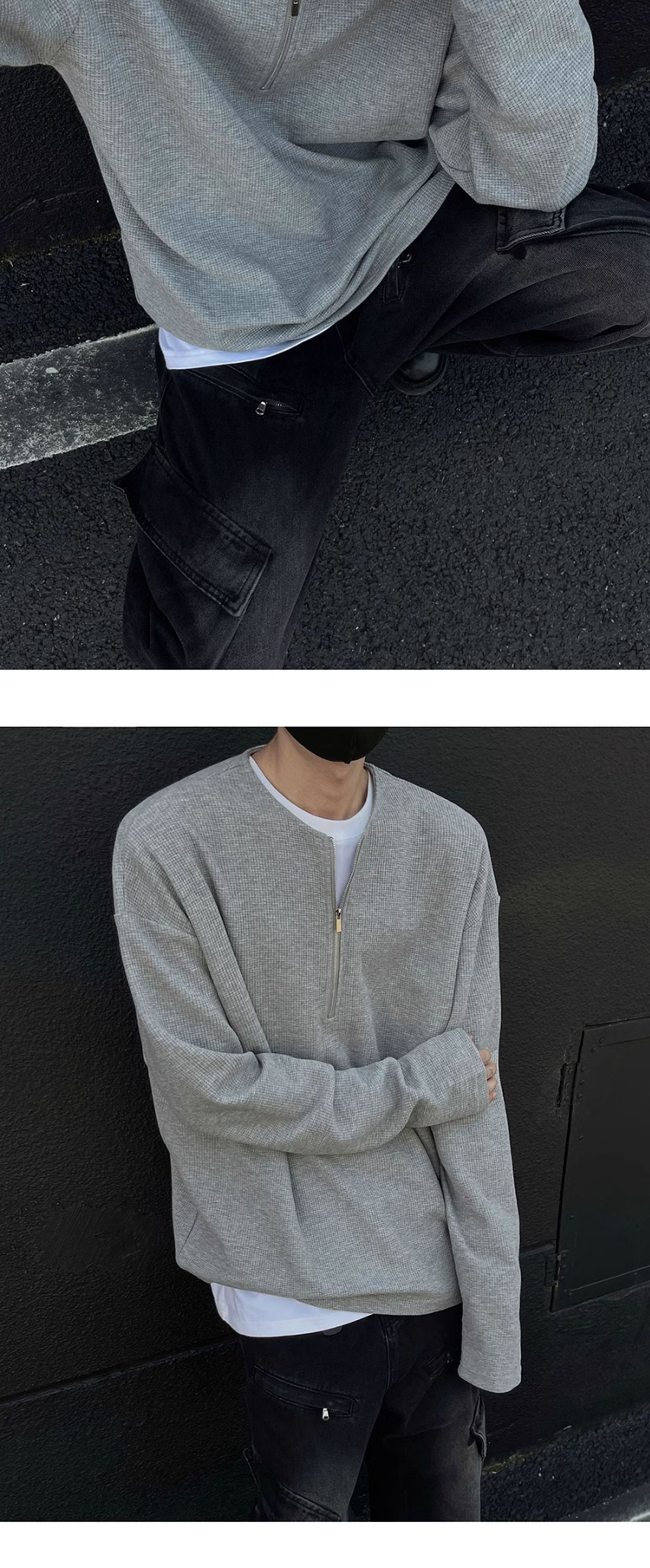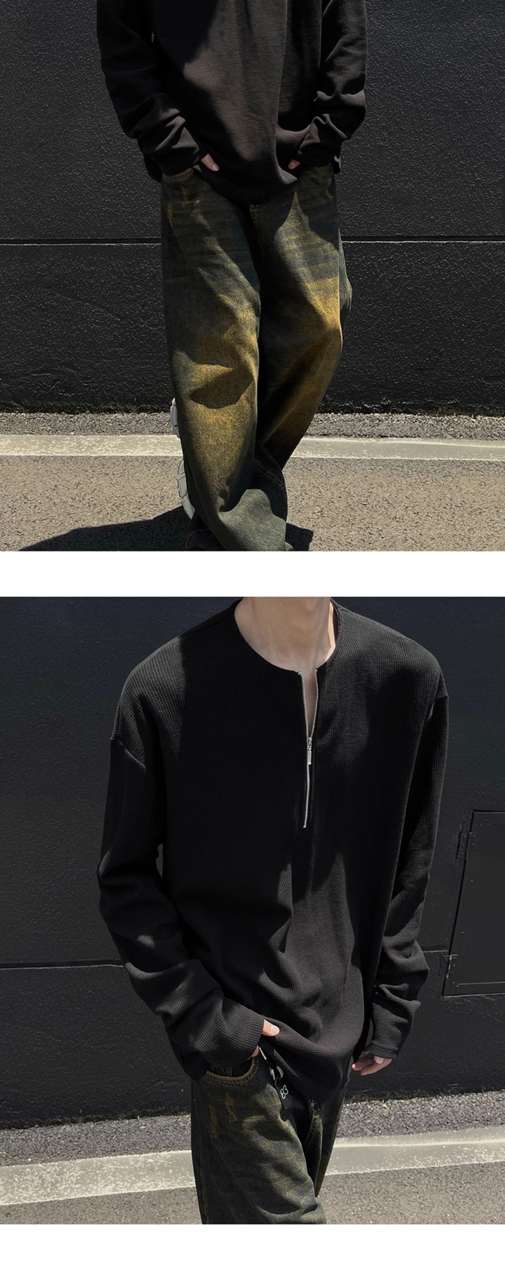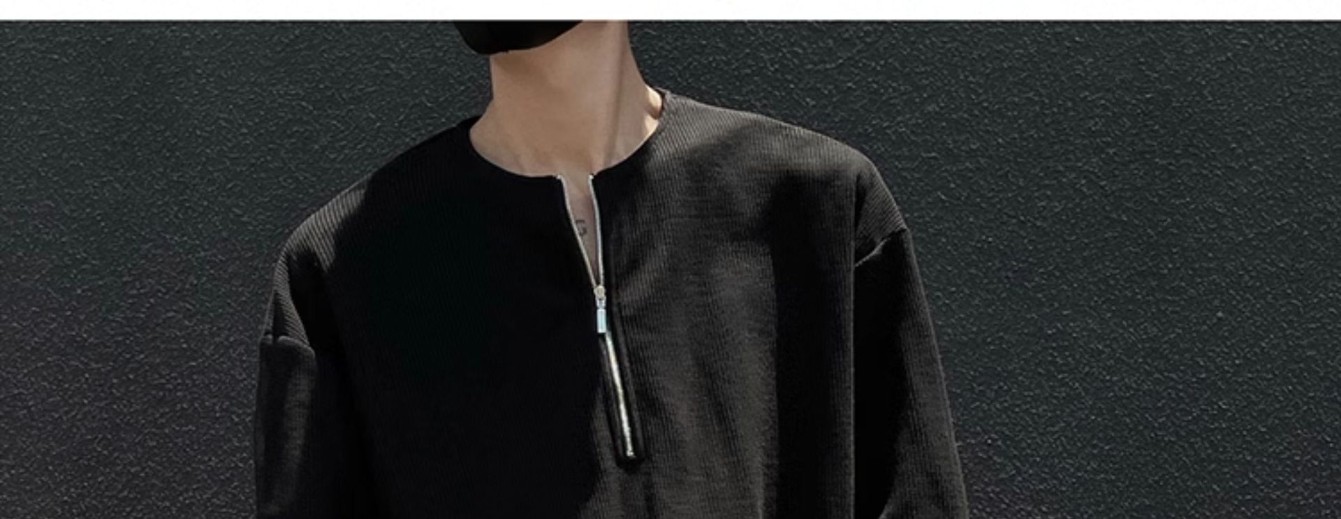 와플 반 지퍼 긴팔 티셔츠 남자 가을 패션 브랜드 미국 스타일 하이 스트리트 라운드 넥 스웨터 느슨한 캐주얼베이스 셔츠스토어 가기
