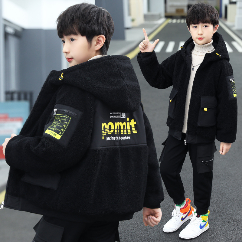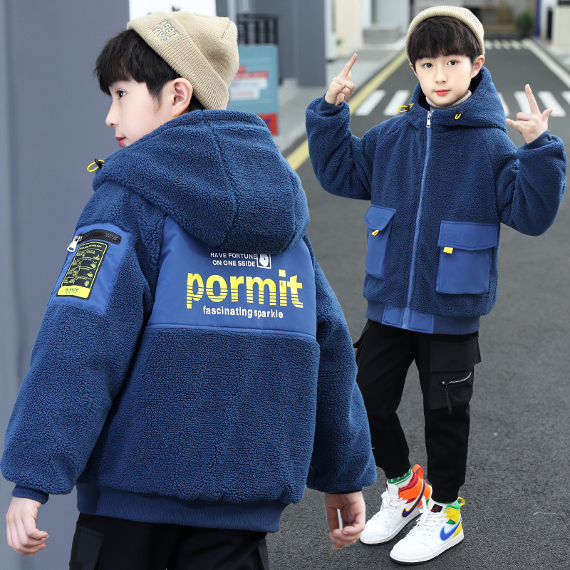 소년 양털 두꺼운 코트 가을, 겨울 2024 새로운 스타일 큰 어린이 스타일 소년 겨울 폴라 플리스 스웨터스토어 가기