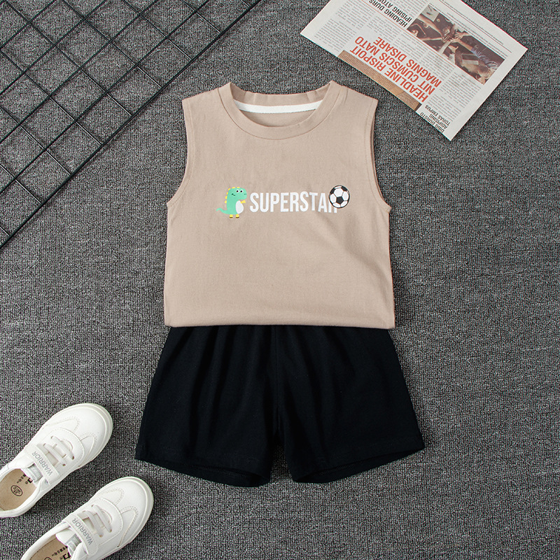 2023 여름 얇은 어린이 느슨한 캐주얼 조끼 세트 소년 소녀를위한 투피스 세트 인쇄 넓은 어깨 조끼 반바지