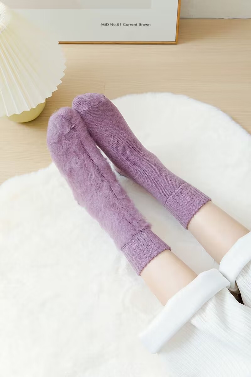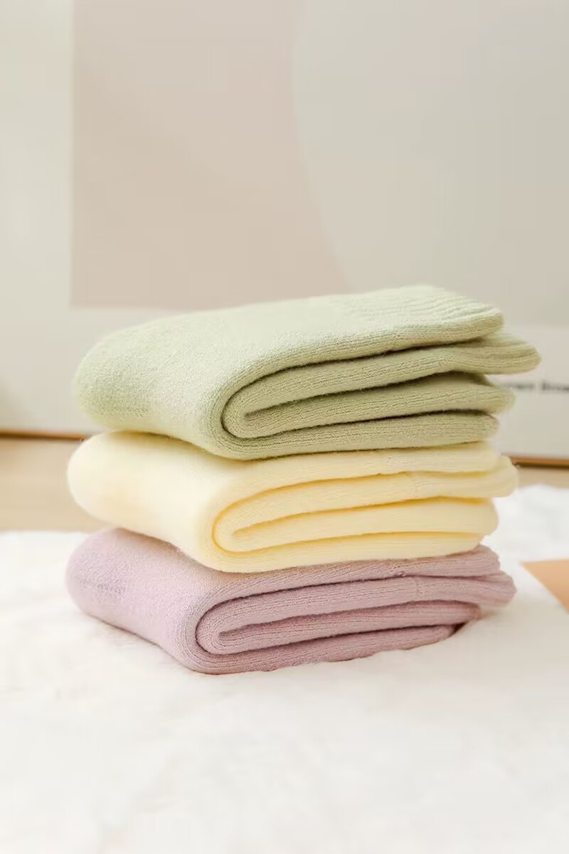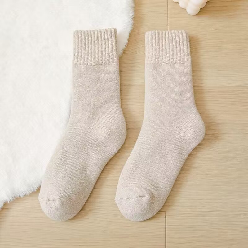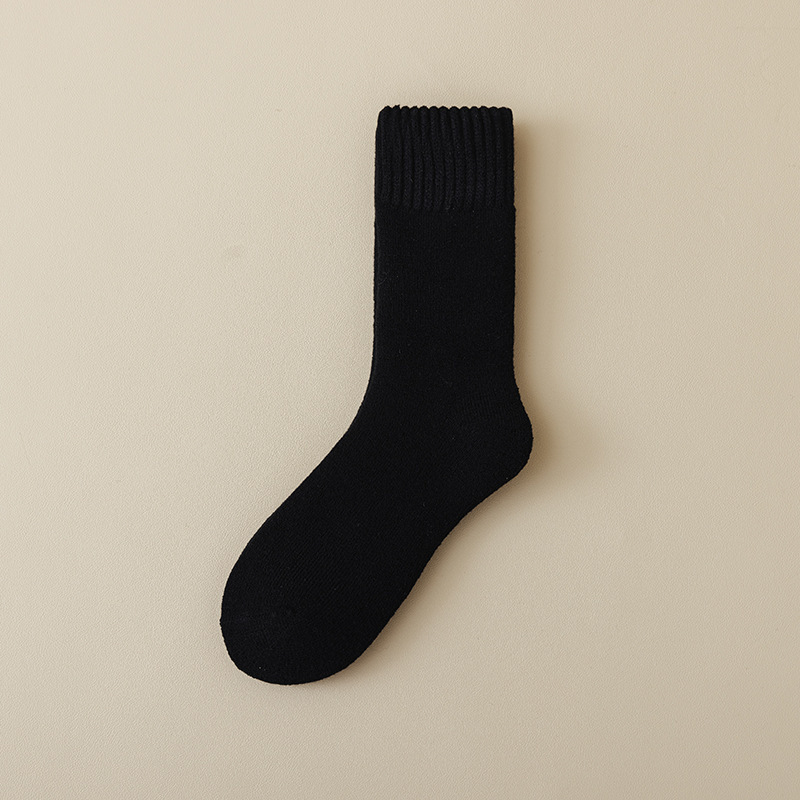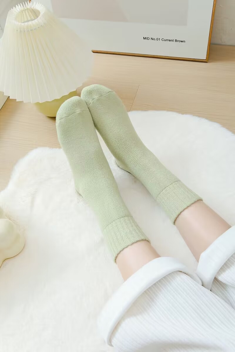 벨벳 양말 여성용 솔리드 컬러 코튼 양말 겨울 두꺼운 따뜻한 중간 길이 양말 기모 테리 문 양말 중간 길이 여성용 양말
