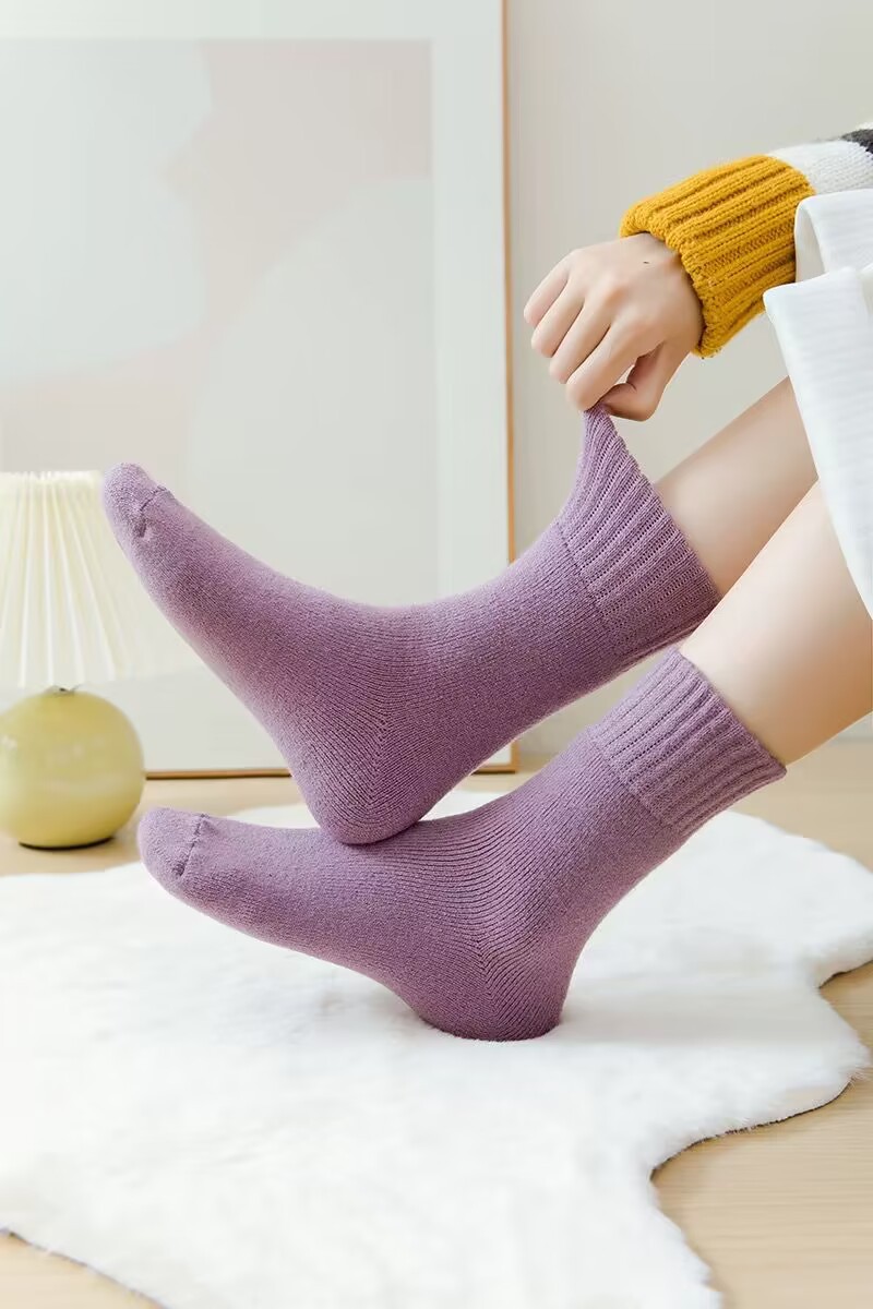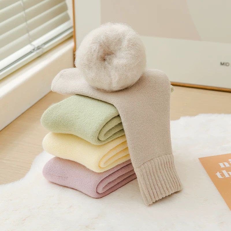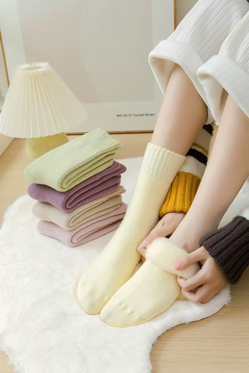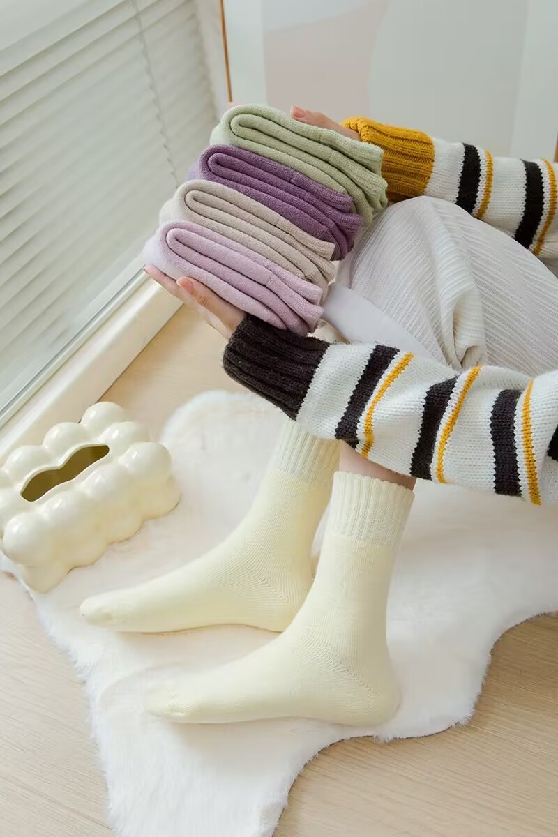 벨벳 양말 여성용 솔리드 컬러 코튼 양말 겨울 두꺼운 따뜻한 중간 길이 양말 기모 테리 문 양말 중간 길이 여성용 양말스토어 가기