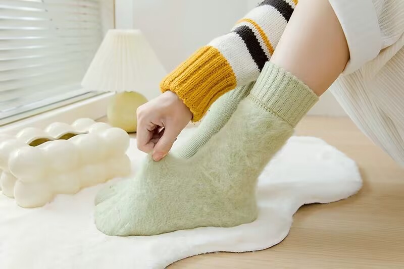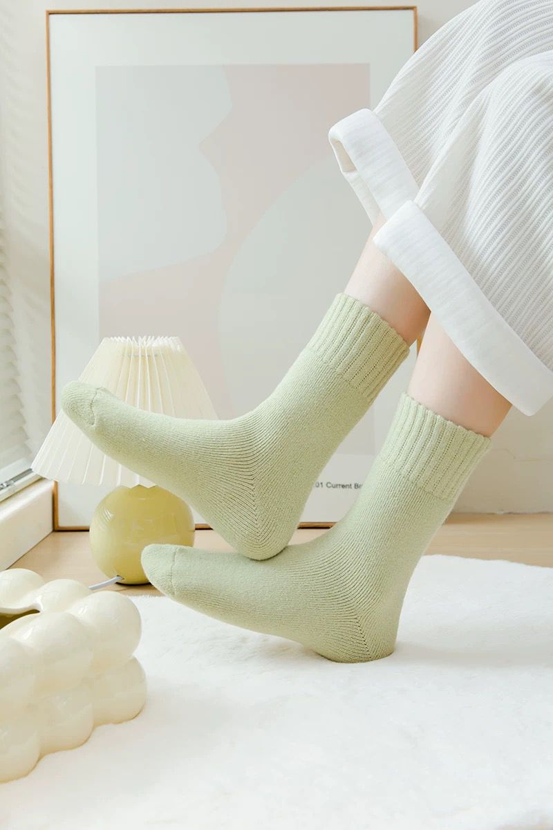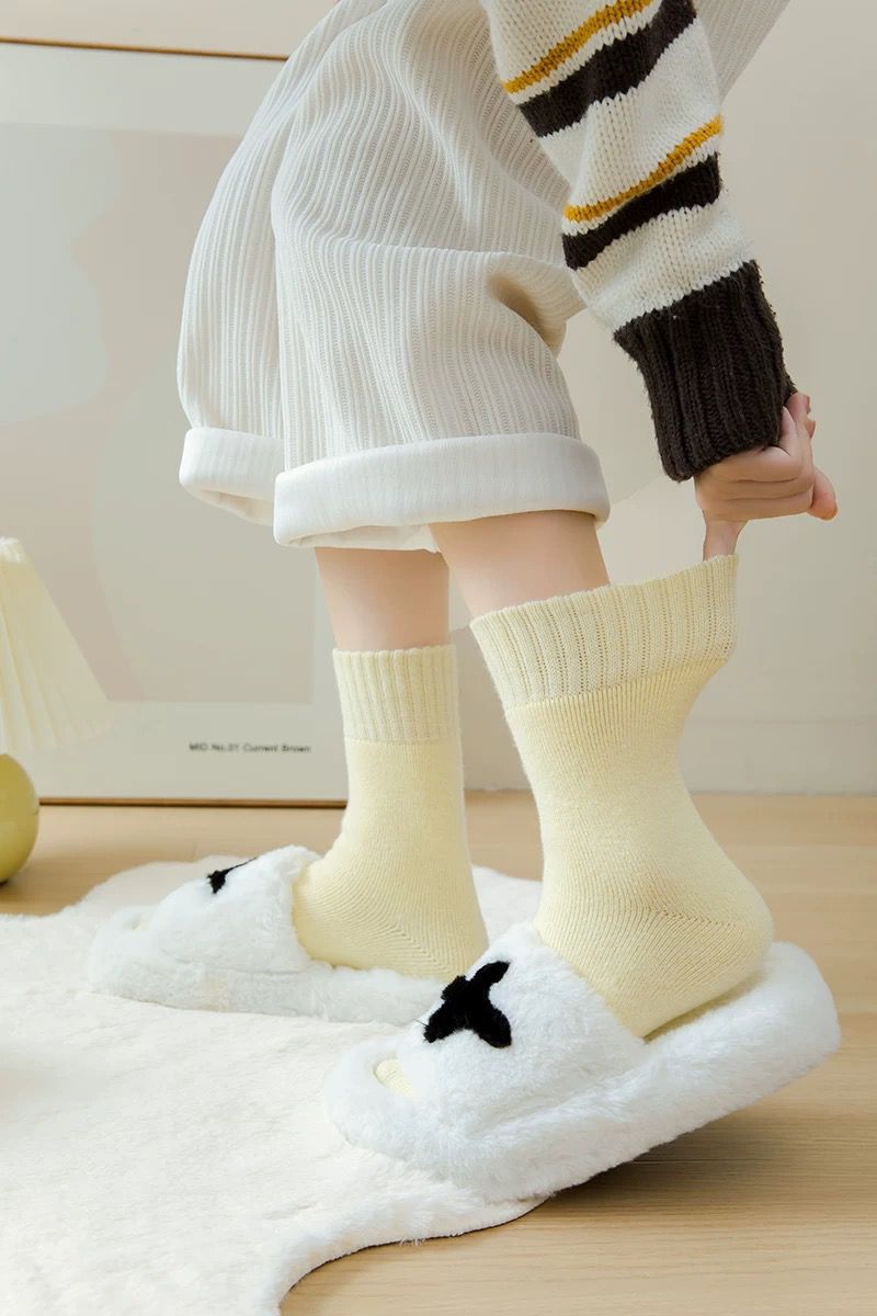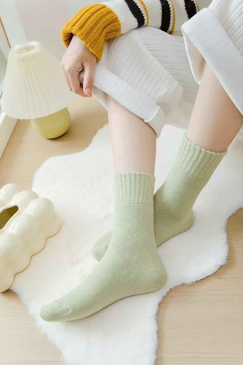 벨벳 양말 여성용 솔리드 컬러 코튼 양말 겨울 두꺼운 따뜻한 중간 길이 양말 기모 테리 문 양말 중간 길이 여성용 양말스토어 가기