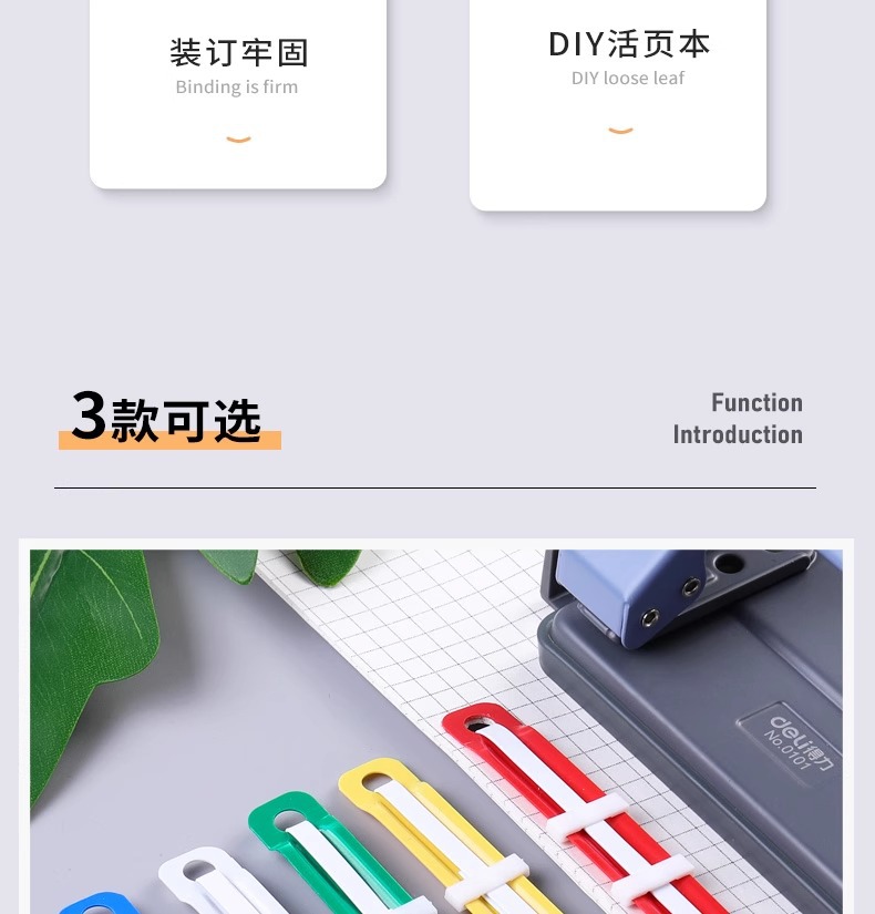 델리 5548 바인더 바인더 플라스틱 더블 홀 바인더 스트립 문서 바인더 컬러 펀칭 기계 소모품스토어 가기