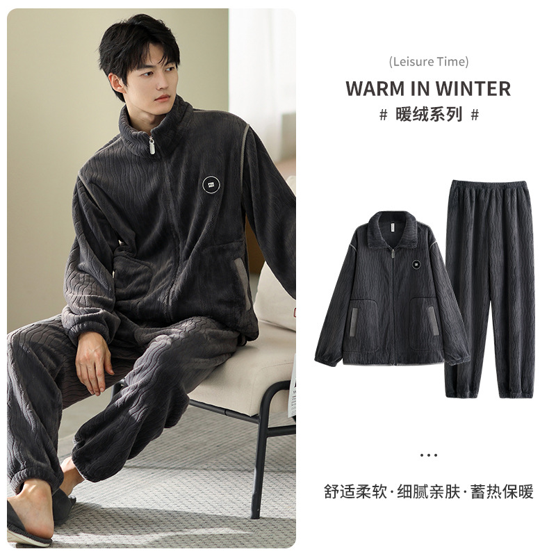 잠옷 남자의 겨울 산호 양털 기모 남자의 가을과 겨울 플란넬 높은 수준의 겨울 플러스 사이즈 홈 옷스토어 가기