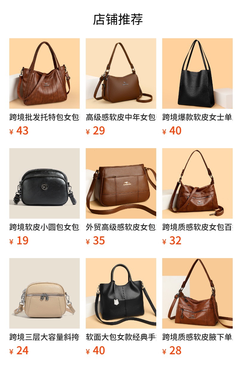 대외 무역 국경 간 질감 부드러운 가죽 핸드백 중년 여성 가방 새로운 경량 통근 대용량 어깨 메신저 가방스토어 가기