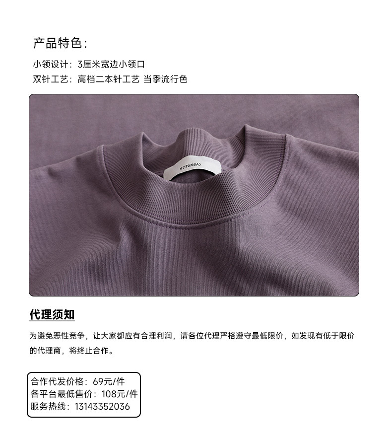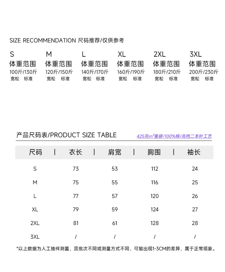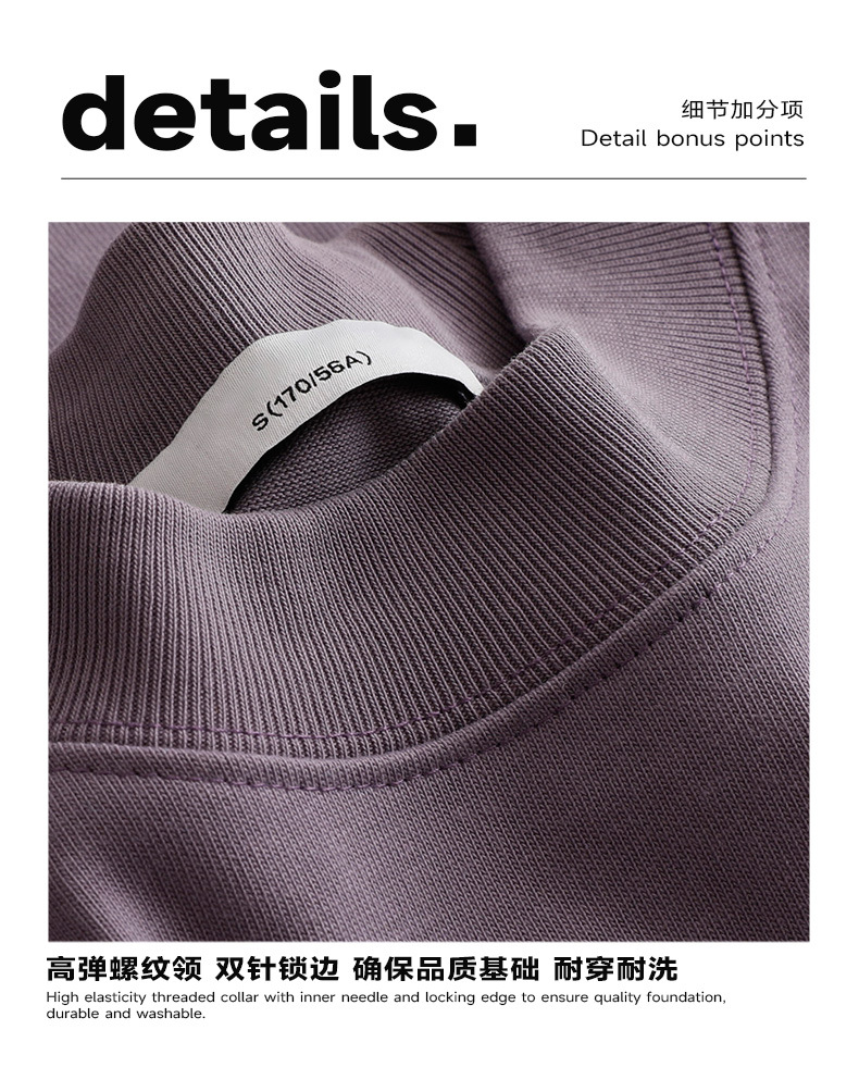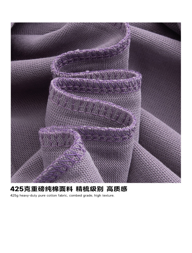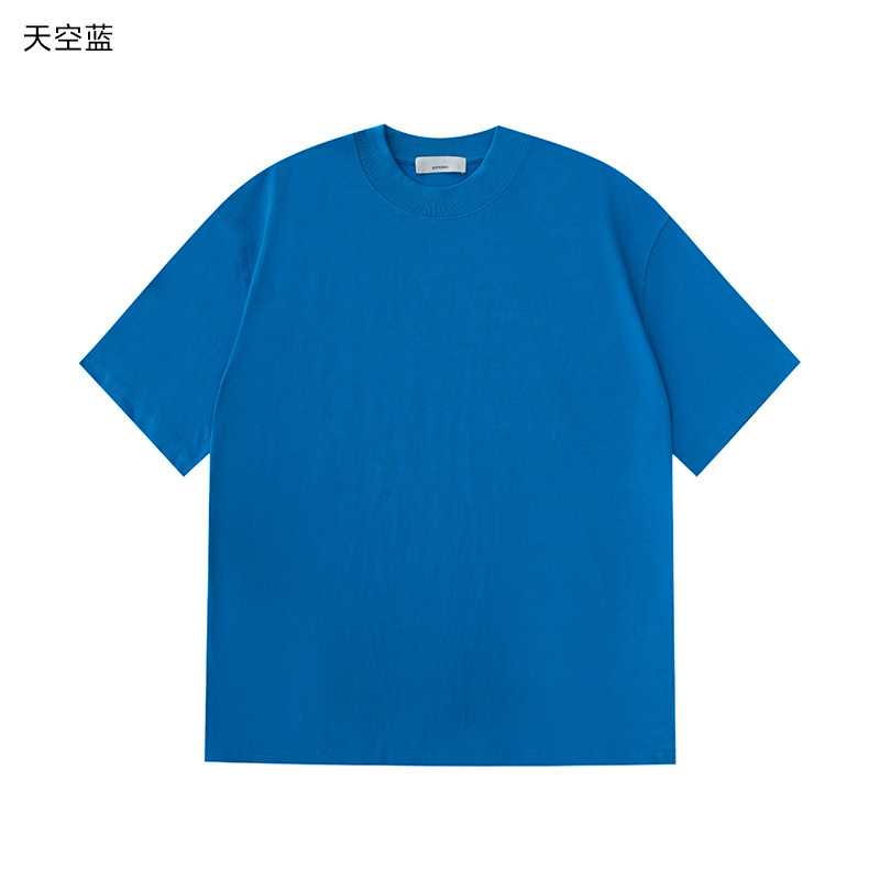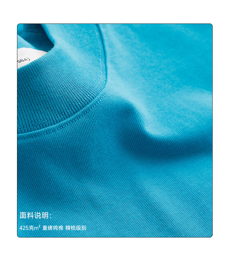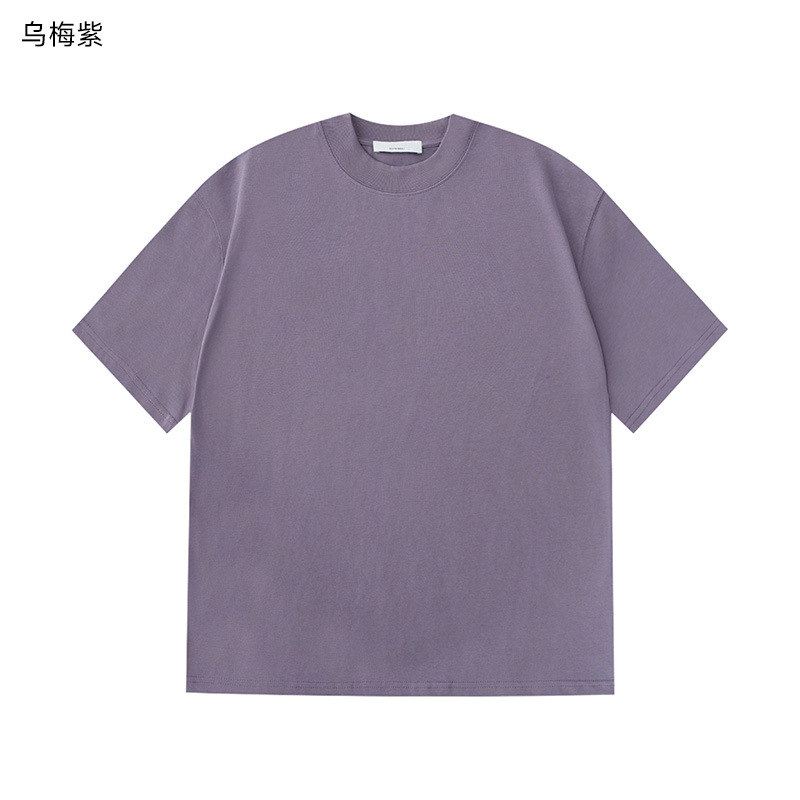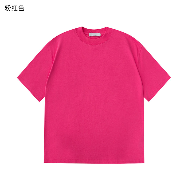 425g 헤비 코튼 티셔츠 미국 스타일 작은 목 높은 무게 높은 질감 면 오버 사이즈 단색 짧은 소매 남성스토어 가기