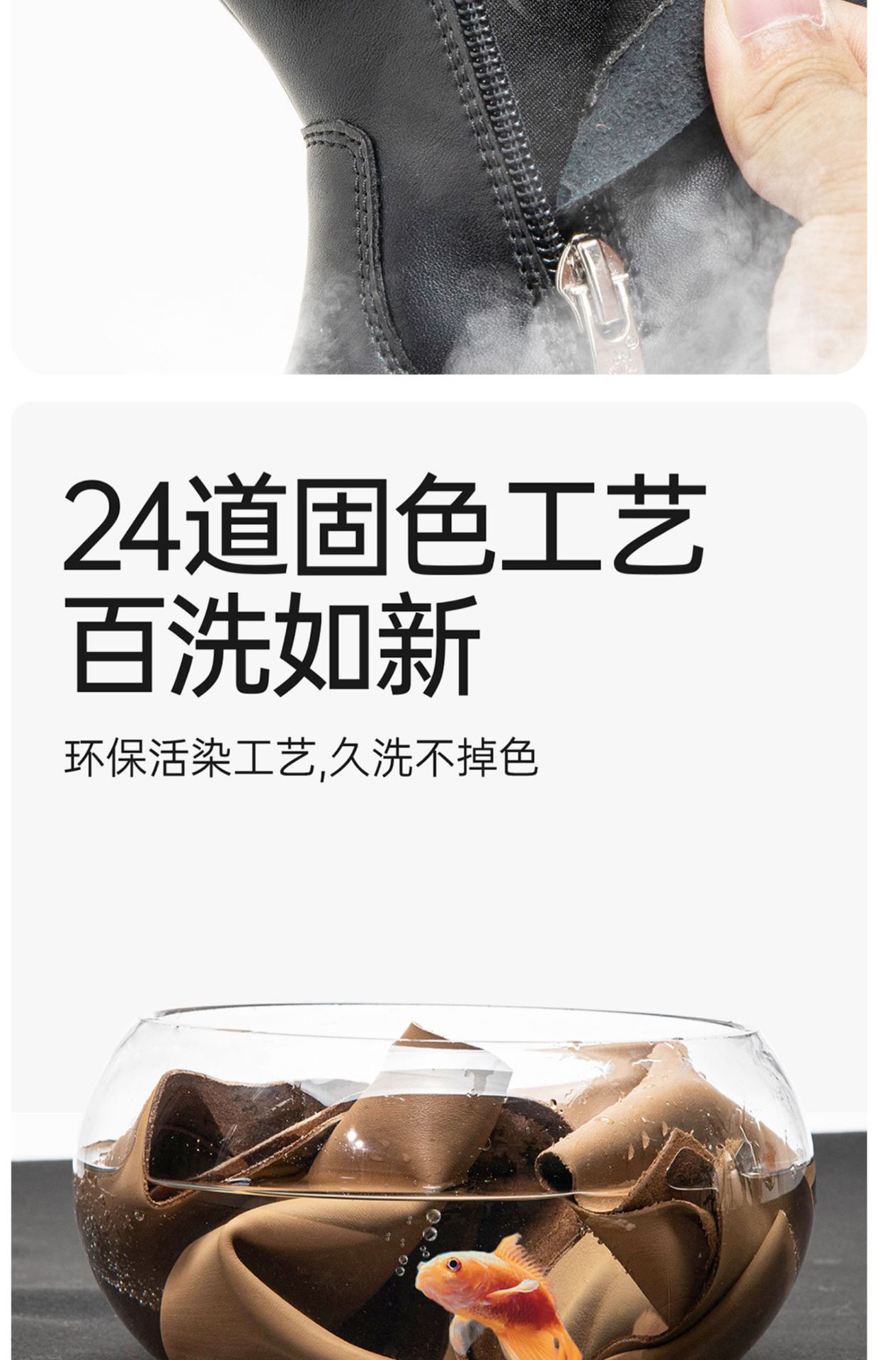 • 브라운 - 싱글 안감 측면 지퍼가 있어 착용이 더 쉽습니다.