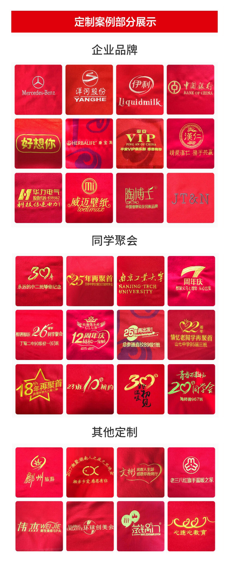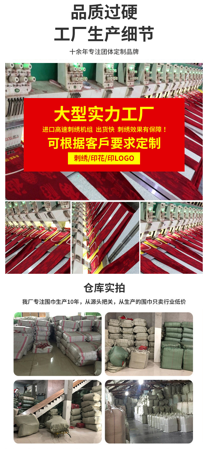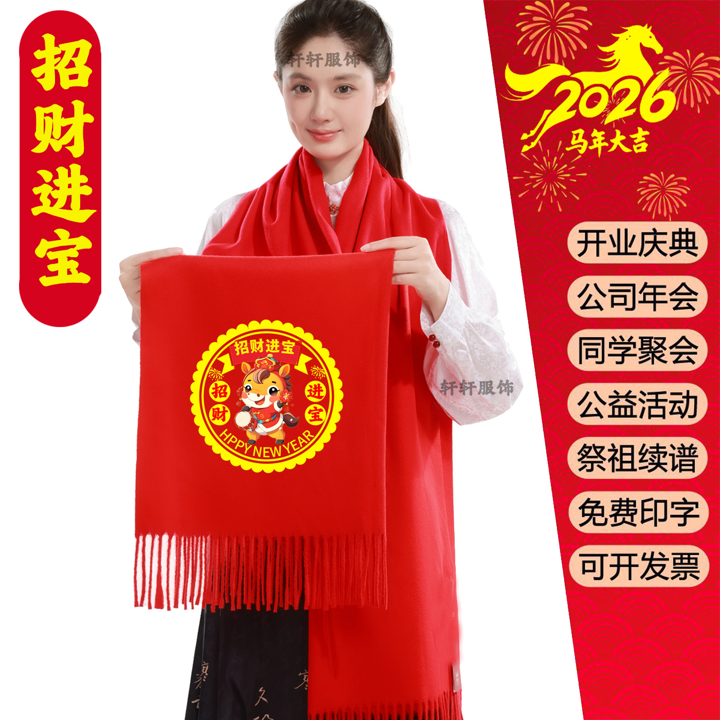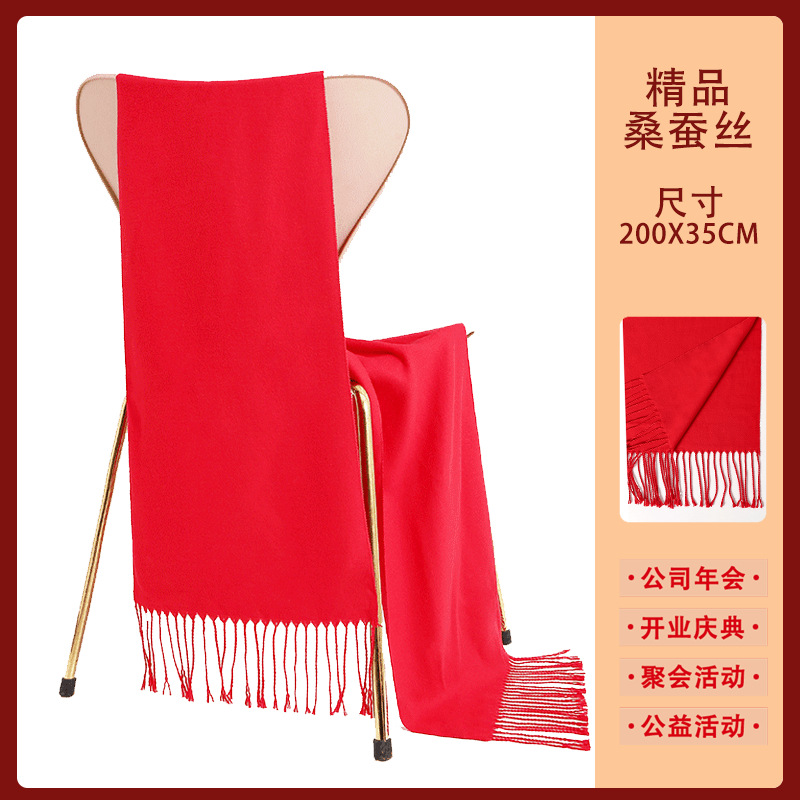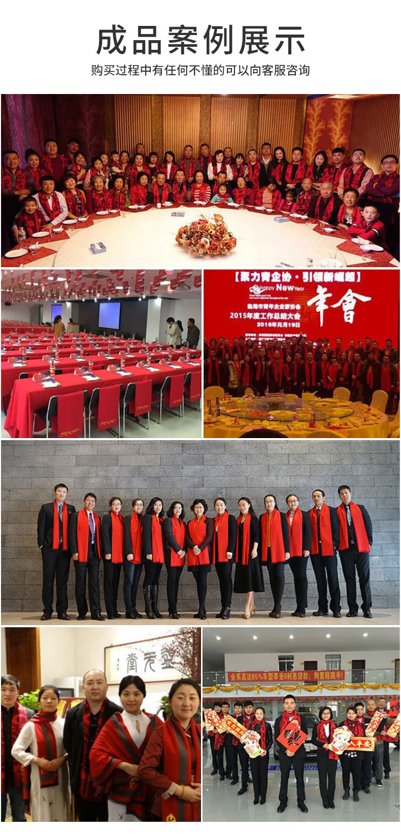 중국 레드 컨퍼런스 레드 스카프 사용자 정의 회사 오프닝 활동 학생 파티 로고 자수 레드 스카프 인쇄스토어 가기