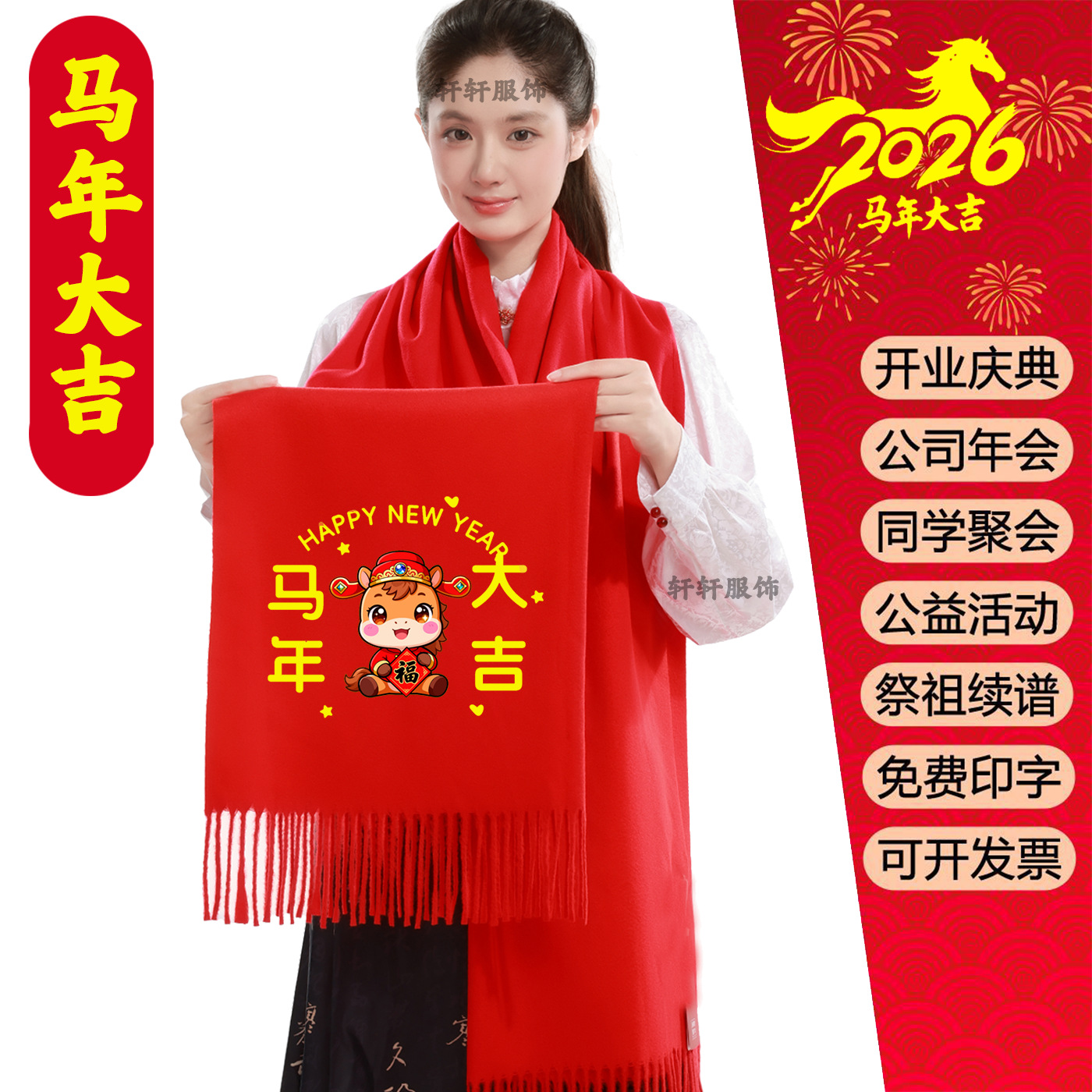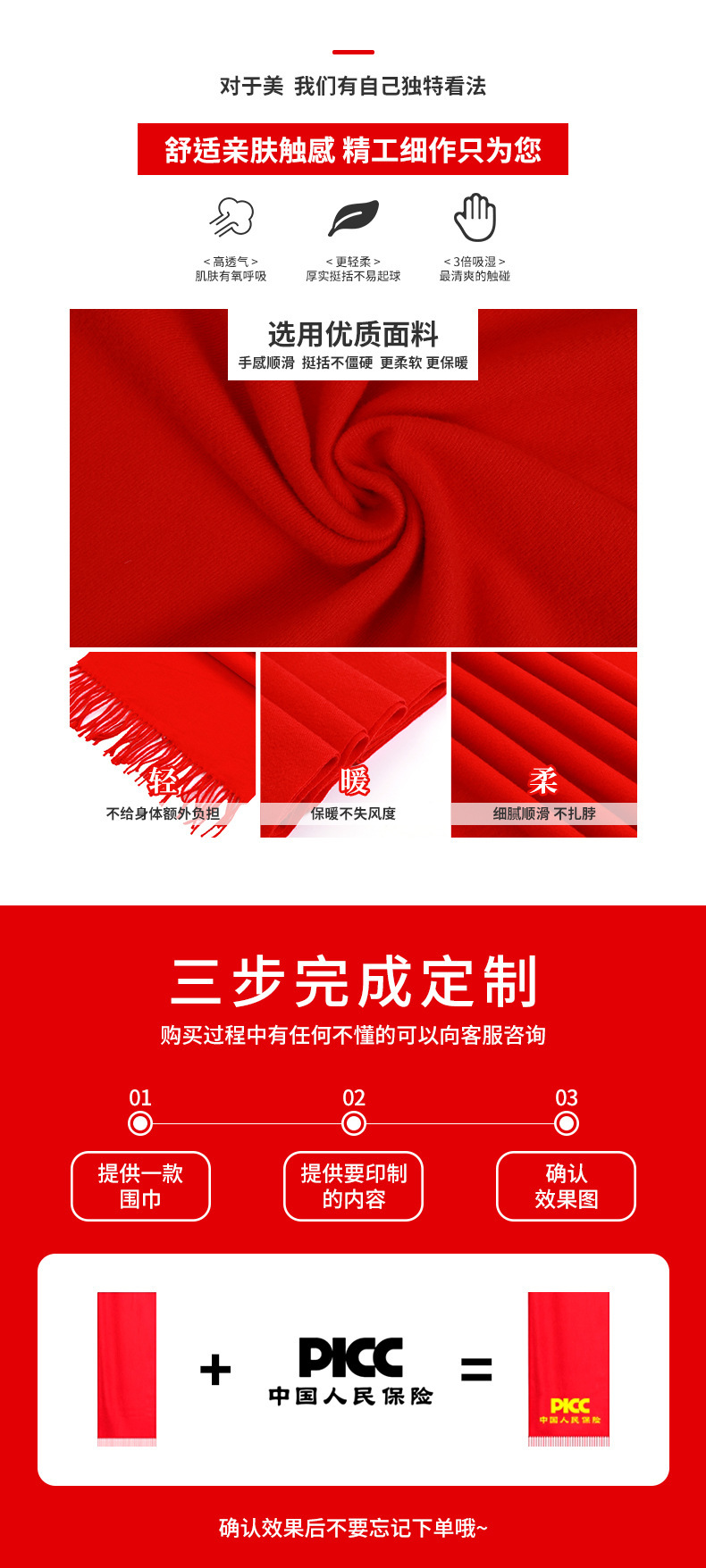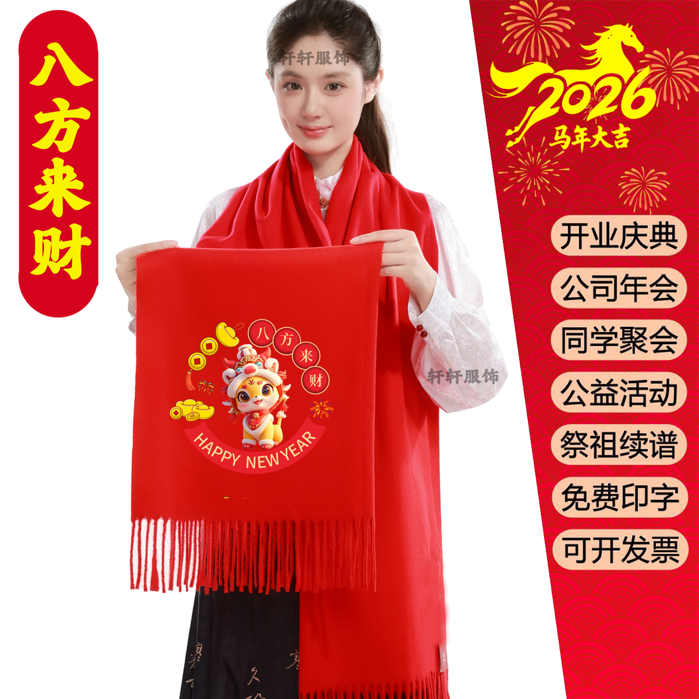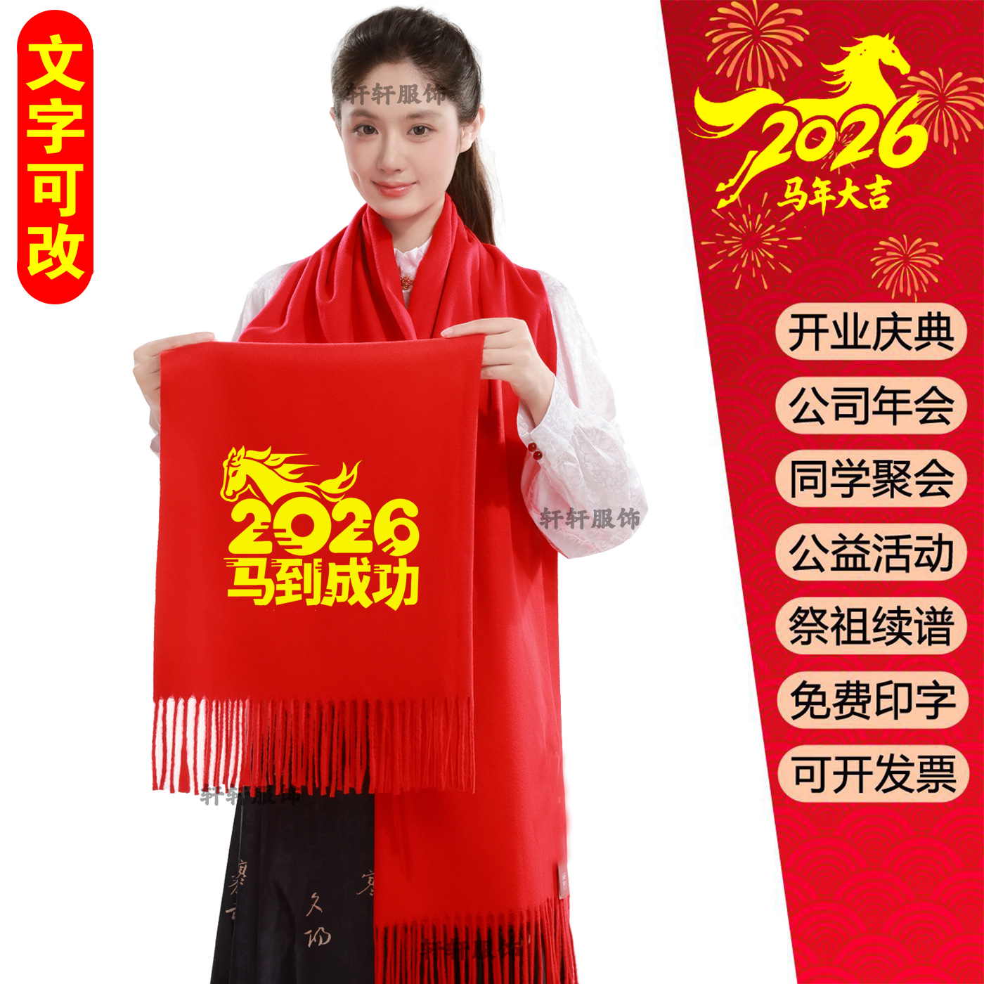 중국 레드 컨퍼런스 레드 스카프 사용자 정의 회사 오프닝 활동 학생 파티 로고 자수 레드 스카프 인쇄스토어 가기
