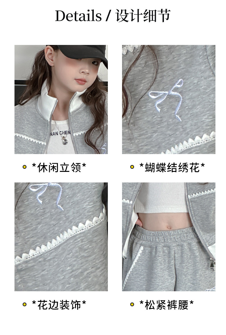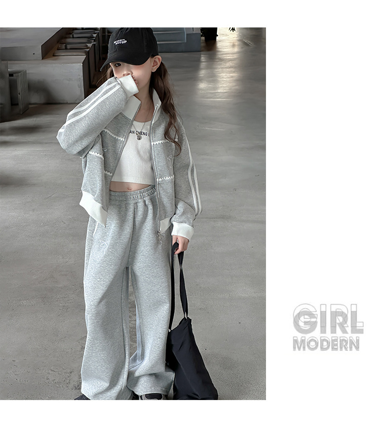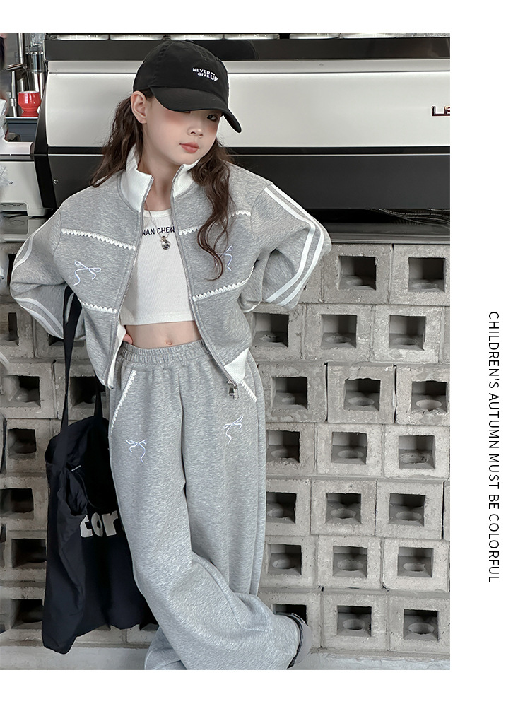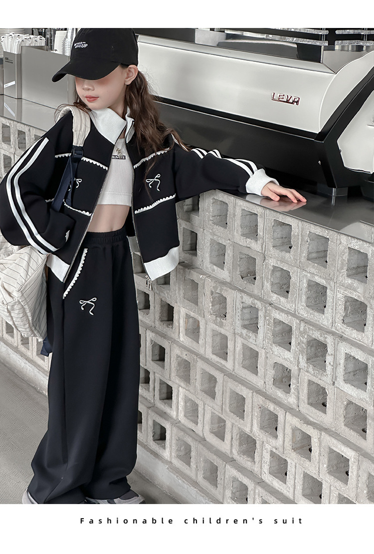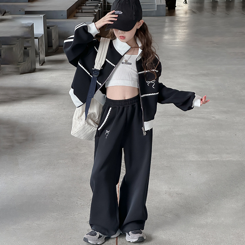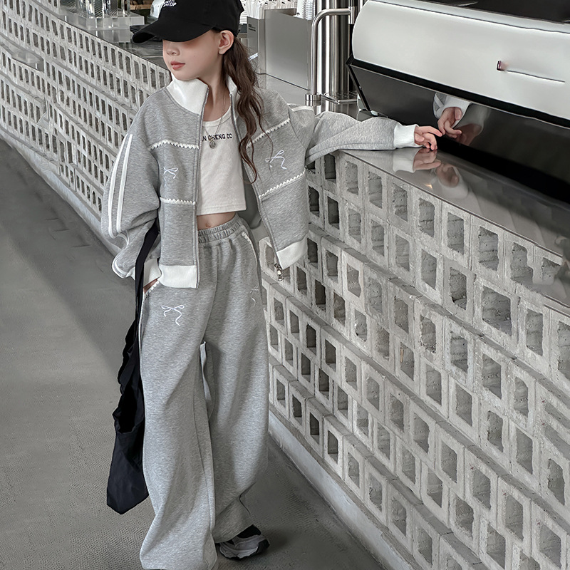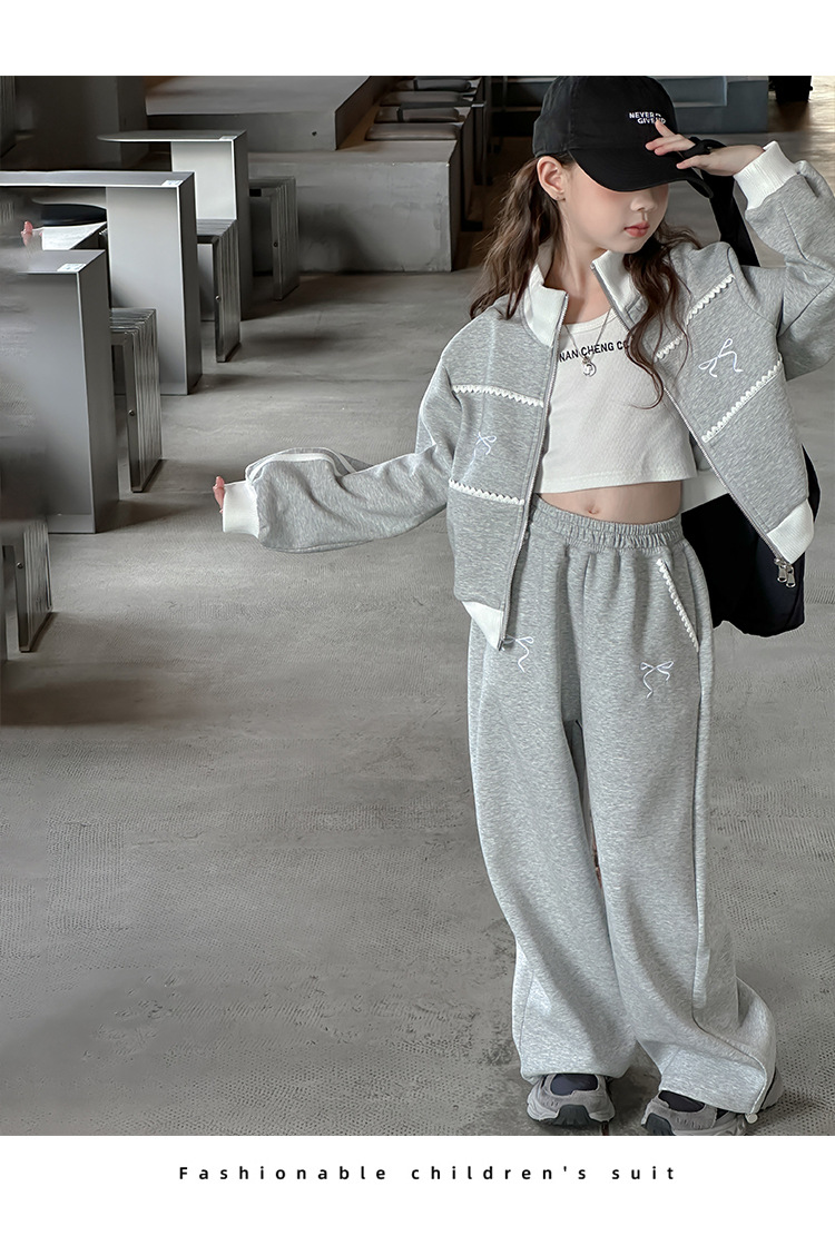 대외 무역 국경 소녀 가을 세트 2024 새로운 패션 걸스 한국 더블 지퍼 활 세트 조수