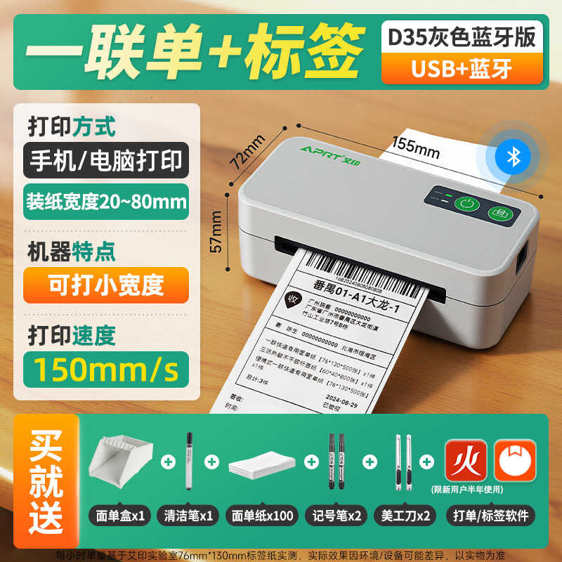 Ai Yin D33 익스프레스 싱글 프린터 3 인치 전자 상거래 포스트 전자 얼굴 단일 블루투스 열 프린터스토어 가기