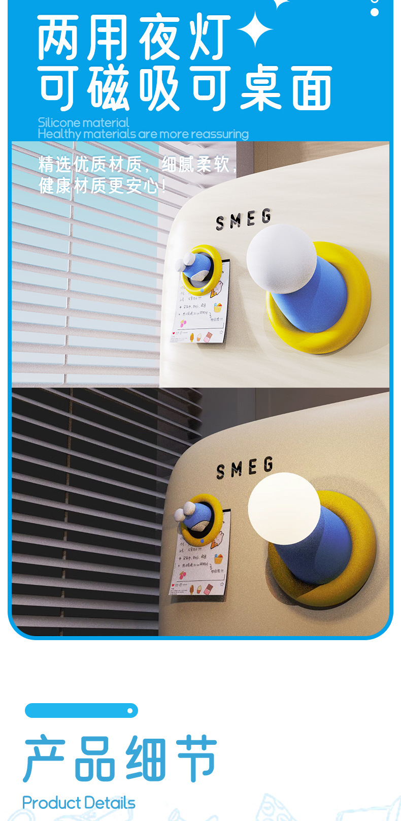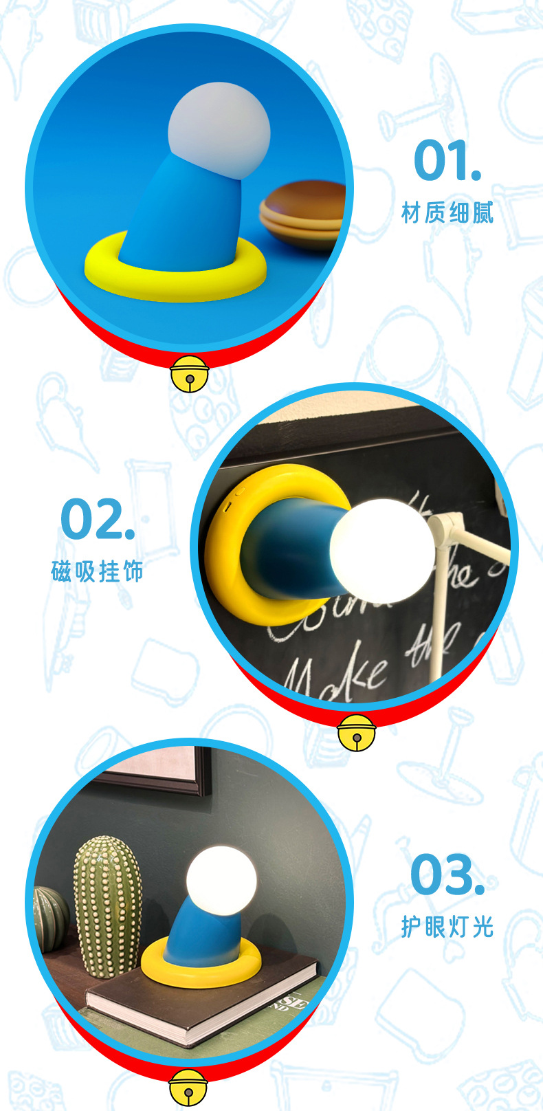 창조적 인 푸른 뚱뚱한 남자 둥근 손 야간 생일 선물 귀여운 침실 자석 작은 장식품 타이밍 잠자는 빛