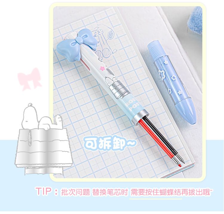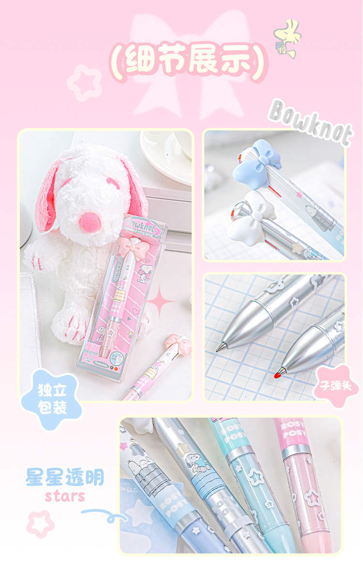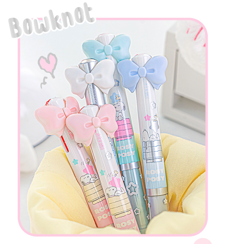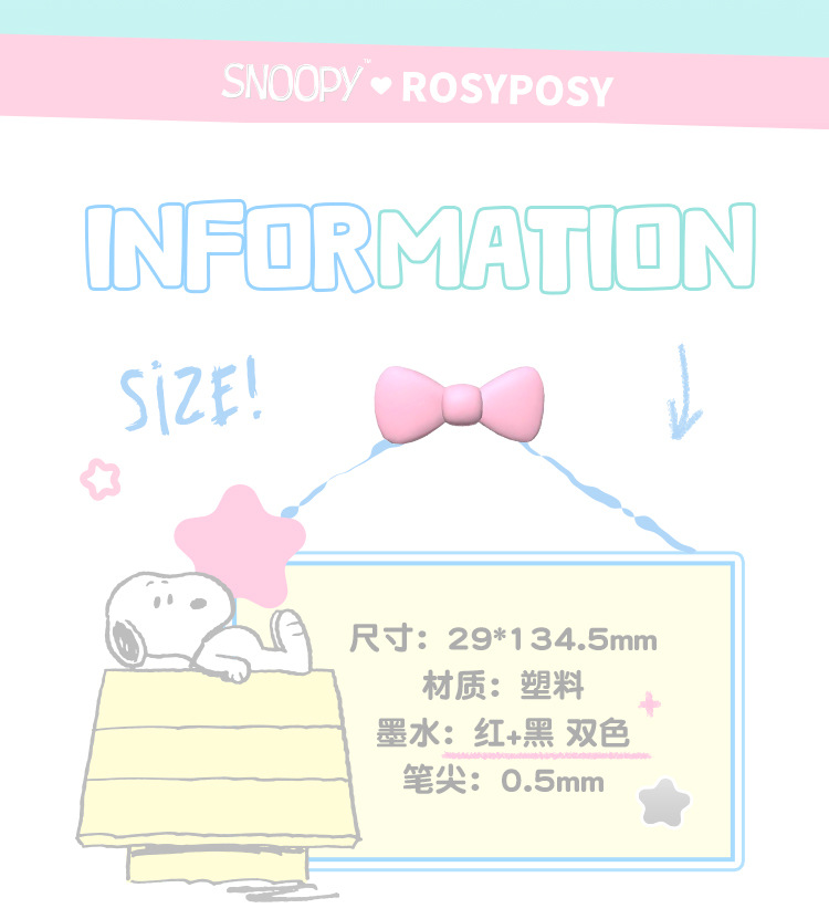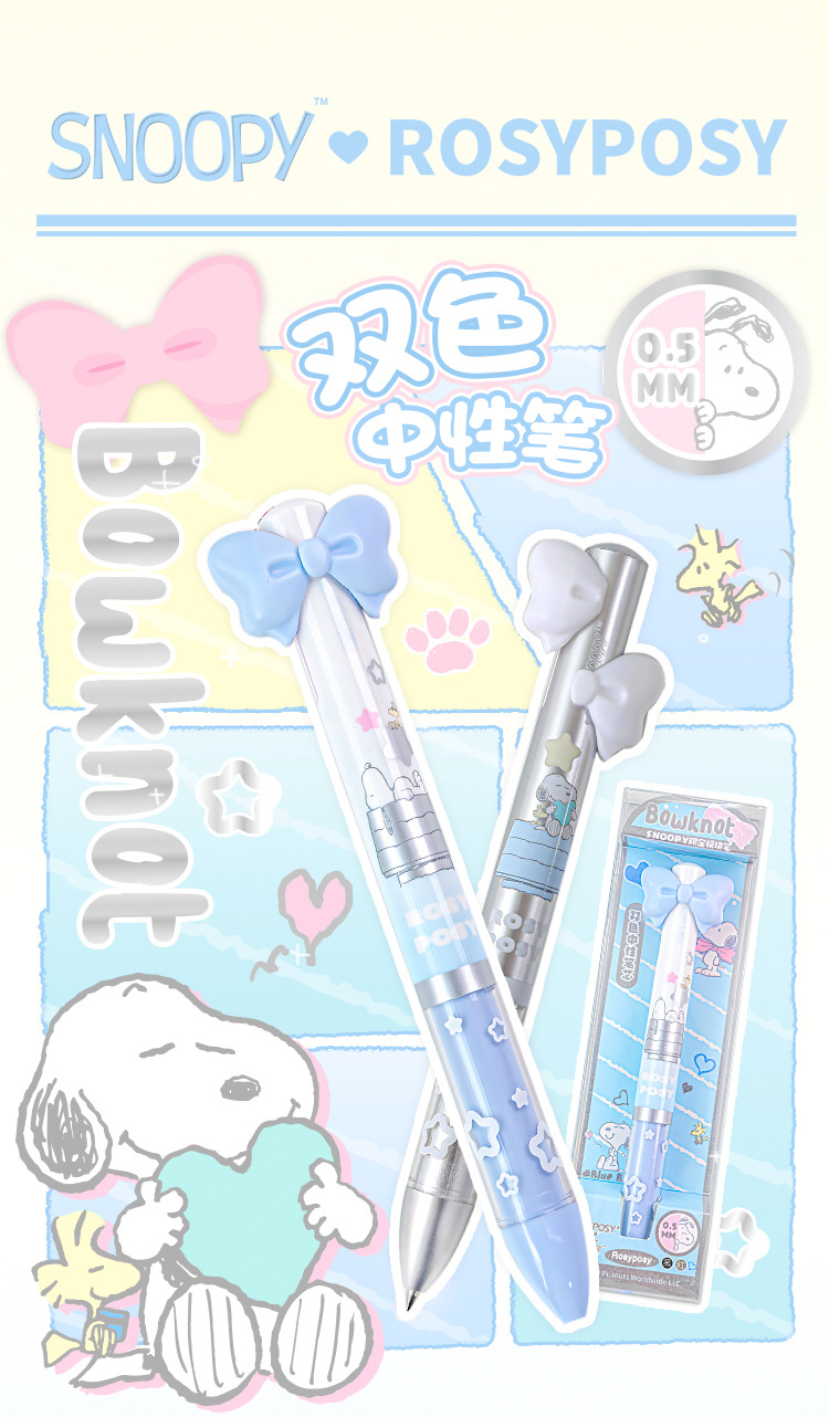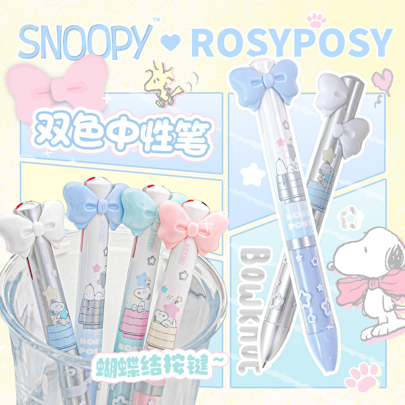 RosyPosy 소프트 세트 귀여운 나비 펜 스누피 공동 멀티 컬러 펜 학생 블랙 05mm 빠른 건조 젤 펜