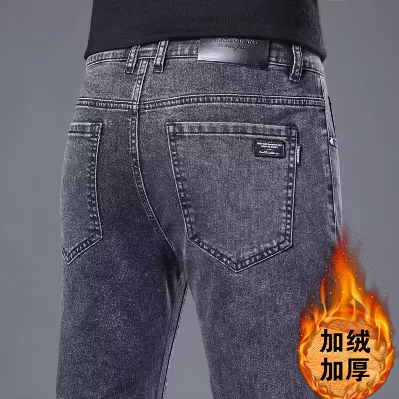 남자 청바지 기모 가을과 겨울을위한 두꺼운 하이 엔드 스트레치 슬림 핏 스트레이트 남성용 캐주얼 트렌디 올 매치 바지