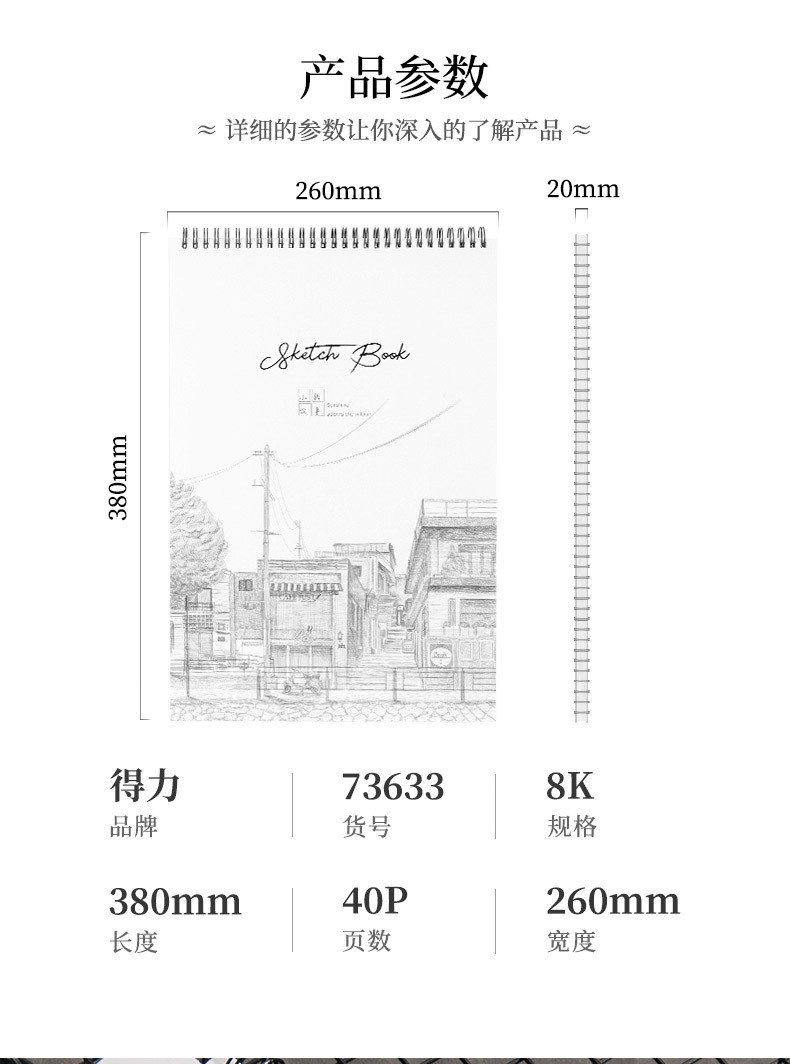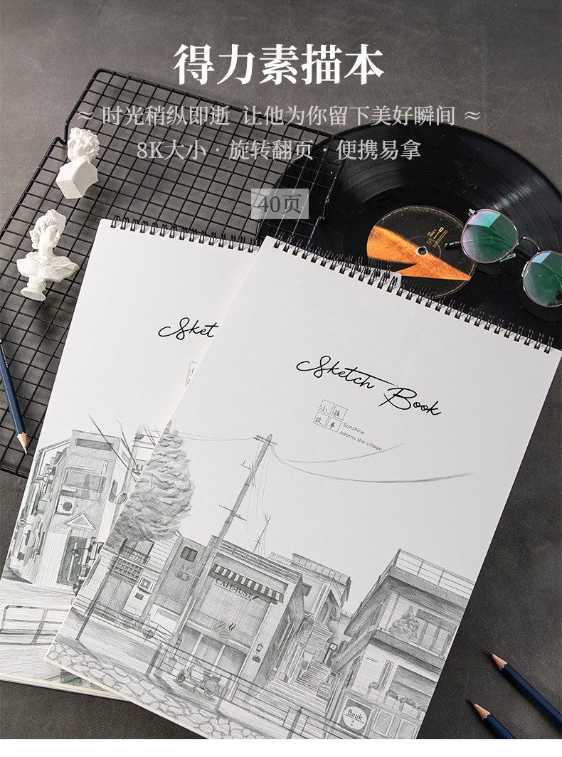 델리 a4 스케치 시트 두껍게 100g 40 페이지 8k 스케치 시트 아트 학생 손으로 그린 16k 특수 스케치 종이 빈스토어 가기