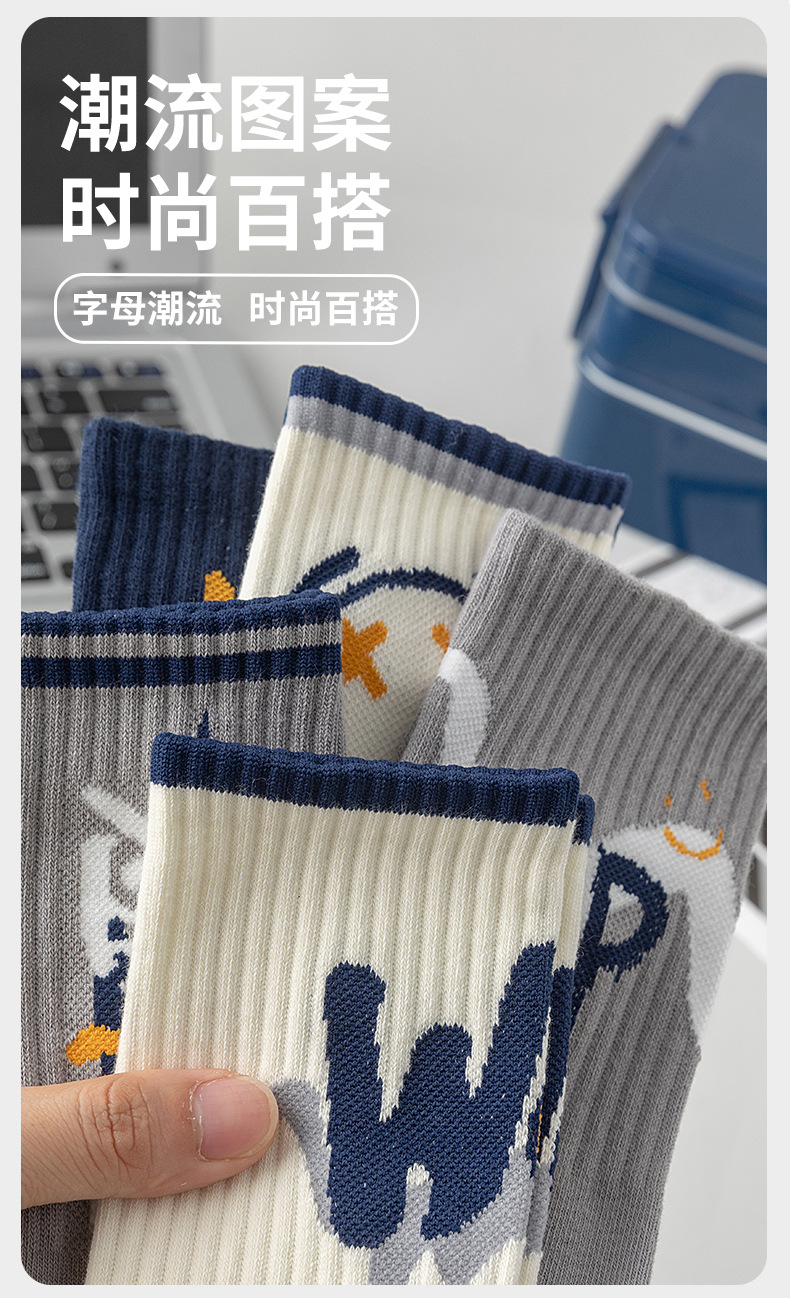 2024 년 새로운 폭발 가을과 겨울 중간 튜브 양말 면화 냄새 방지 beriberi 방지 십대 스마일리 얼굴 스포츠 달리기 양말