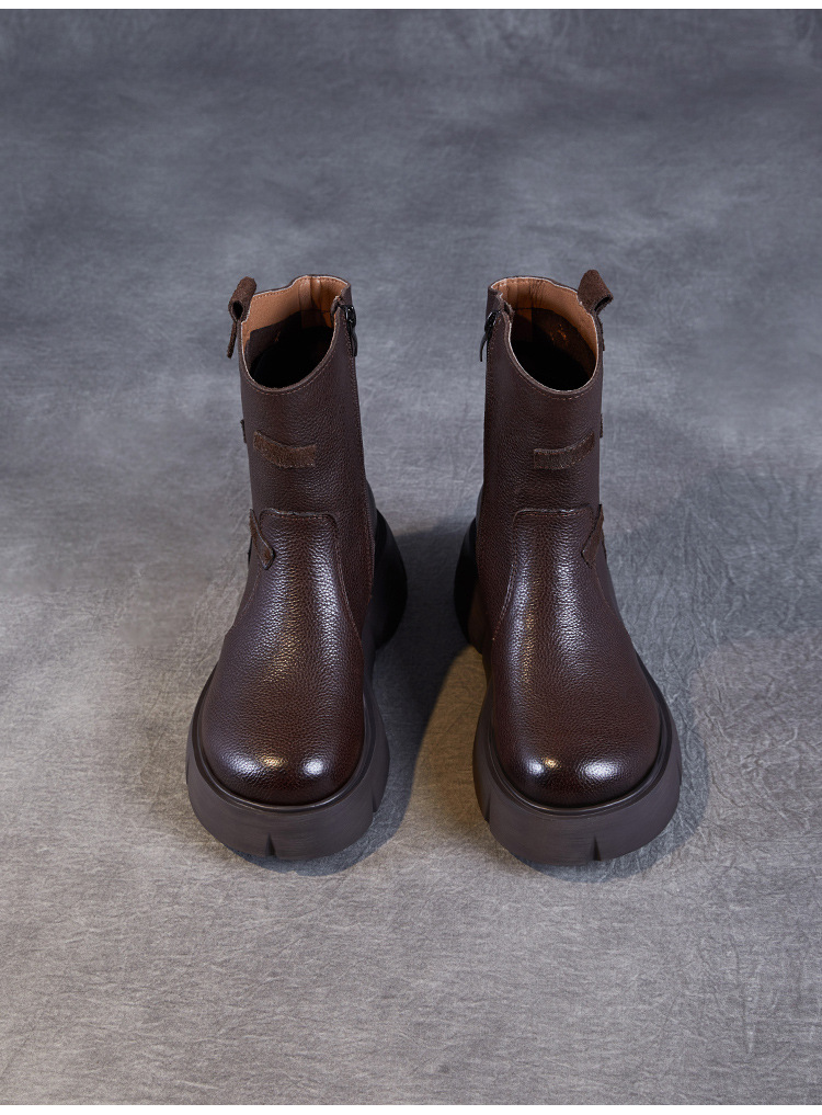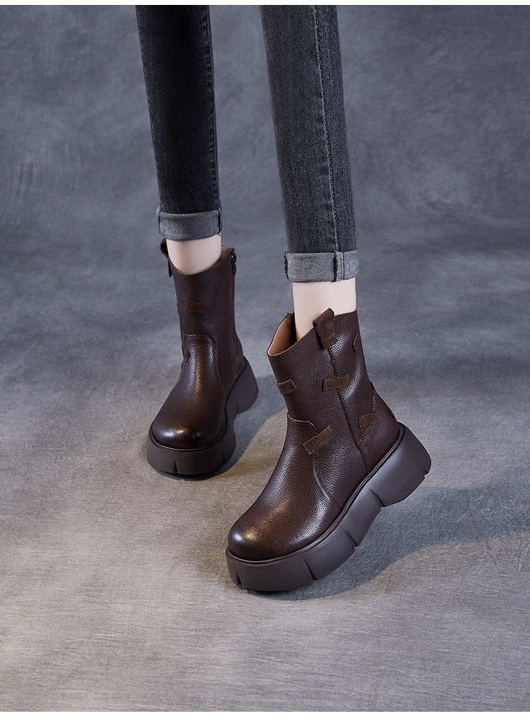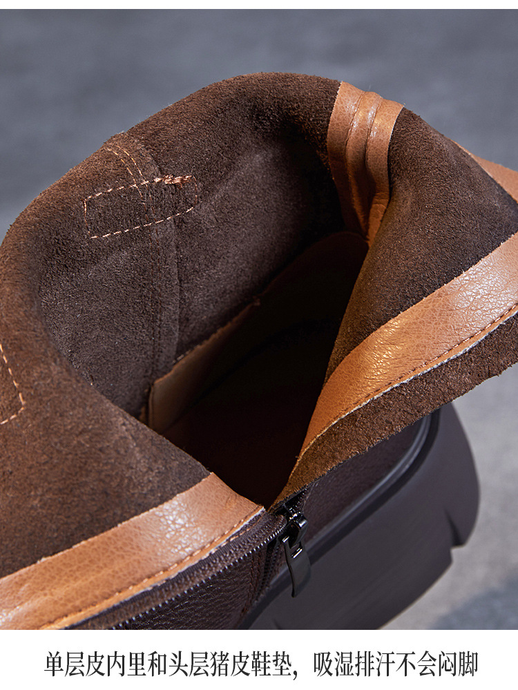 미드 부츠 여성 가을 및 겨울 새로운 정품 가죽 패션 올 매치 나이트 부츠 두꺼운 밑창 캐주얼 거지 패치 마틴 부츠스토어 가기