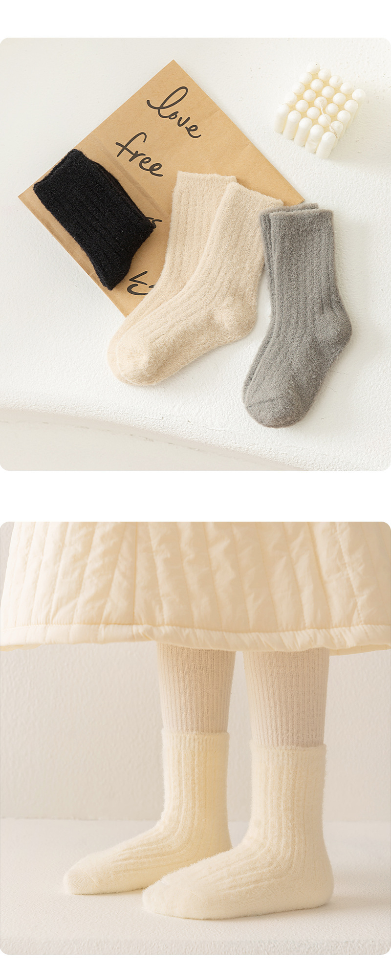 기모 두꺼운 어린이 양말 2024 겨울 새로운 단색 소년 소녀 튜브 양말 한국 벨벳 따뜻한 벨벳 양말