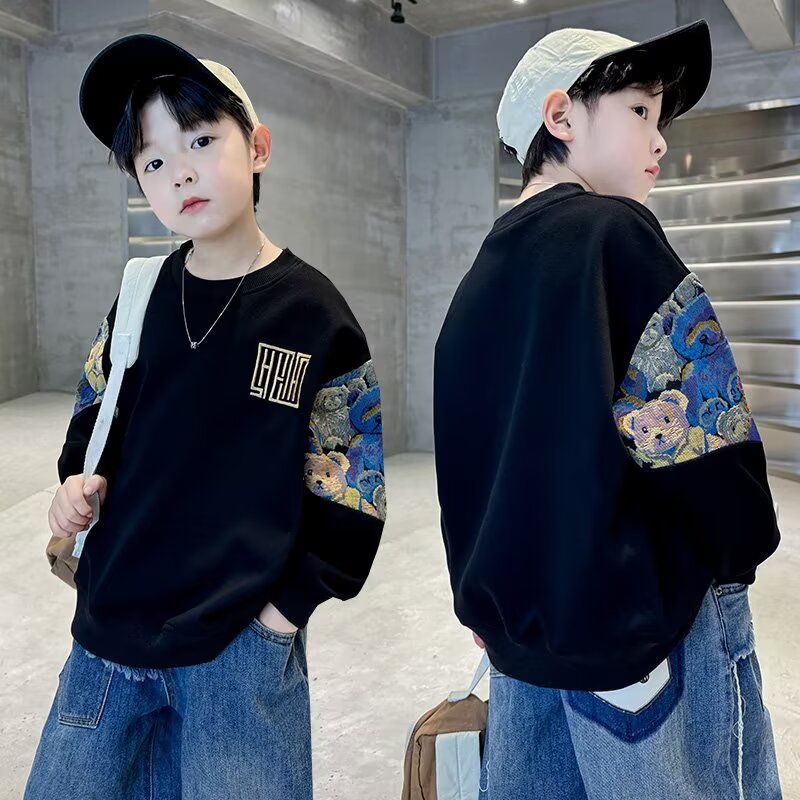 소년 운동복 2024 년 봄과 가을 새로운 스타일 서양식 소년 티셔츠 긴 소매베이스 셔츠 중대형 어린이 가을 옷 패션스토어 가기