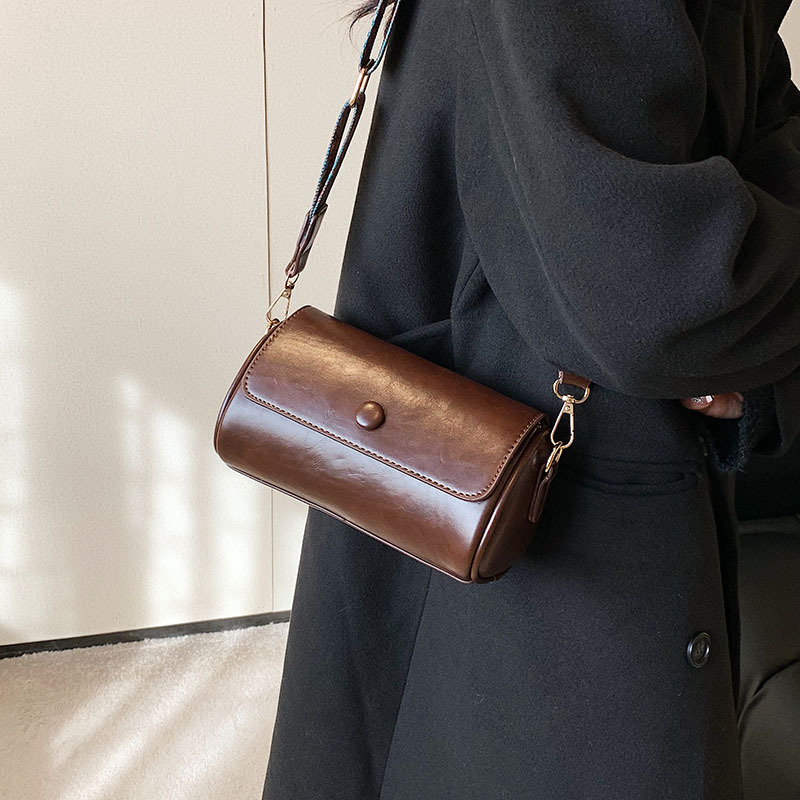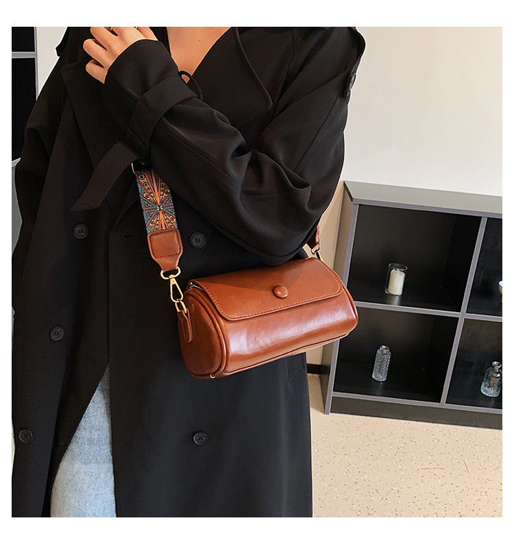 빈티지 작은 가방 여성 가방 틈새 2024 새로운 유행 봄 올 매치 와이드 밴드 어깨 크로스 바디 백 원통형 가방