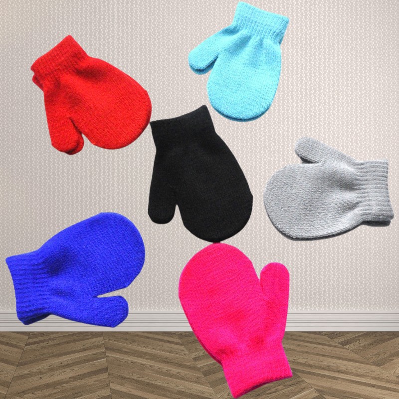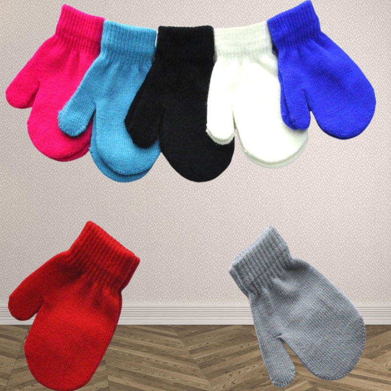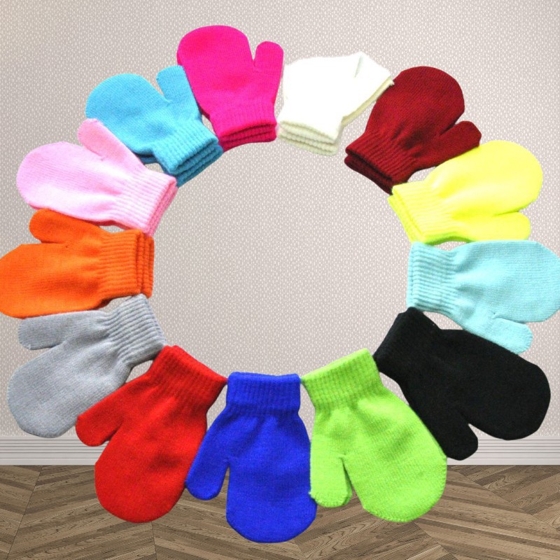 1-4 세 유치원 어린이 겨울 따뜻한 작은 장갑 솔리드 컬러 아기 안티 스크래치 니트 가방 아기 장갑
