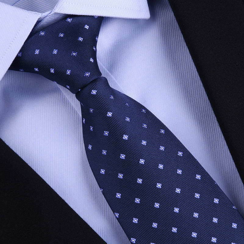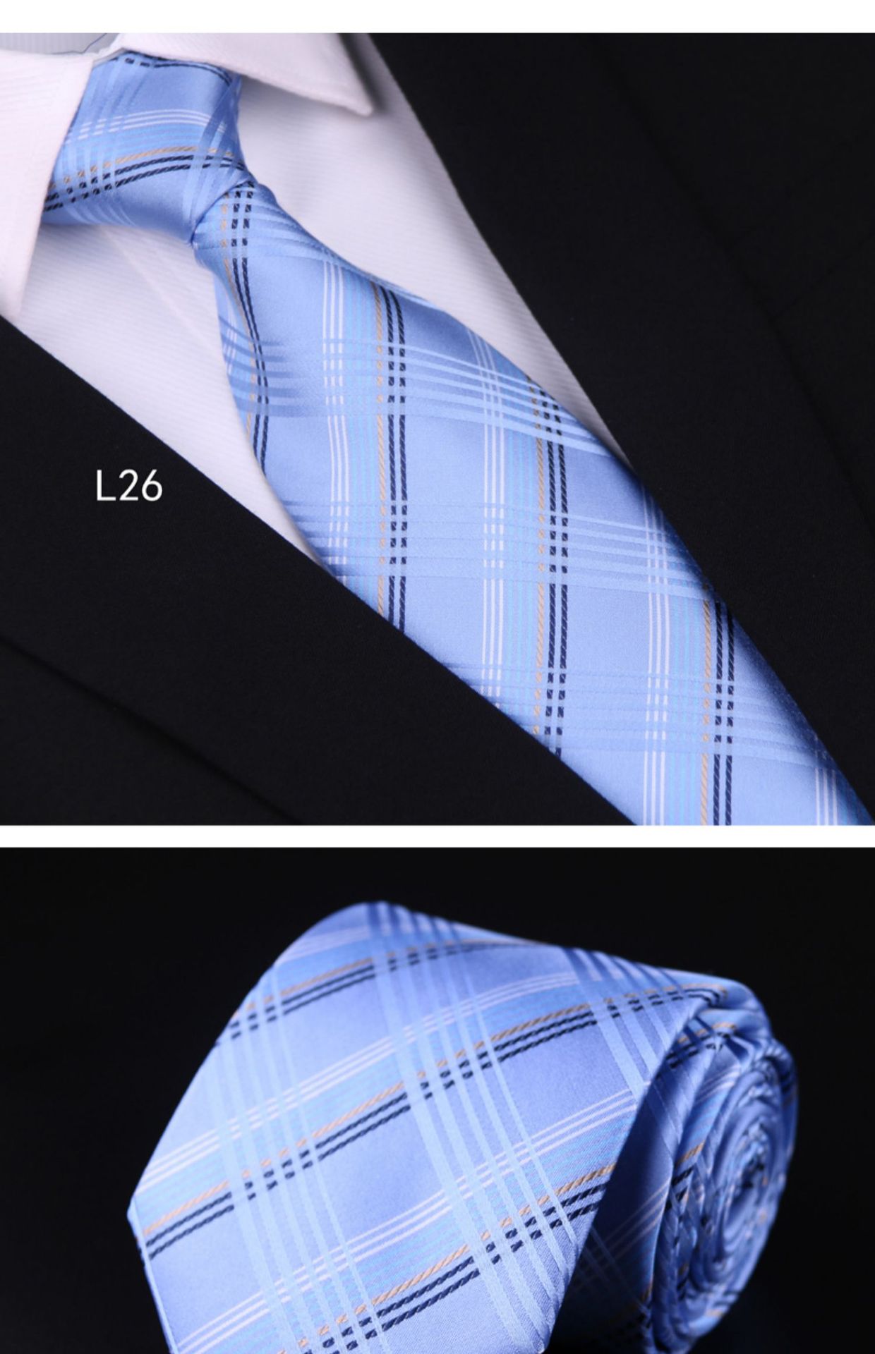 • (손으로 묶어서 매듭을 지어야 함) 8cm 블루 체크 무늬 실크 블루