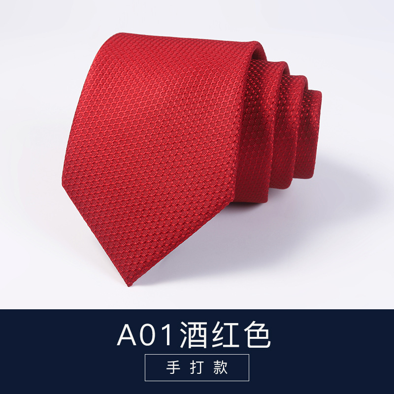 • (핸드 타이 - 매듭 필요) 8cm 실크 버건디 타이 버건디