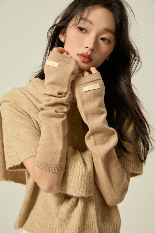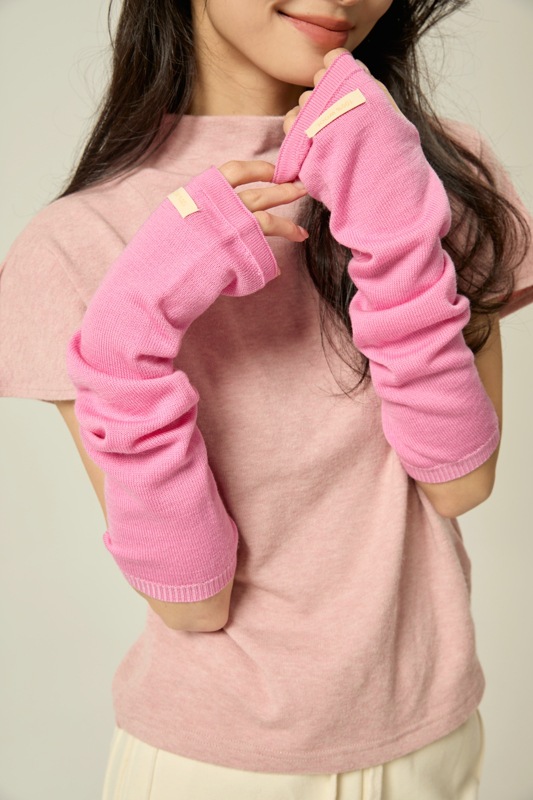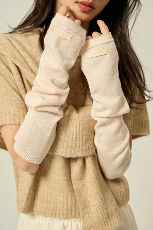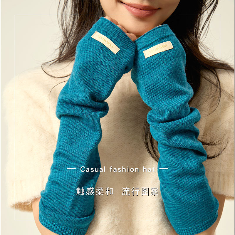 도파민 솔리드 컬러 소매 다목적 팔 양모 손 소매 니트 더미 반 손가락 가을과 겨울 따뜻한 긴
