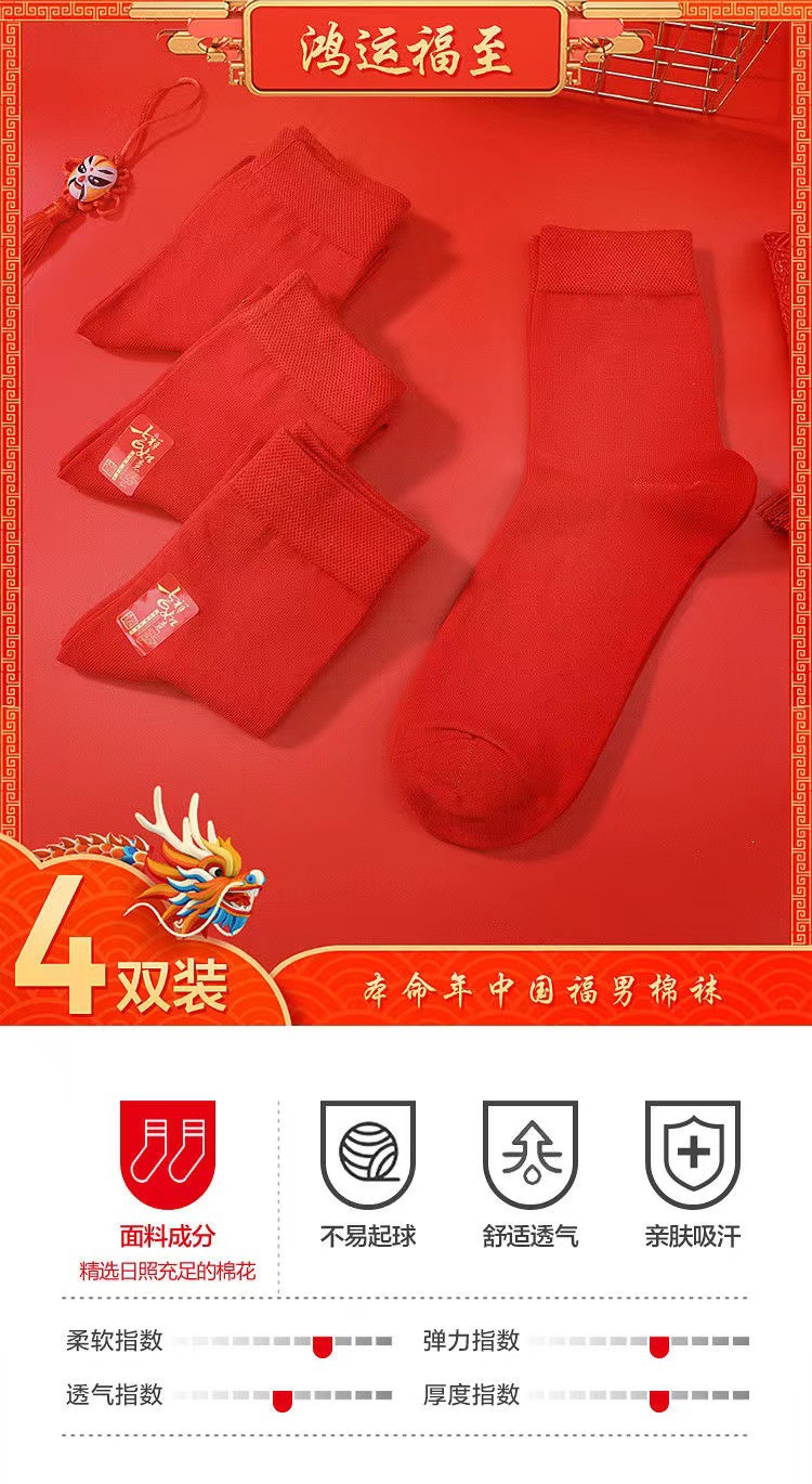 브닝 니언 레드 양말 남녀 코튼 양말 신부 웨딩 양말 중간 배럴 새해 가을과 겨울 큰 붉은 탈취제 포춘스토어 가기