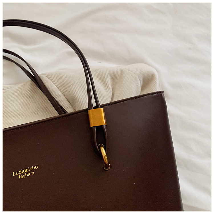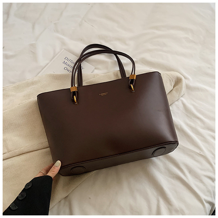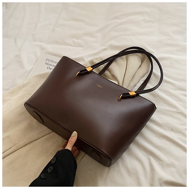 하이 엔드 소프트 가죽 핸드백 여성의 2024 새로운 대용량 복고풍 올 매치 토트 백 숄더 통근 가방스토어 가기
