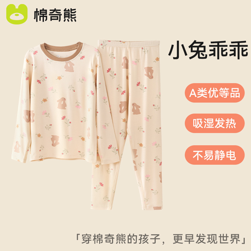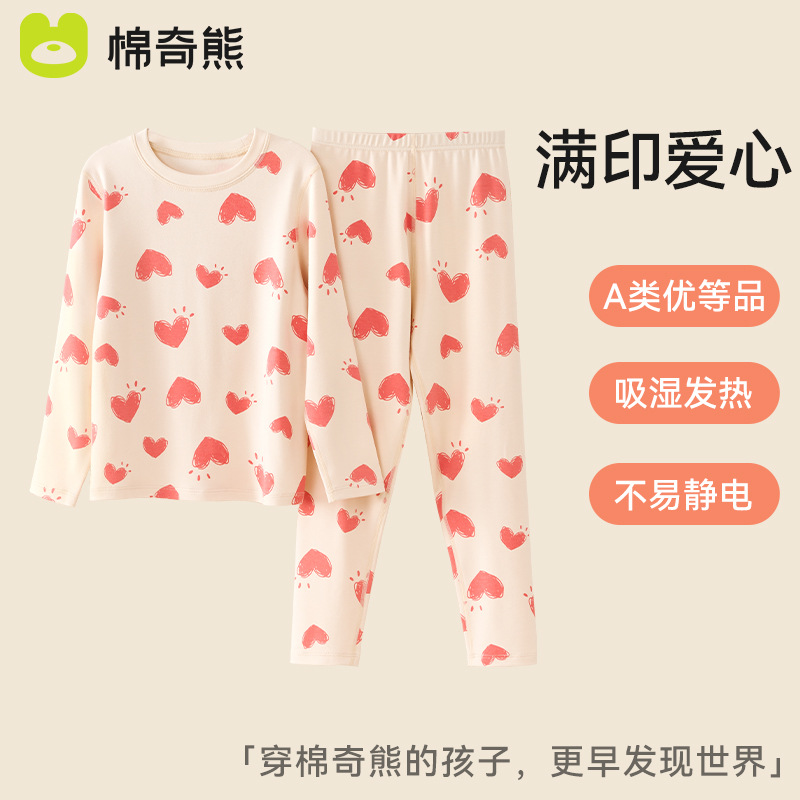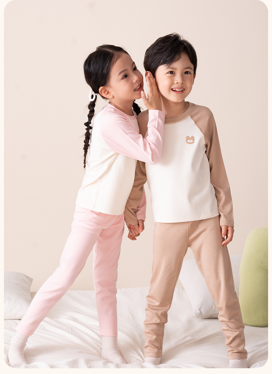 어린이 가을 옷과 가을 바지 세트 2025 새로운 봄, 가을 소년과 소녀 잠옷 가을, 겨울 자체 가열 아기 따뜻한 속옷스토어 가기